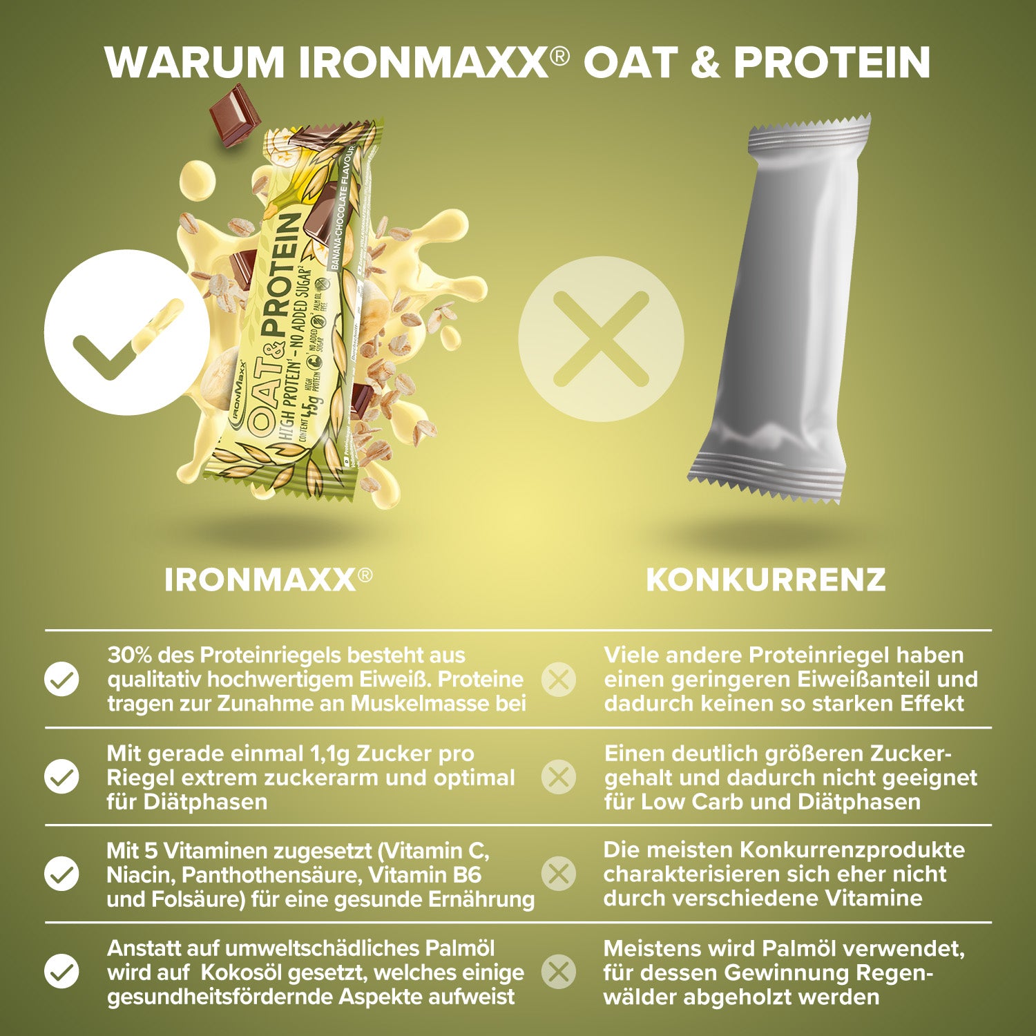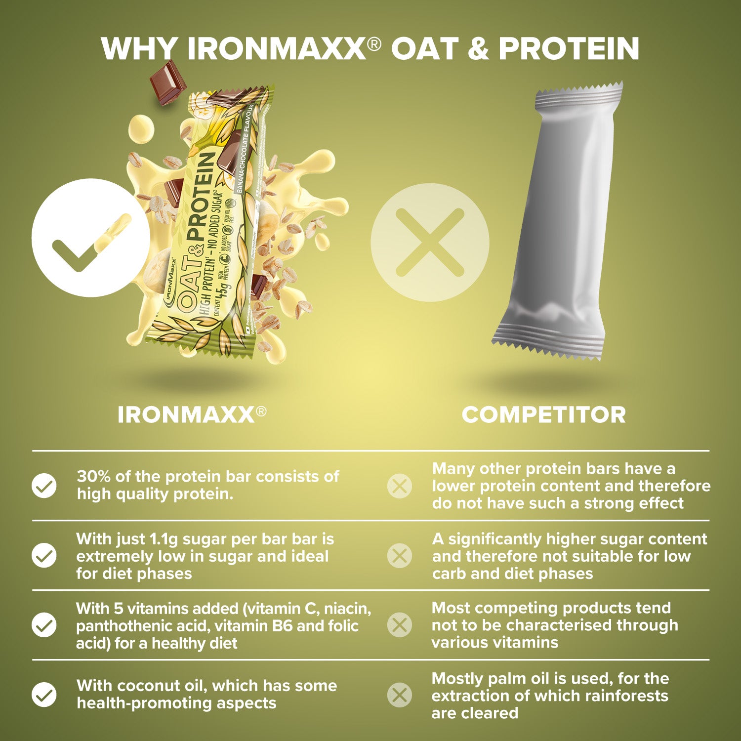 - IronMaxx® Oat & Protein contains naturally occurring sugars but has no added sugar!