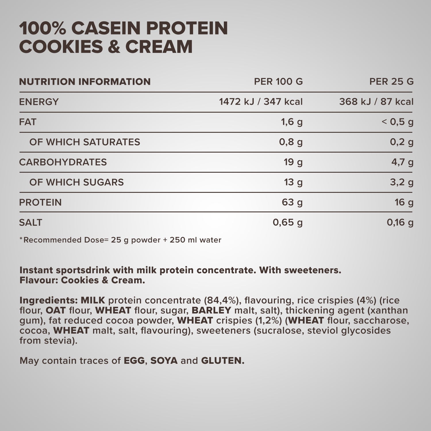 Das langsam verdauliche Protein sorgt für langanhaltende Sättigung und eine konstante Freisetzung von Aminosäuren. Genieße es in cremigen Sorten wie Cookies & Cream, Vanille oder Schokolade – einfach mit Wasser oder Milch zubereitet.