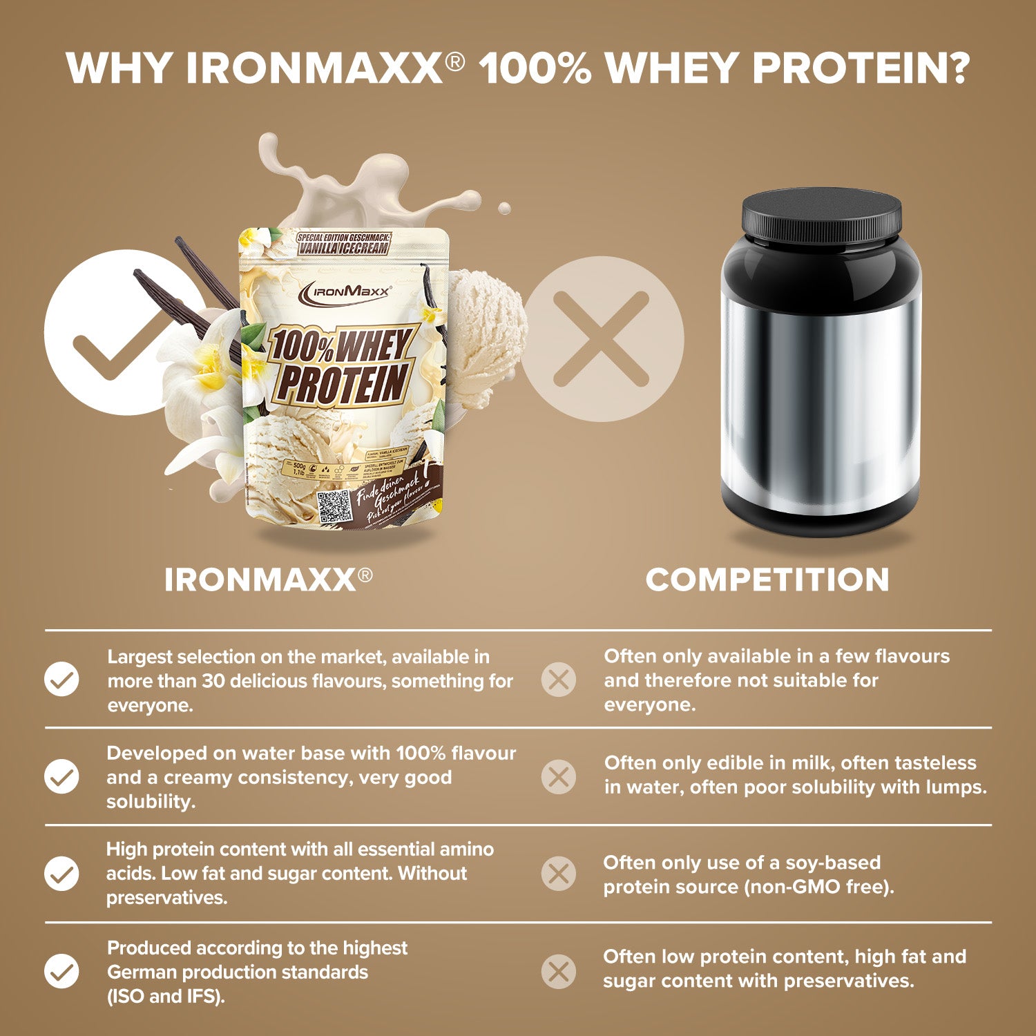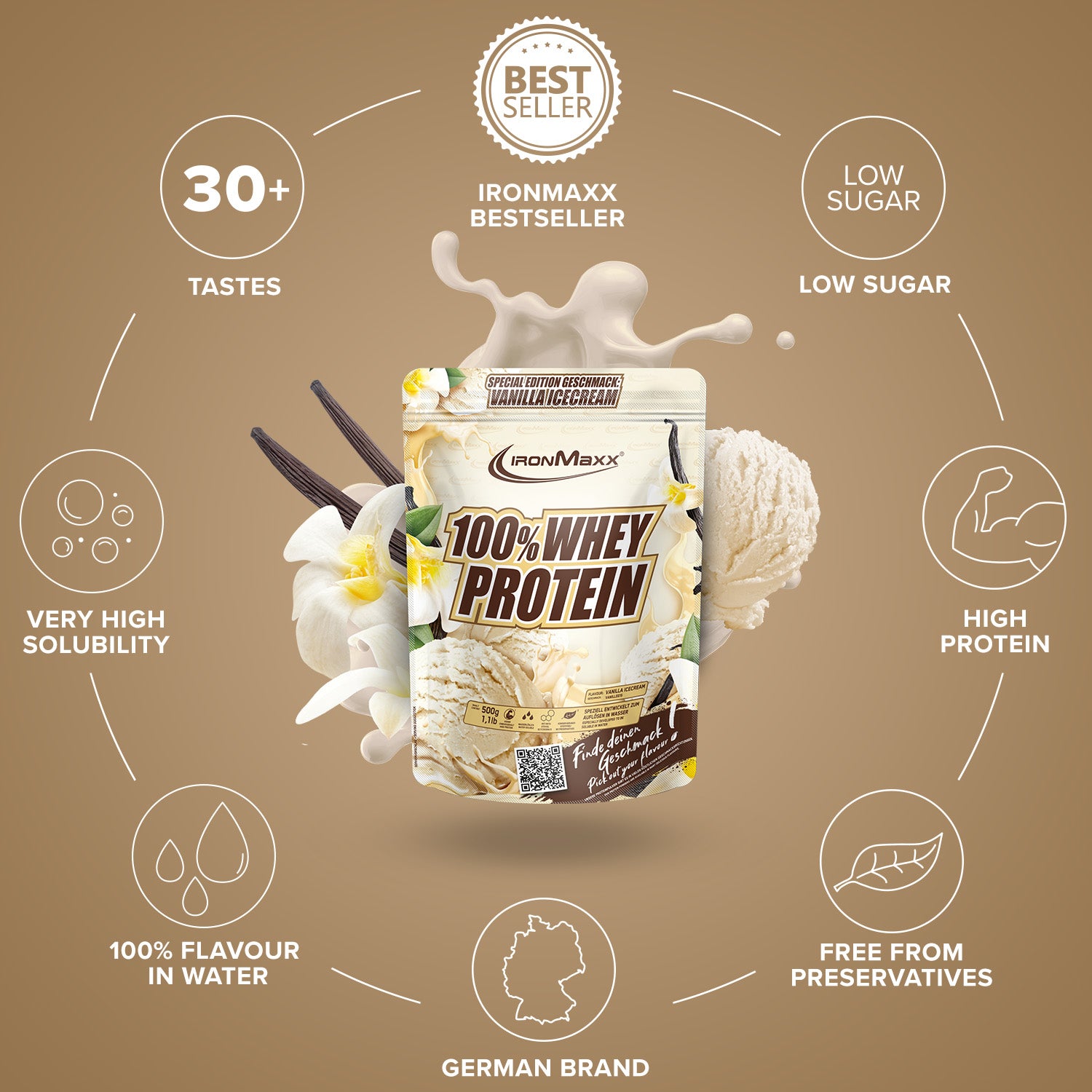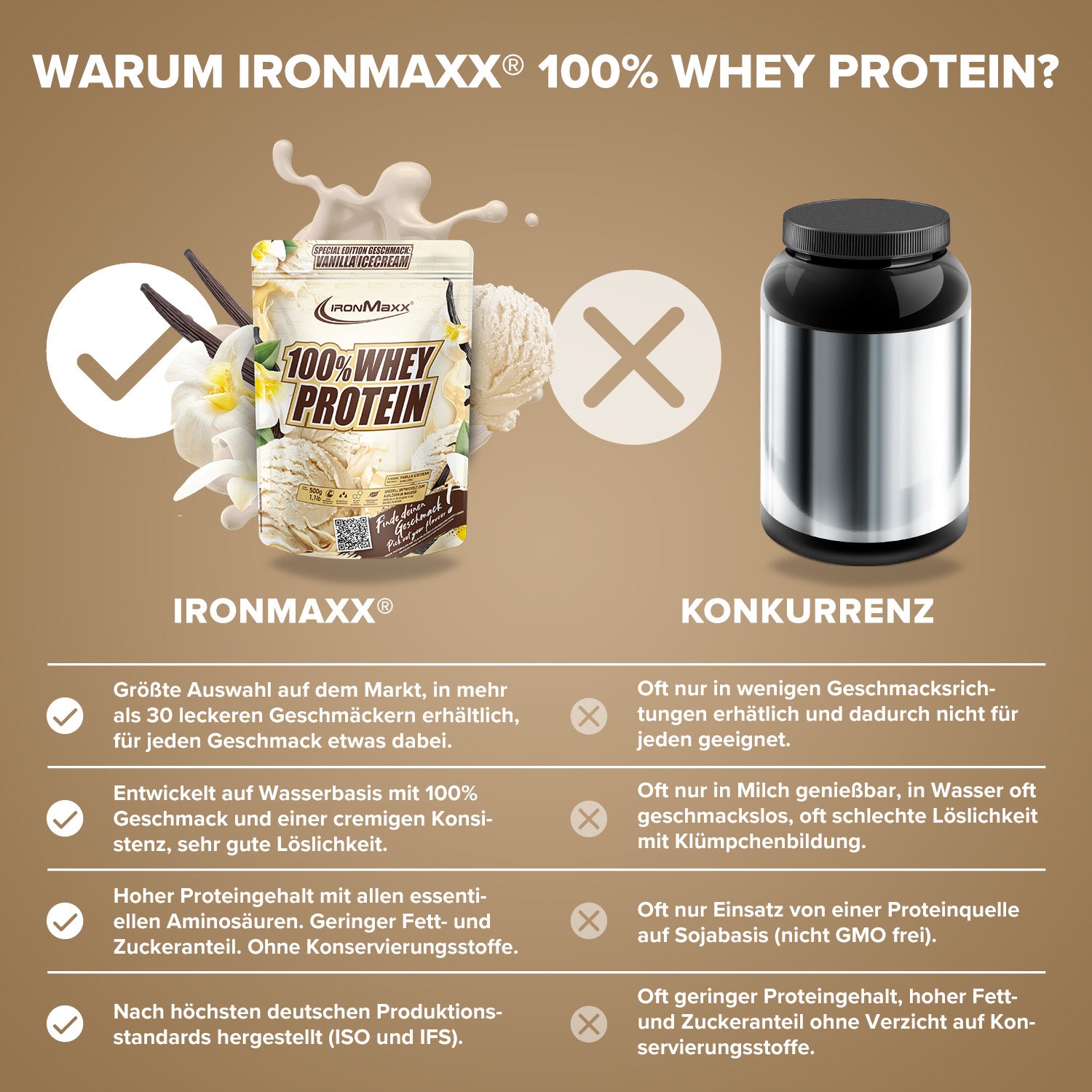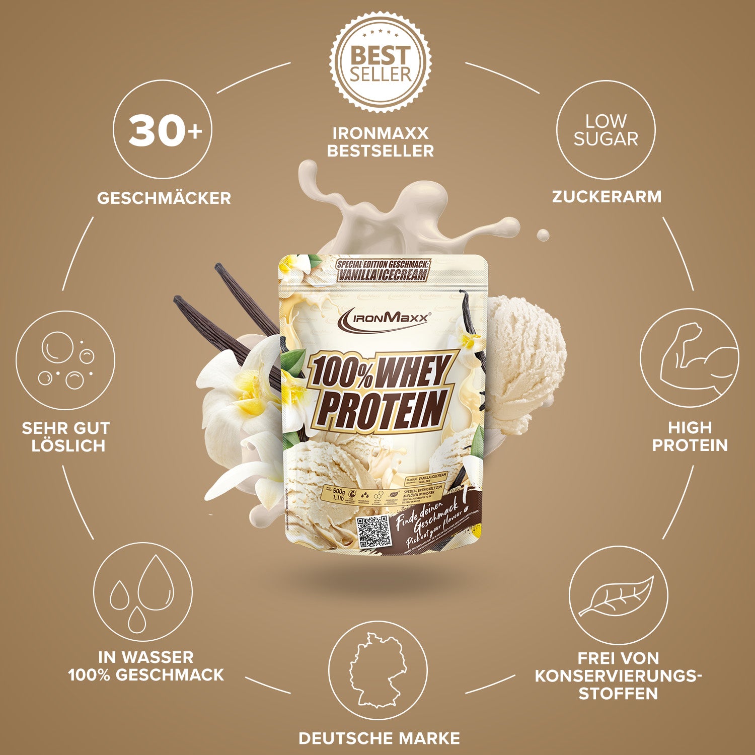 IronMaxx® 100% Whey Protein gehört zu den beliebtesten Eiweißshakes für Muskelaufbau, Regeneration und Diätphasen. Mit bis zu 80 % Eiweiß, einem vollständigen Aminosäurenprofil (inklusive BCAAs und EAAs) sowie einem cremigen Geschmack ist es der ideale Begleiter für deinen Fitnessalltag.