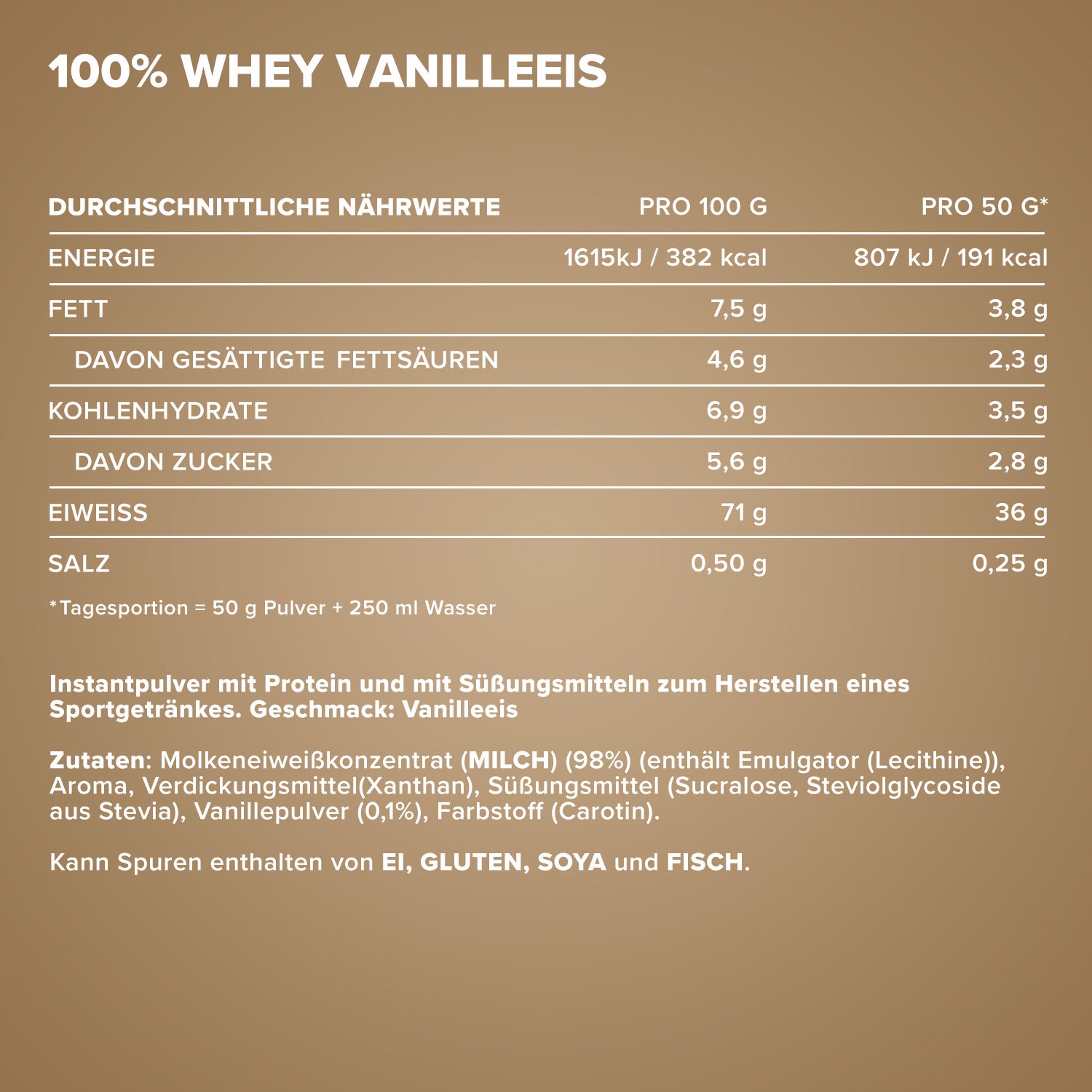 ²Eine Portion enthält 30 g Pulver und 200 ml Wasser oder Milch.³In unserem Designer Whey verwenden wir keinen zugesetzten Zucker, sondern setzen auf unbedenkliche