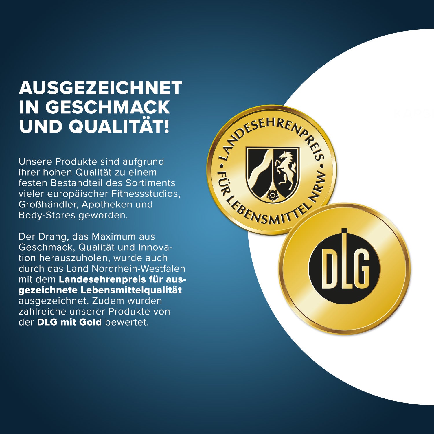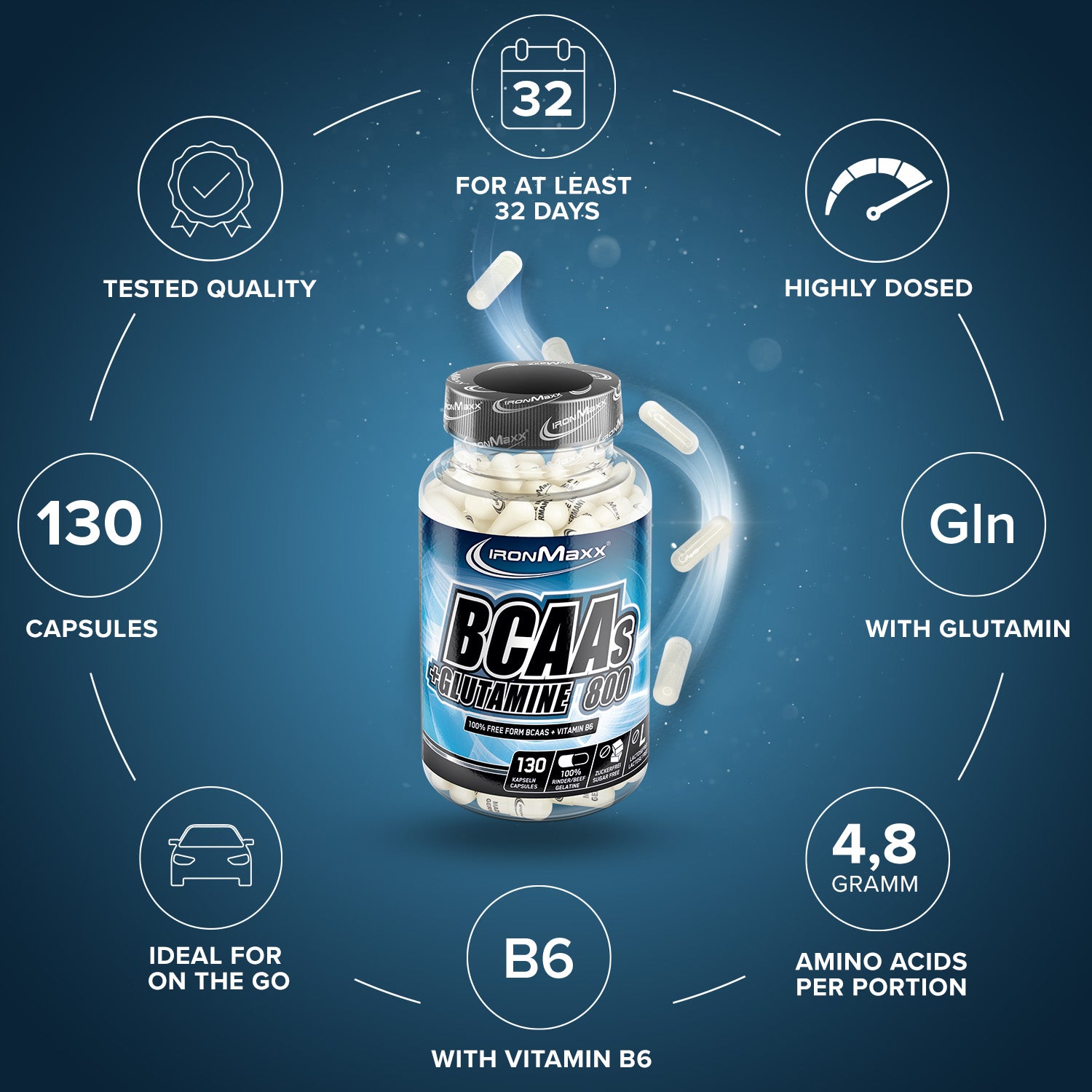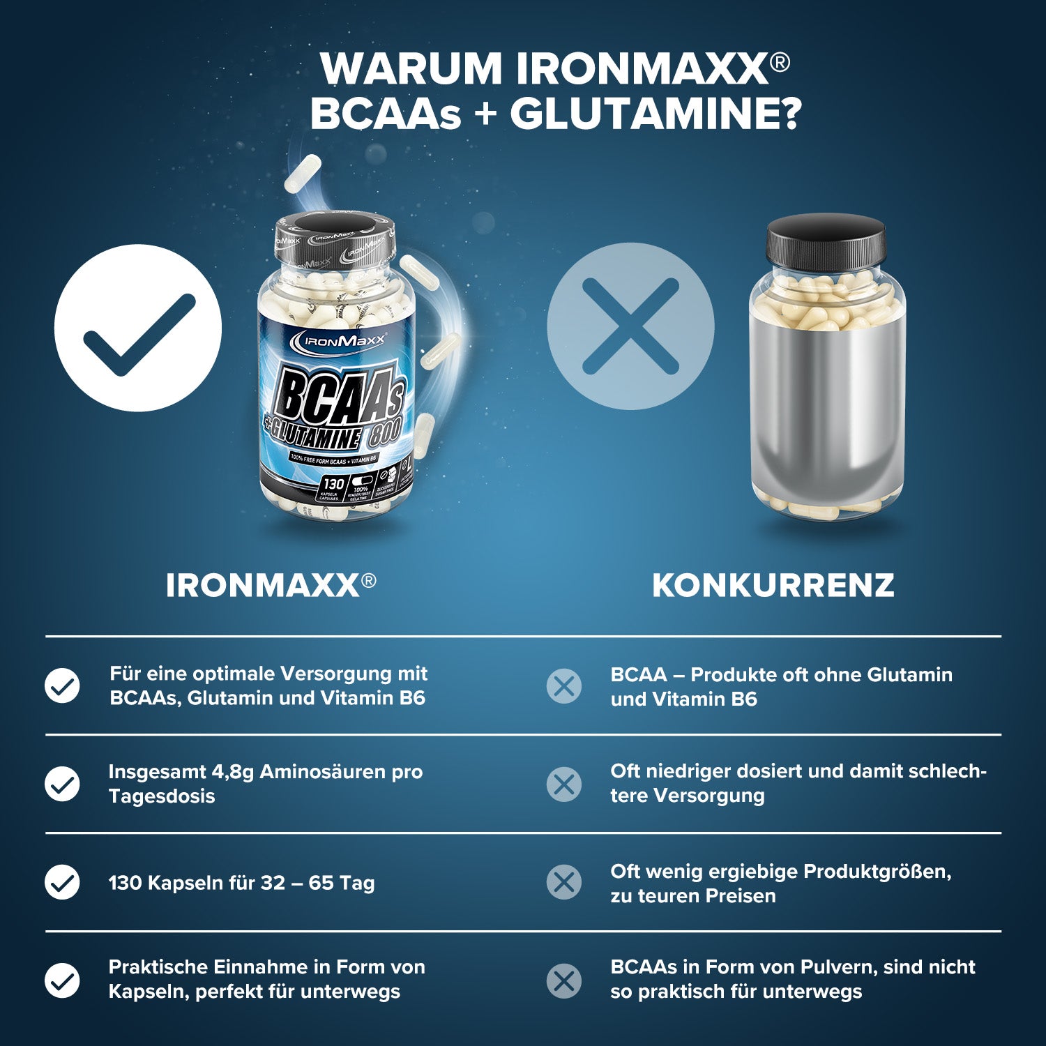 - Aminosäurekapseln, die alle 3 BCAAs + L-Glutamin beinhalten