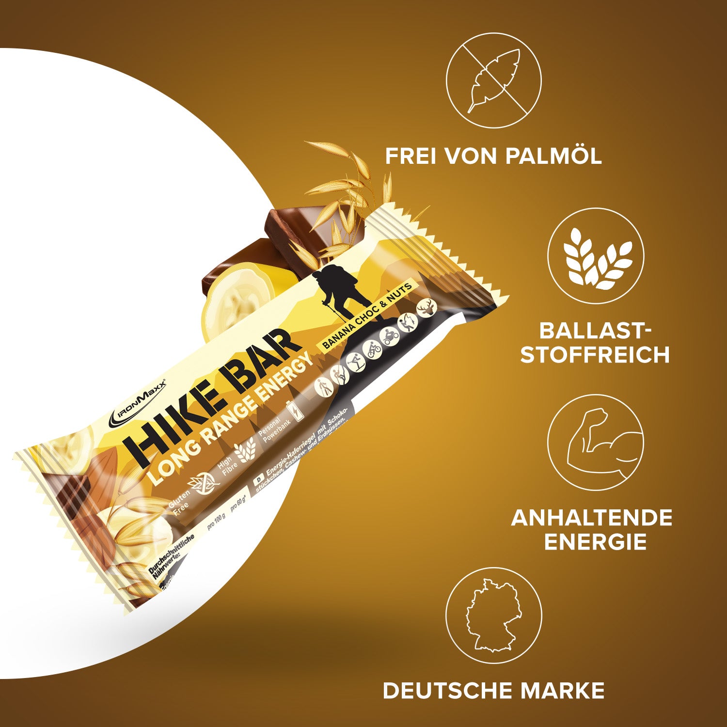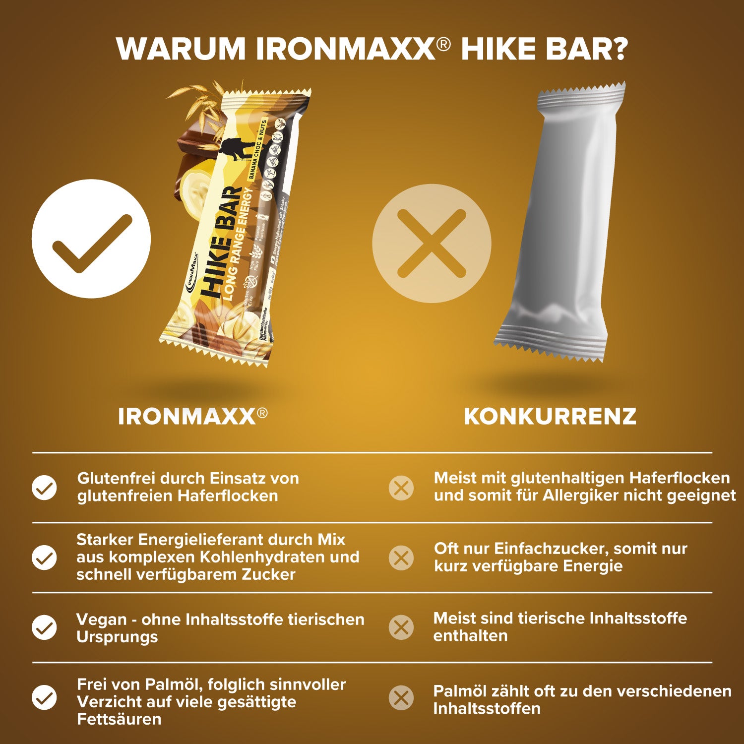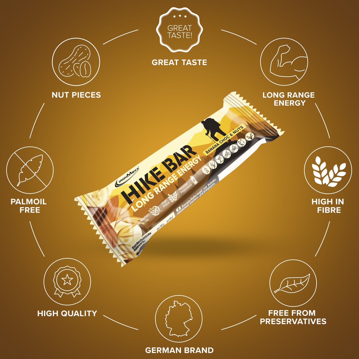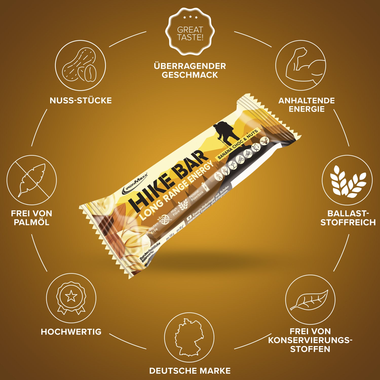 Ob Wandern, Trailrunning oder Klettern – der Hike Bar von IronMaxx® ist dein perfekter Begleiter für lange Tage in der Natur. Die leckeren Sorten liefern schnelle und langanhaltende Energie für jede Herausforderung.