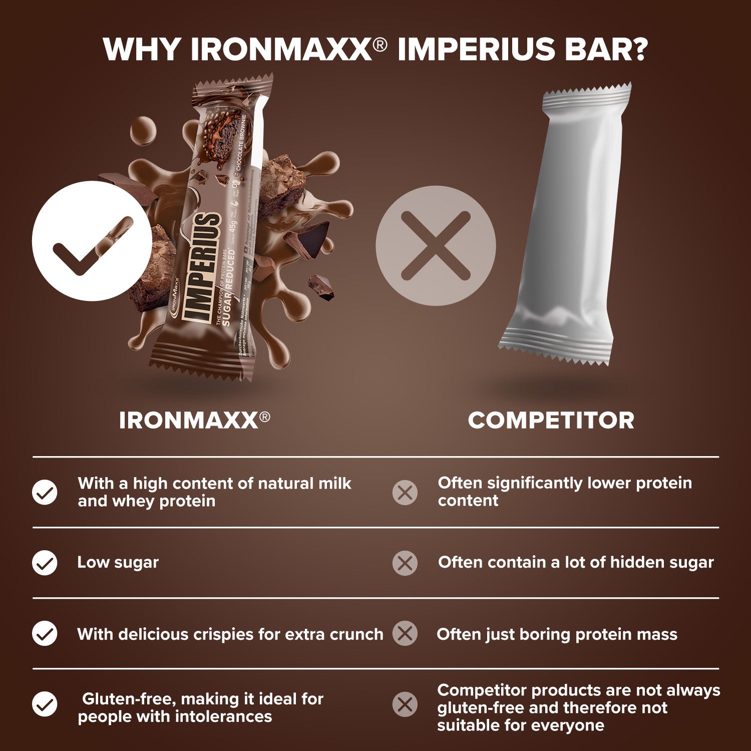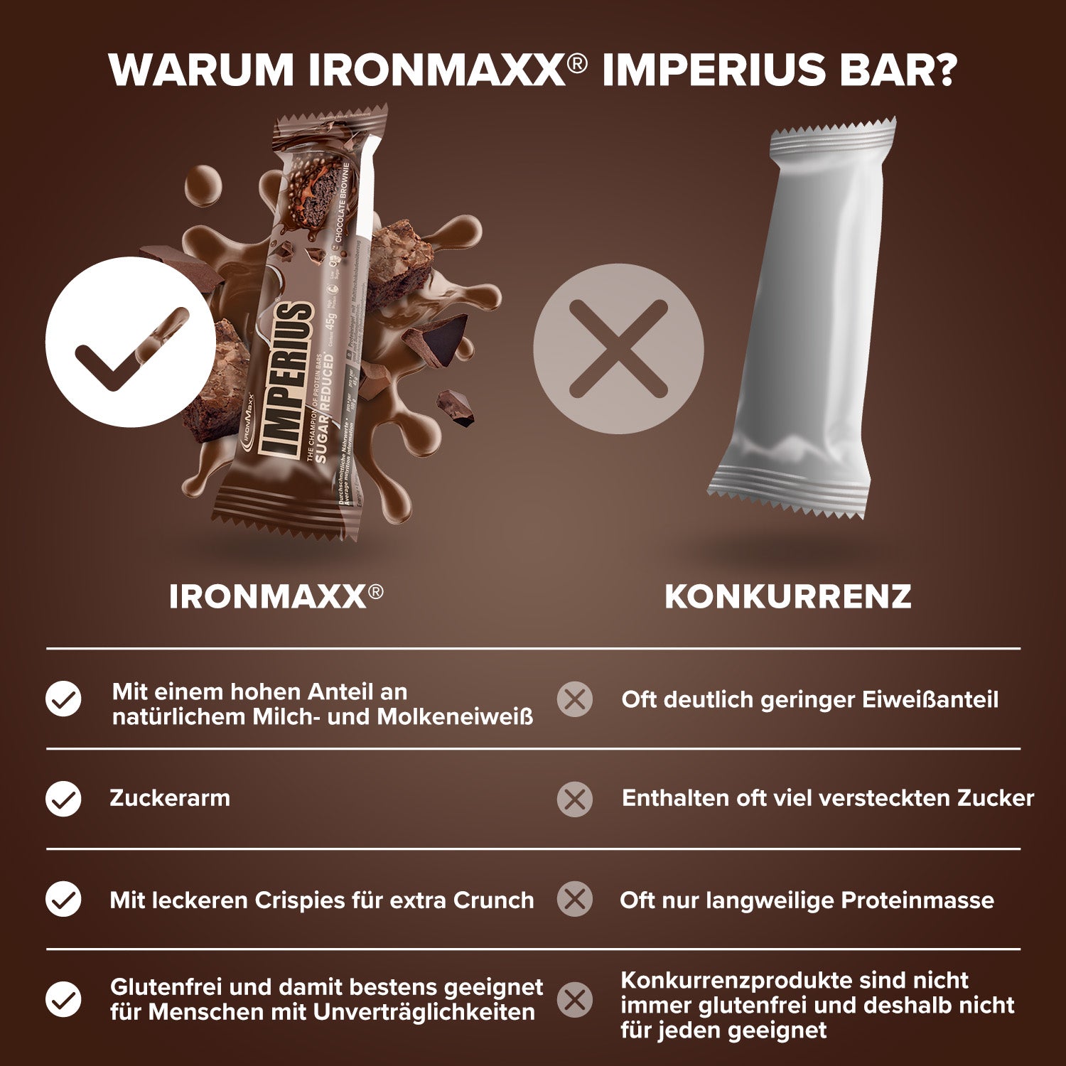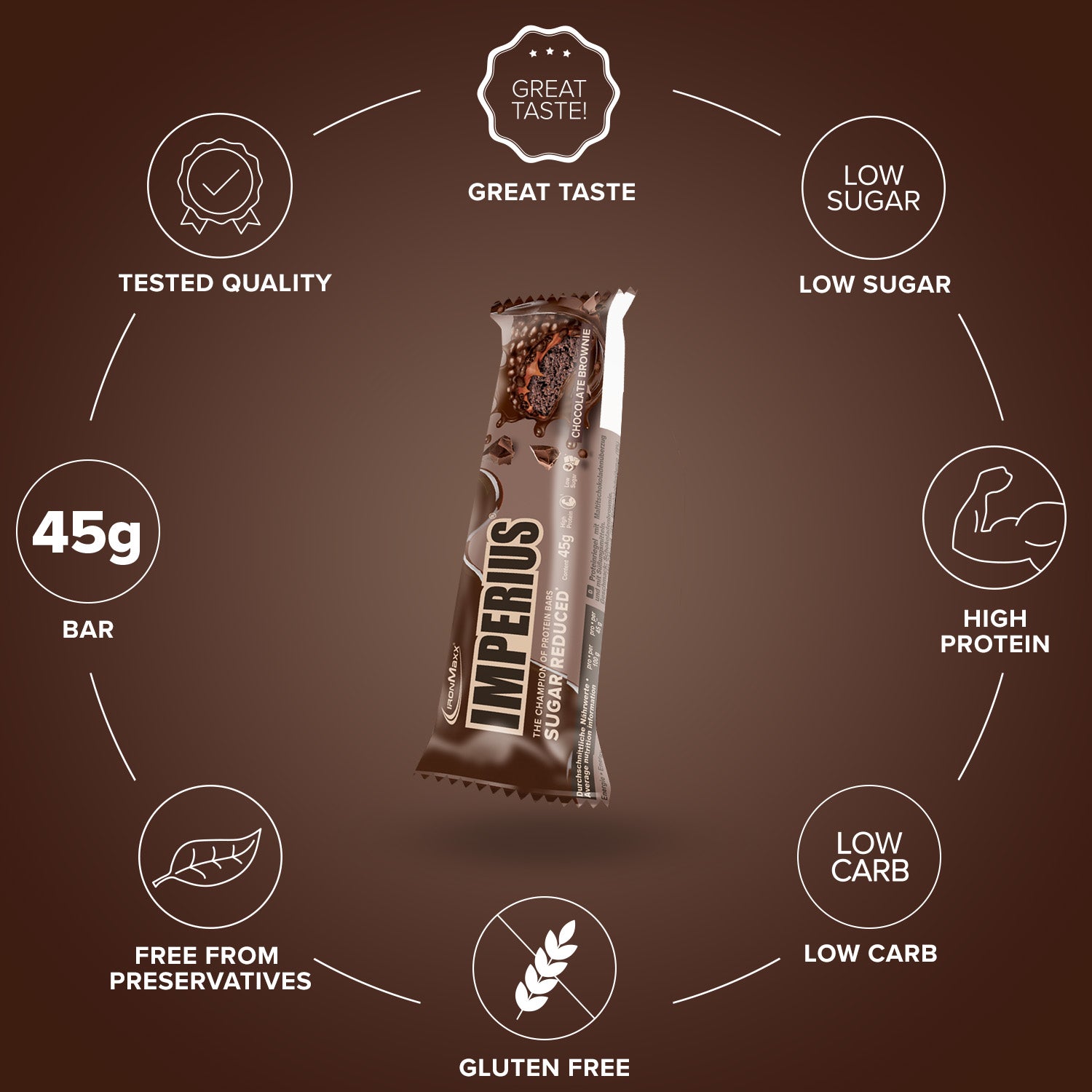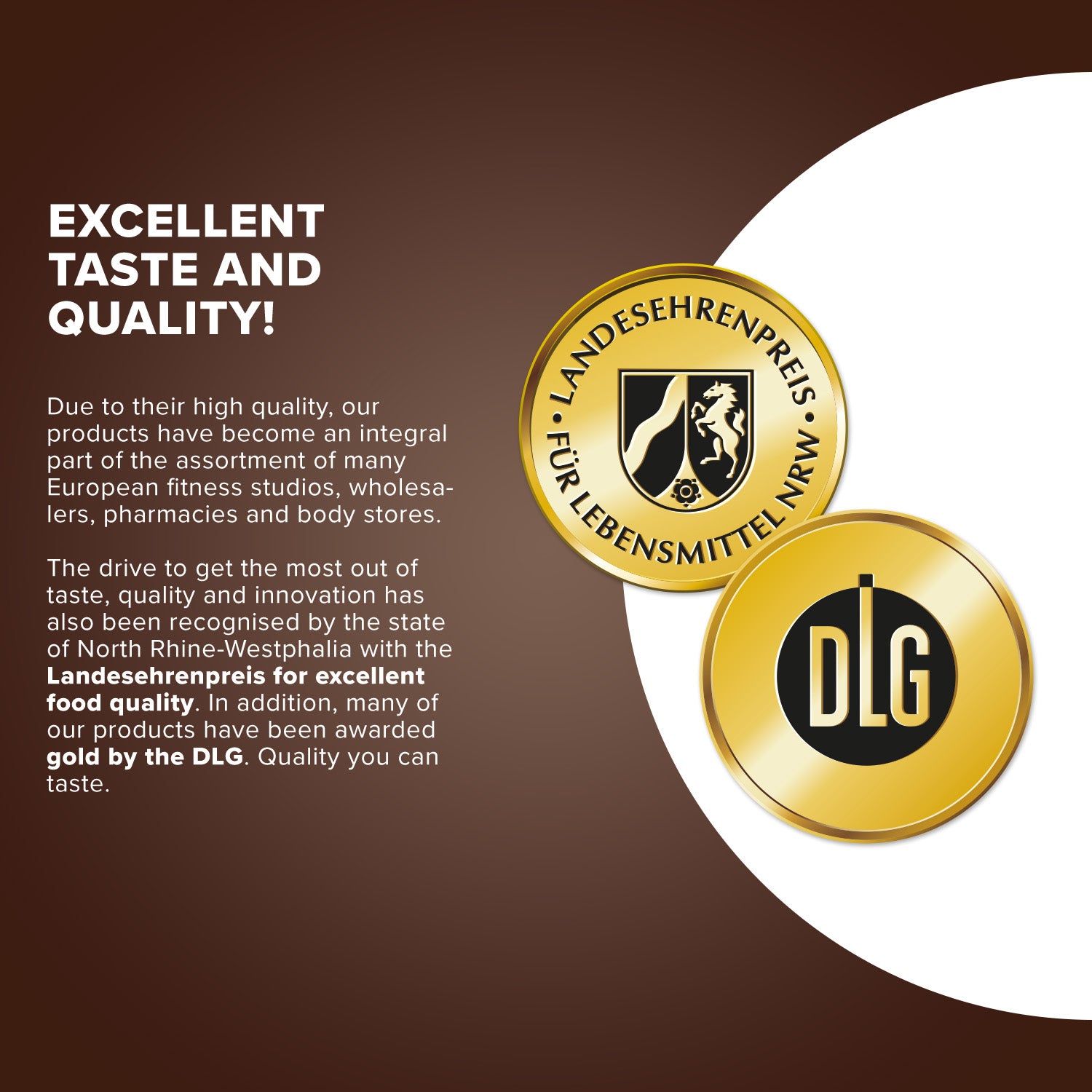 Verkehrsbezeichnung: Proteinriegel mit Maltitschokoladenüberzug und mit Süßungsmitteln. Geschmack: Schokoladenbrownie.