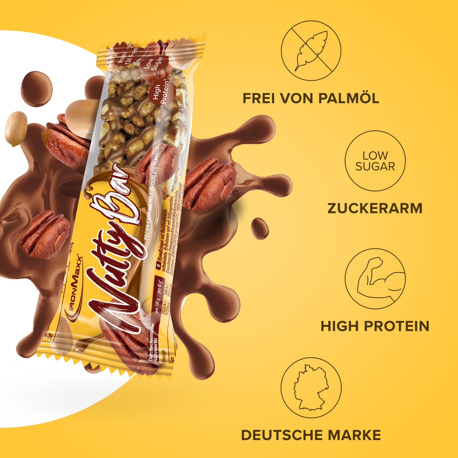 - Der Nutty Bar von IronMaxx® ist ein Protein-Nussriegel mit echten ganzen Nüssen