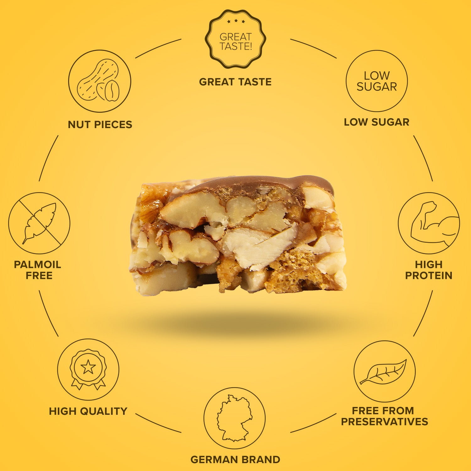 - Nussriegel mit einem hohen Proteingehalt von bis zu 26%!