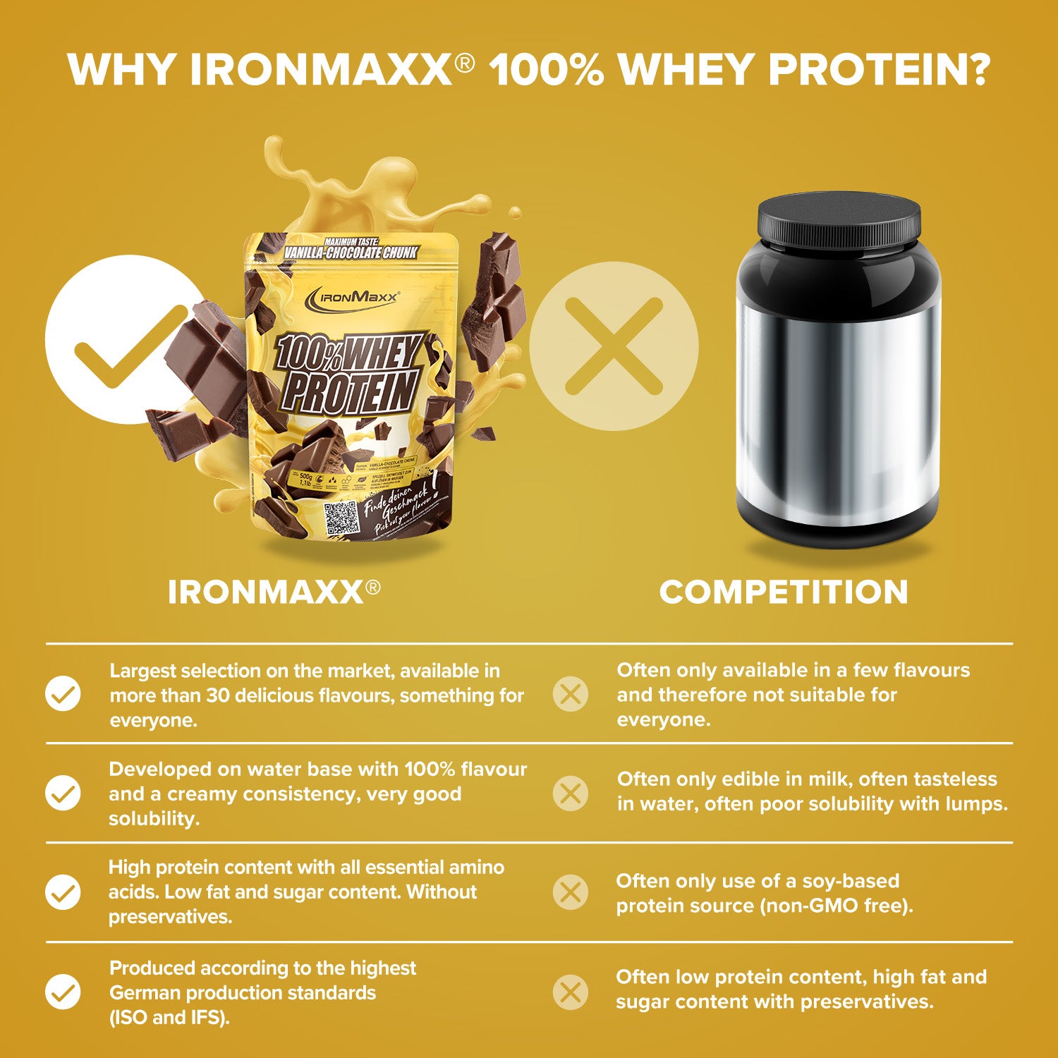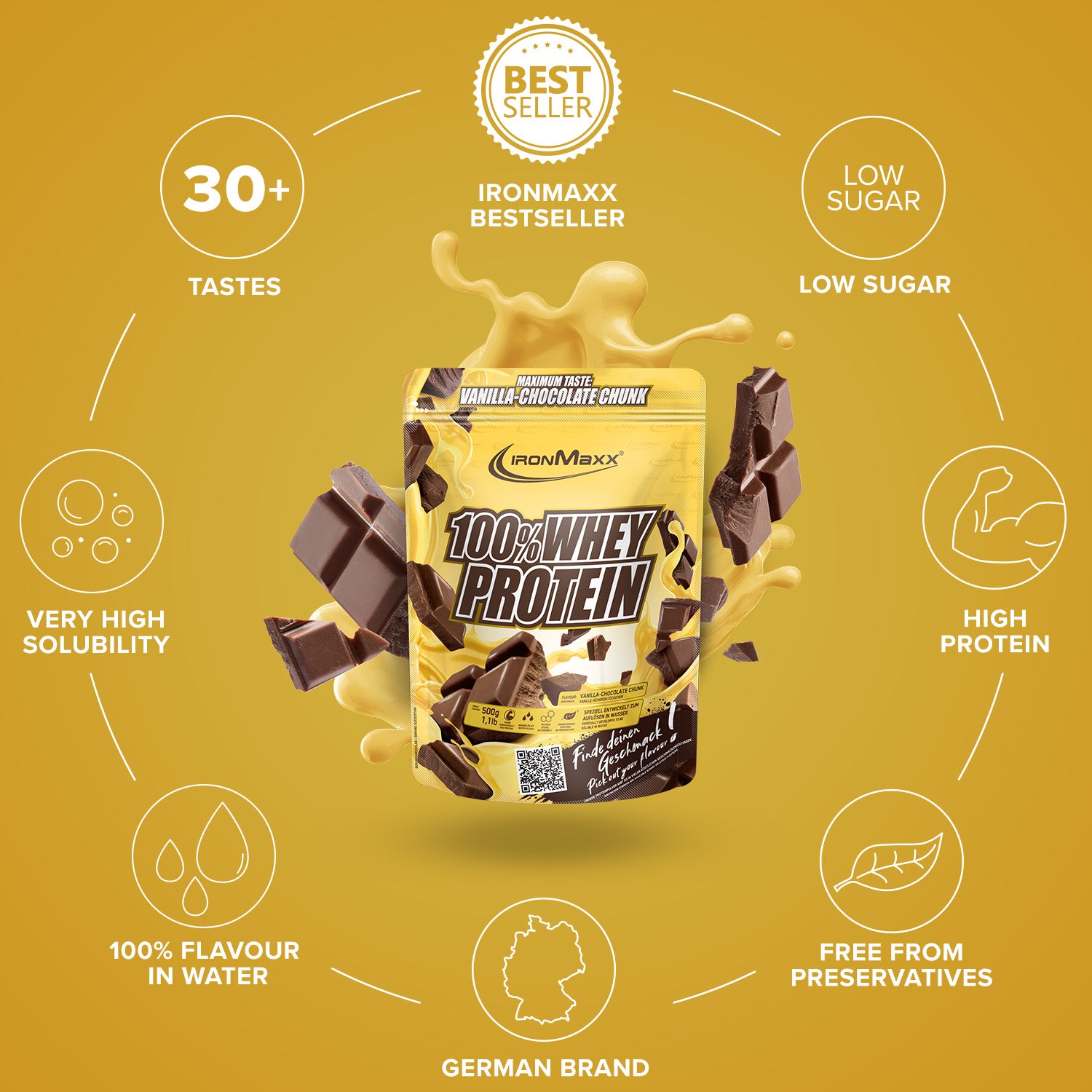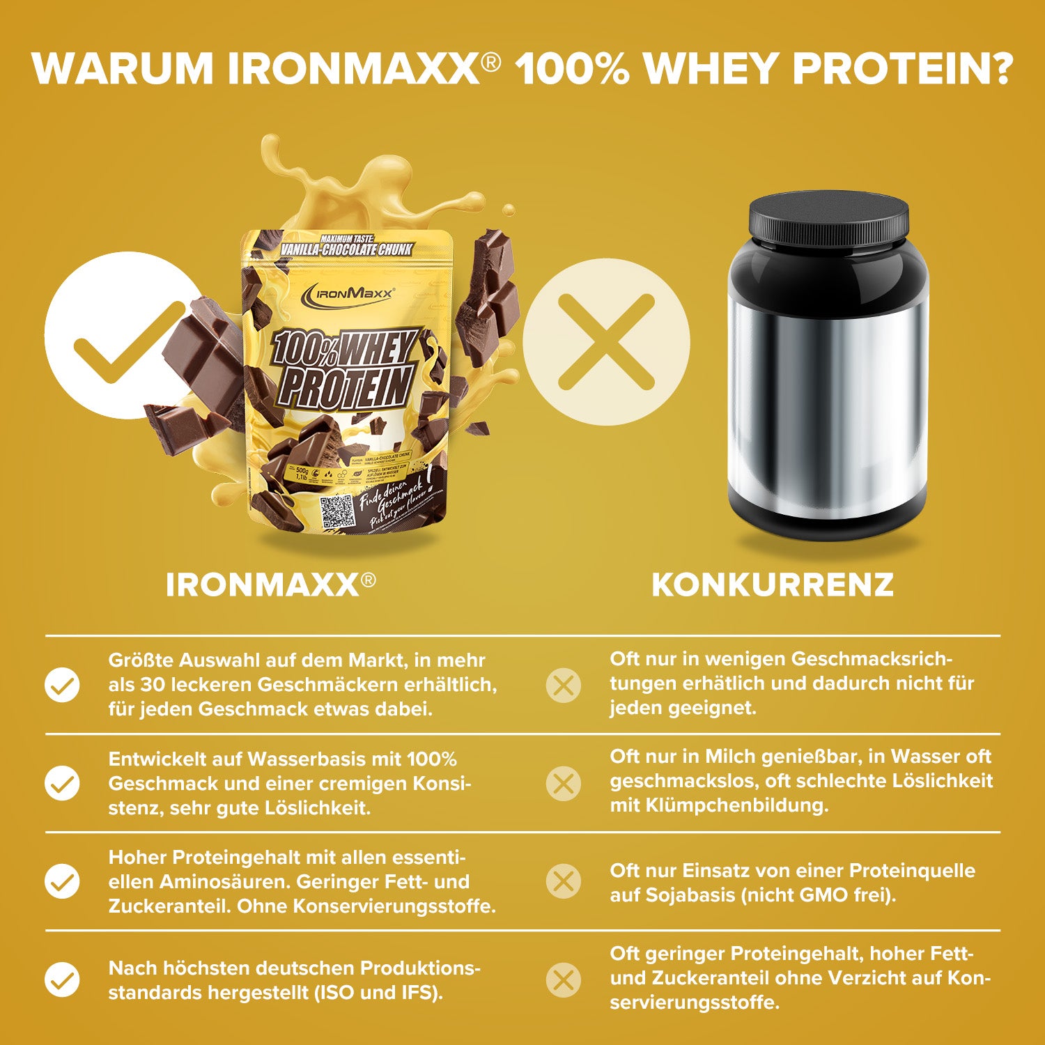 IronMaxx® 100% Whey Protein gehört zu den beliebtesten Eiweißshakes für Muskelaufbau, Regeneration und Diätphasen. Mit bis zu 80 % Eiweiß, einem vollständigen Aminosäurenprofil (inklusive BCAAs und EAAs) sowie einem cremigen Geschmack ist es der ideale Begleiter für deinen Fitnessalltag.