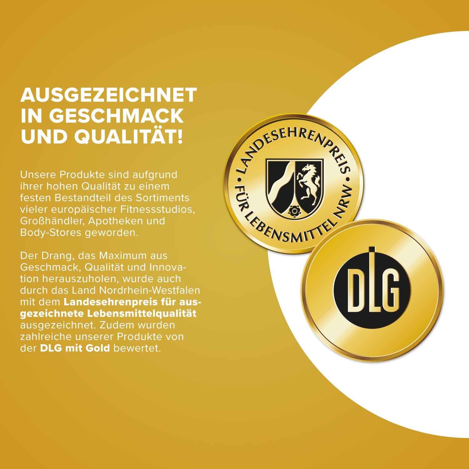 Die angegebene empfohlene tägliche Verzehrmenge darf nicht überschritten werden! Außerhalb der Reichweite von Kindern lagern! Vor Wärme, Feuchtigkeit und Sonneneinstrahlung geschützt aufbewahren. Proteine tragen zu einer Zunahme an Muskelmasse bei. Eine ausgewogene und abwechslungsreiche Ernährung und eine gesunde Lebensweise sind wichtig. Laut Handelsbrauch.
