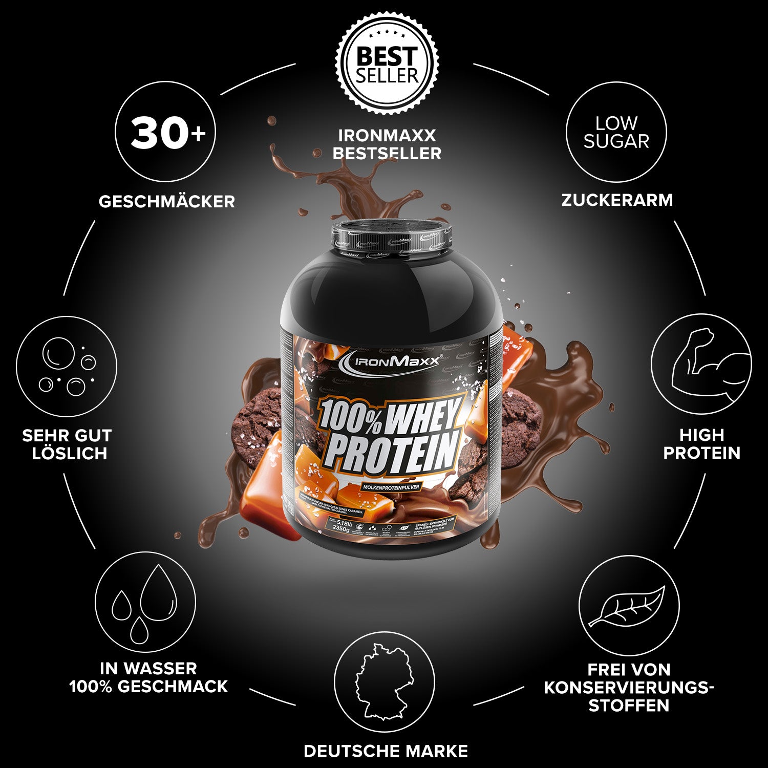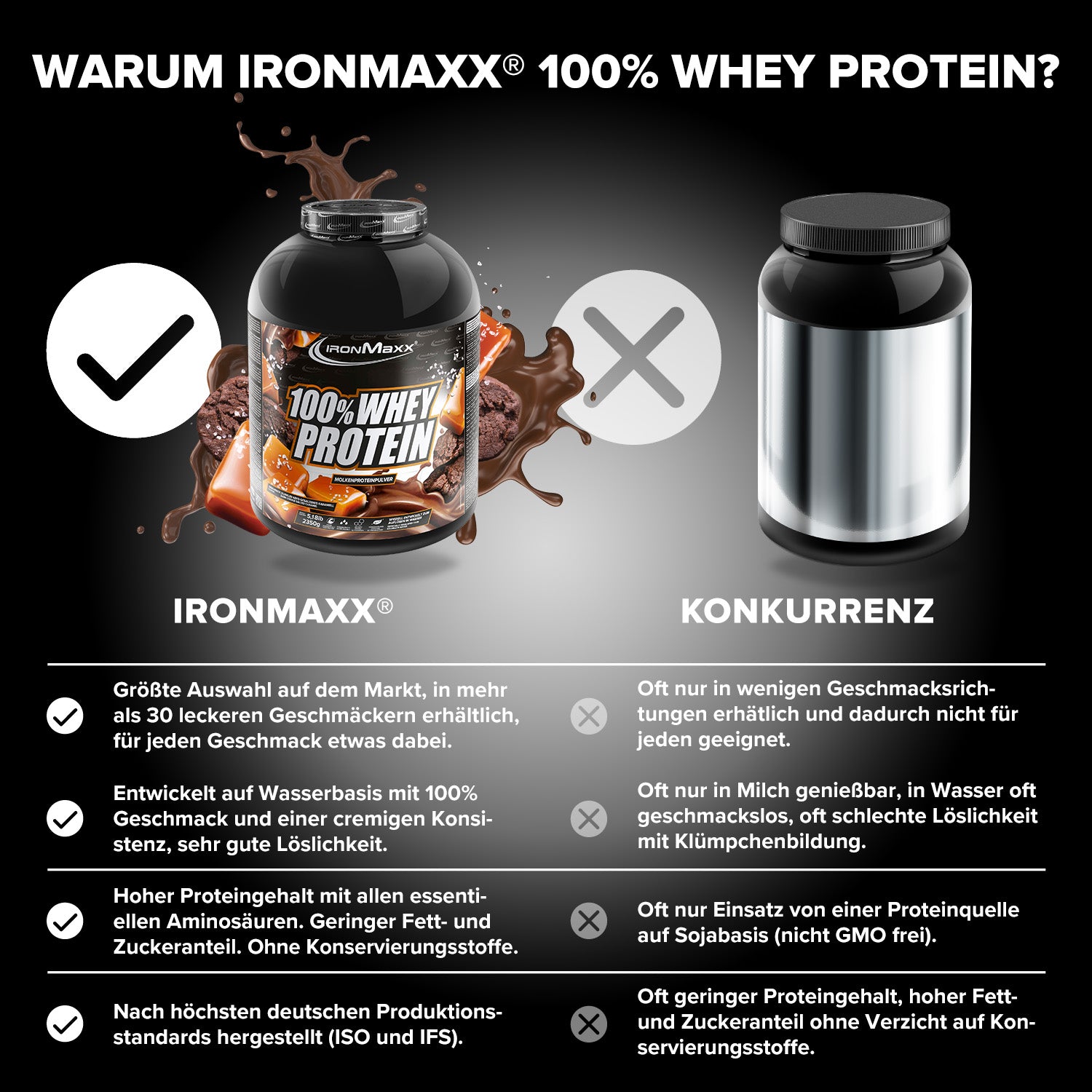 IronMaxx® 100% Whey Protein is one of the most popular protein shakes for muscle growth, recovery and cutting phases. With up to 80% protein, a complete amino acid profile (including BCAAs & EAAs) and a creamy, delicious taste, it is the perfect partner for your fitness routine.