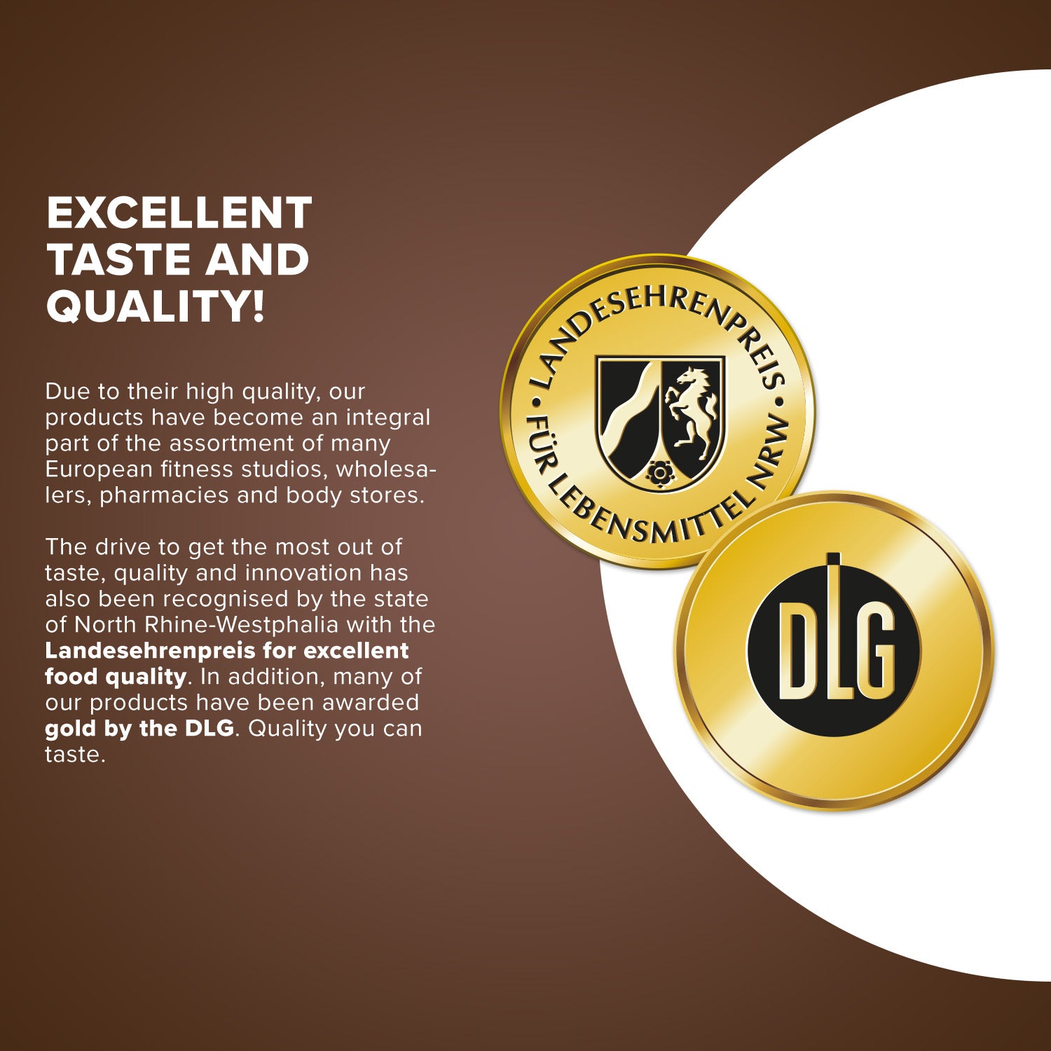 Thanks to its fast nutrient absorption, excellent solubility and sugar-free formula, this whey protein convinces across the board. Enjoy a wide variety of flavours – lump-free, creamy, easy to prepare – and experience premium quality for training, building muscle and conscious nutrition.