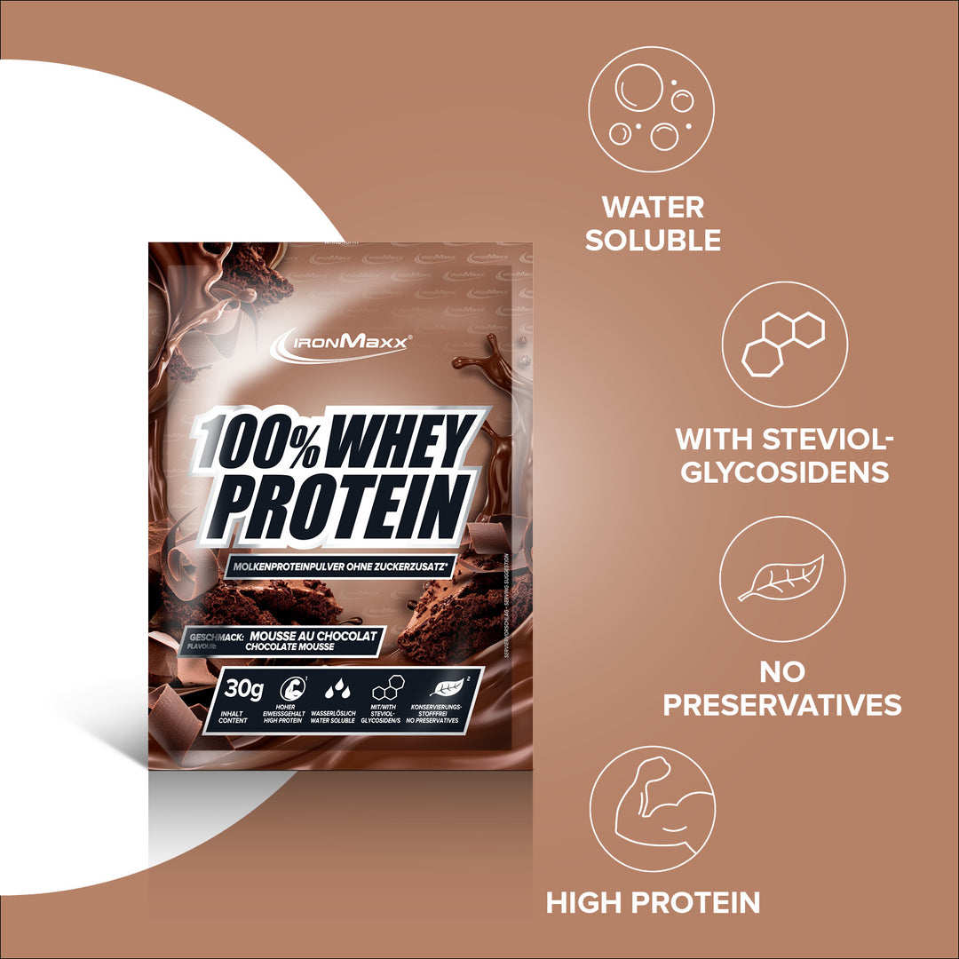 IronMaxx® 100% Whey Protein in this flavor is one of the most popular protein shakes for muscle building, recovery, and dieting phases. With up to 80% protein, a complete amino acid profile (including BCAAs and EAAs), and a Chocolate Mousse flavor, it is the perfect companion for your fitness routine.