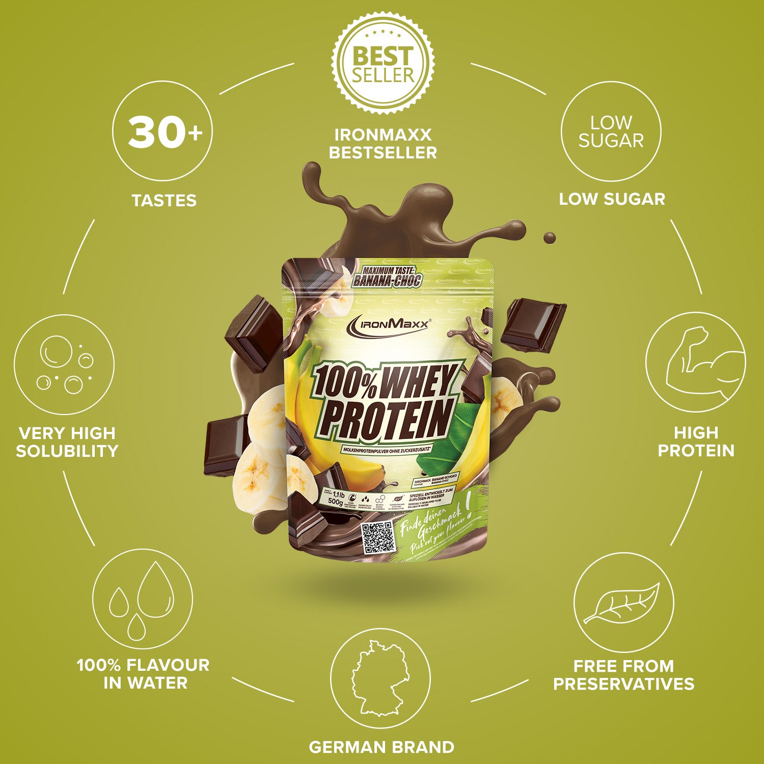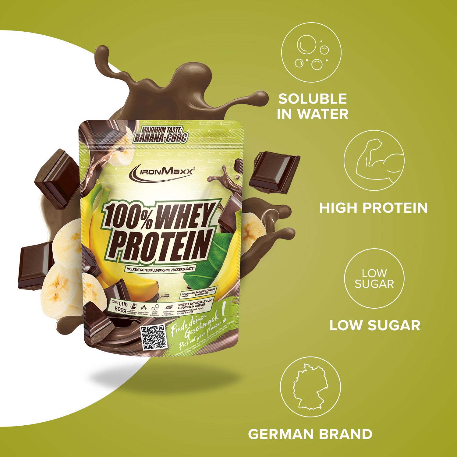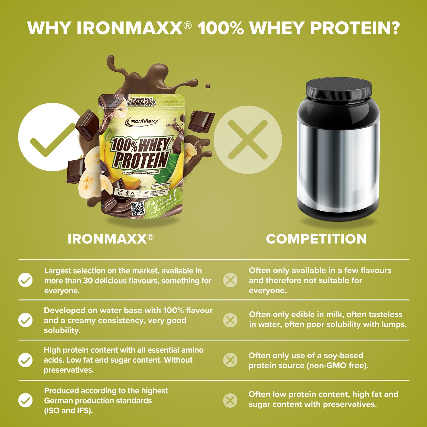 IronMaxx® 100% Whey Protein is one of the most popular protein shakes for muscle growth, recovery and cutting phases. With up to 80% protein, a complete amino acid profile (including BCAAs and EAAs) and a creamy, delicious taste, it is the perfect companion for your fitness lifestyle.