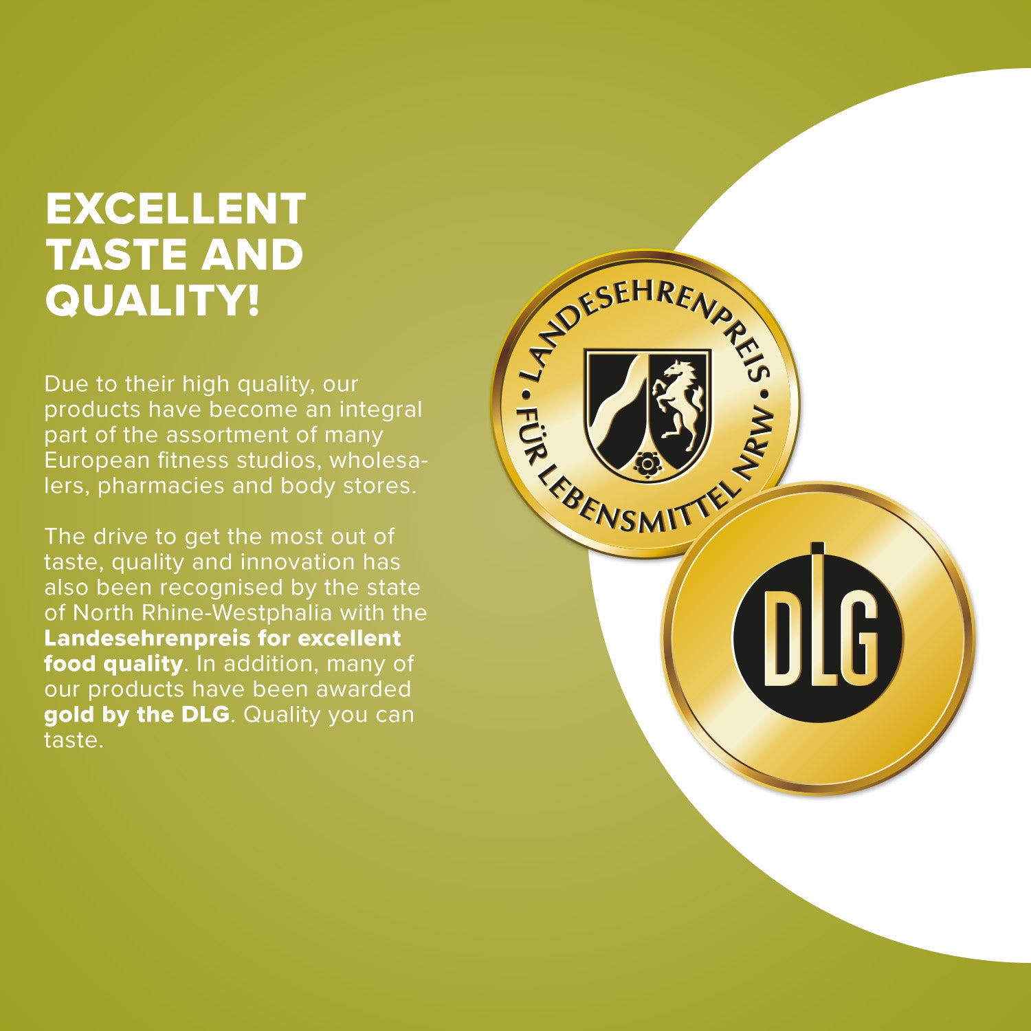 Thanks to its fast nutrient absorption, excellent solubility and sugar-free formula, this whey protein convinces across the board. Enjoy a wide variety of flavours – lump-free, creamy, easy to prepare – and experience premium quality for training, building muscle and conscious nutrition.