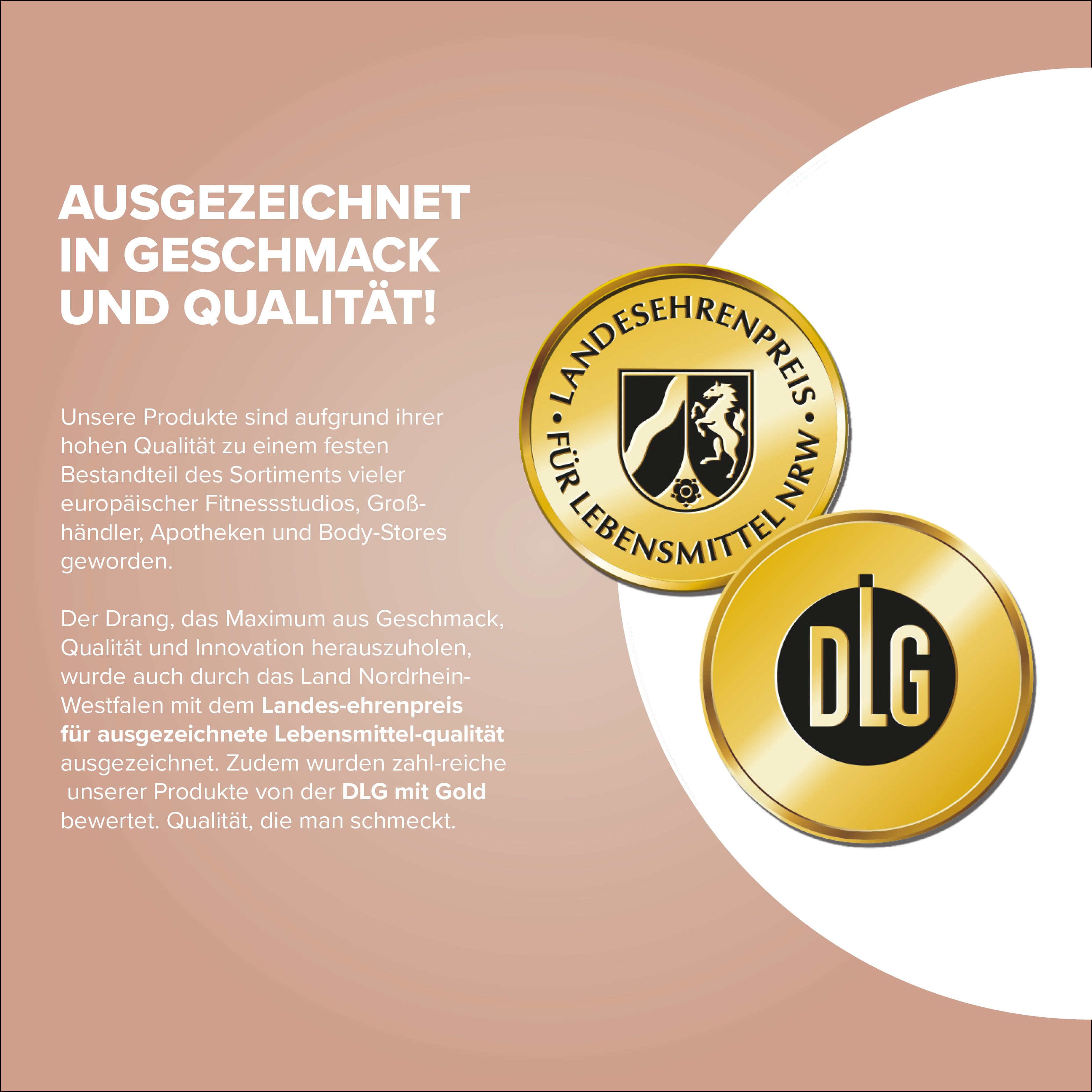 The recommended daily intake must not be exceeded! Keep out of reach of children! Store protected from heat, moisture, and sunlight. Proteins contribute to an increase in muscle mass. A balanced and varied diet and a healthy lifestyle are important. According to trade custom.