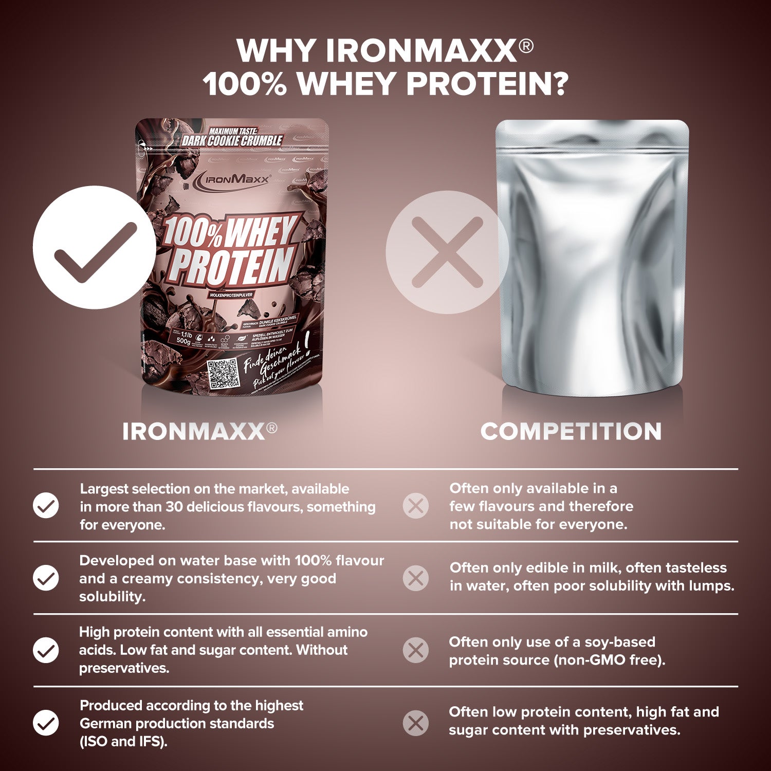 Preparation: 50 g powder (approx.4 heaped tablespoons) with 250 ml of cold water into the shaker and shake for 20 seconds.