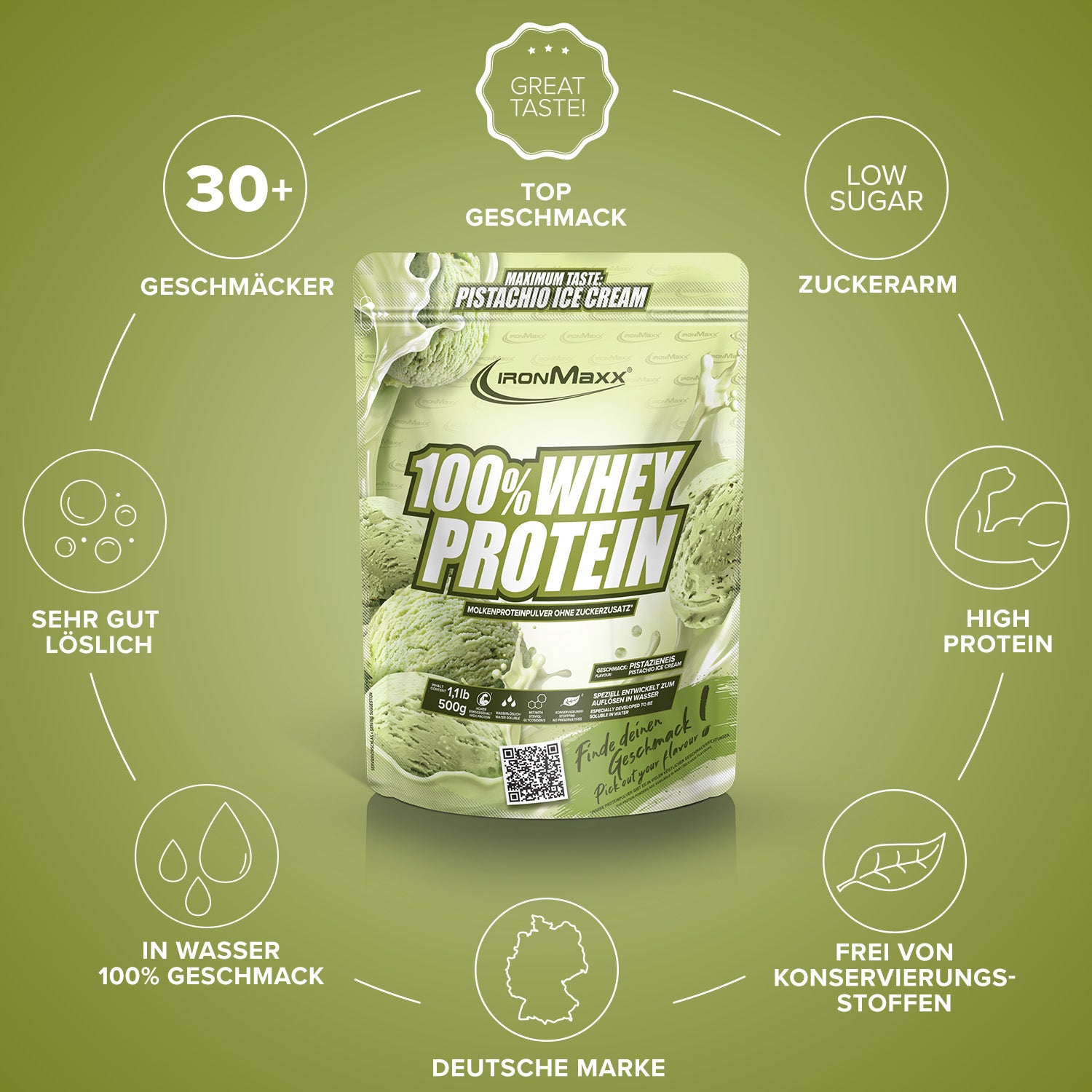 IronMaxx® 100% Whey Protein zählt zu den beliebtesten Proteinshakes für Muskelaufbau, Regeneration und Diätphasen. Mit bis zu 80 % Eiweiß, einem kompletten Aminosäurenprofil (inkl. BCAAs & EAAs) und cremigem Geschmack ist es der ideale Begleiter für deinen Fitnessalltag.