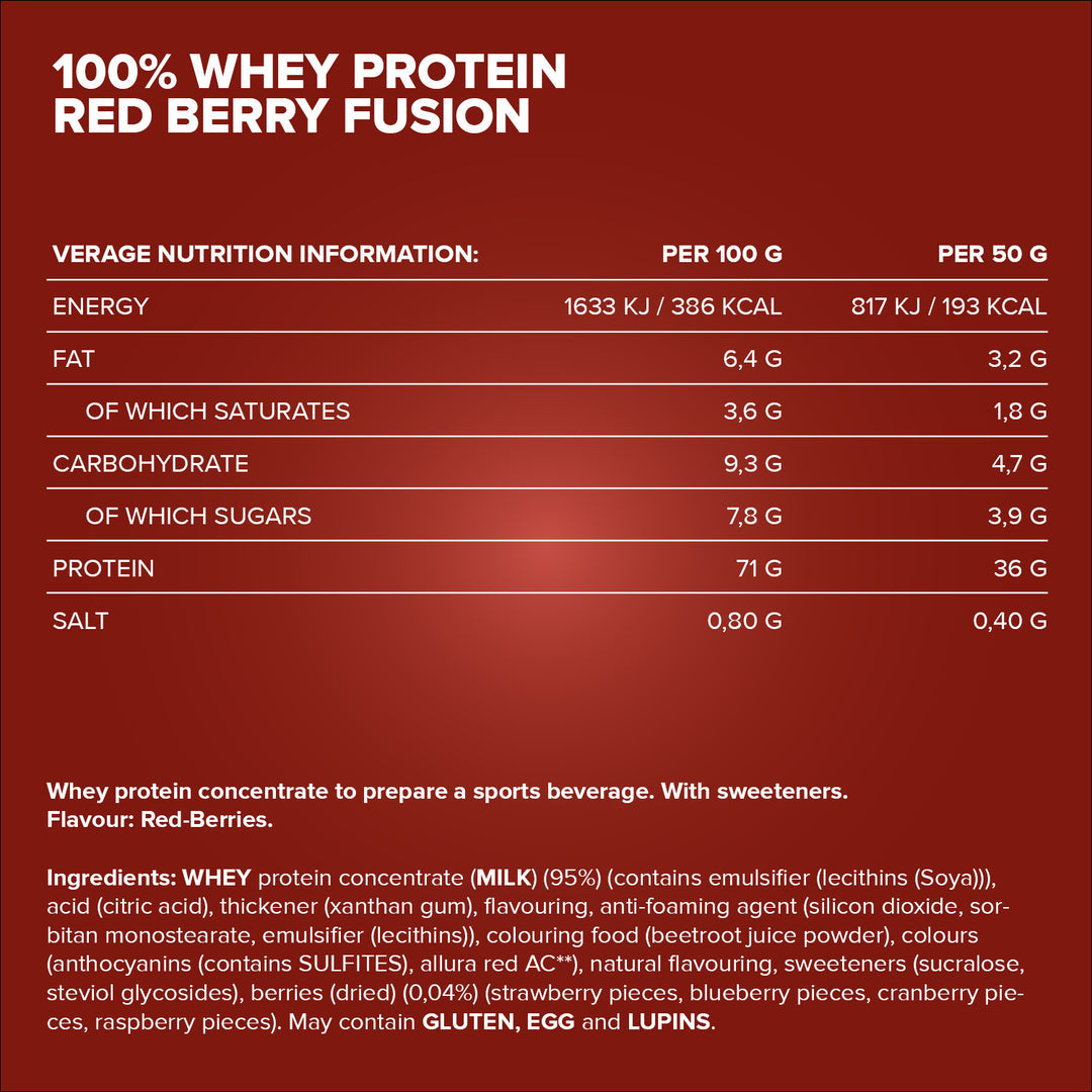 100% Whey Protein - 900g can - Red Berry Fusion