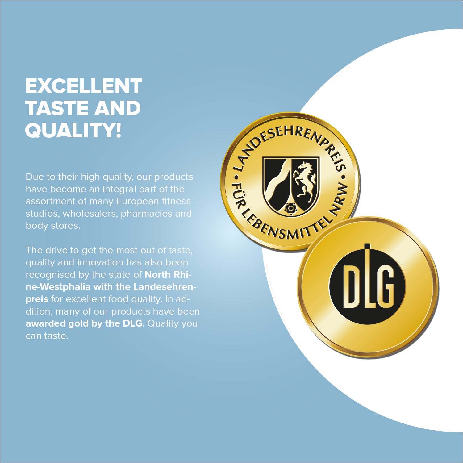 Do not exceed the stated recommended daily intake. Keep out of the reach of children. Store protected from heat, moisture and sunlight. Protein contributes to an increase in muscle mass. A balanced and varied diet and a healthy lifestyle are important. As customary in trade.