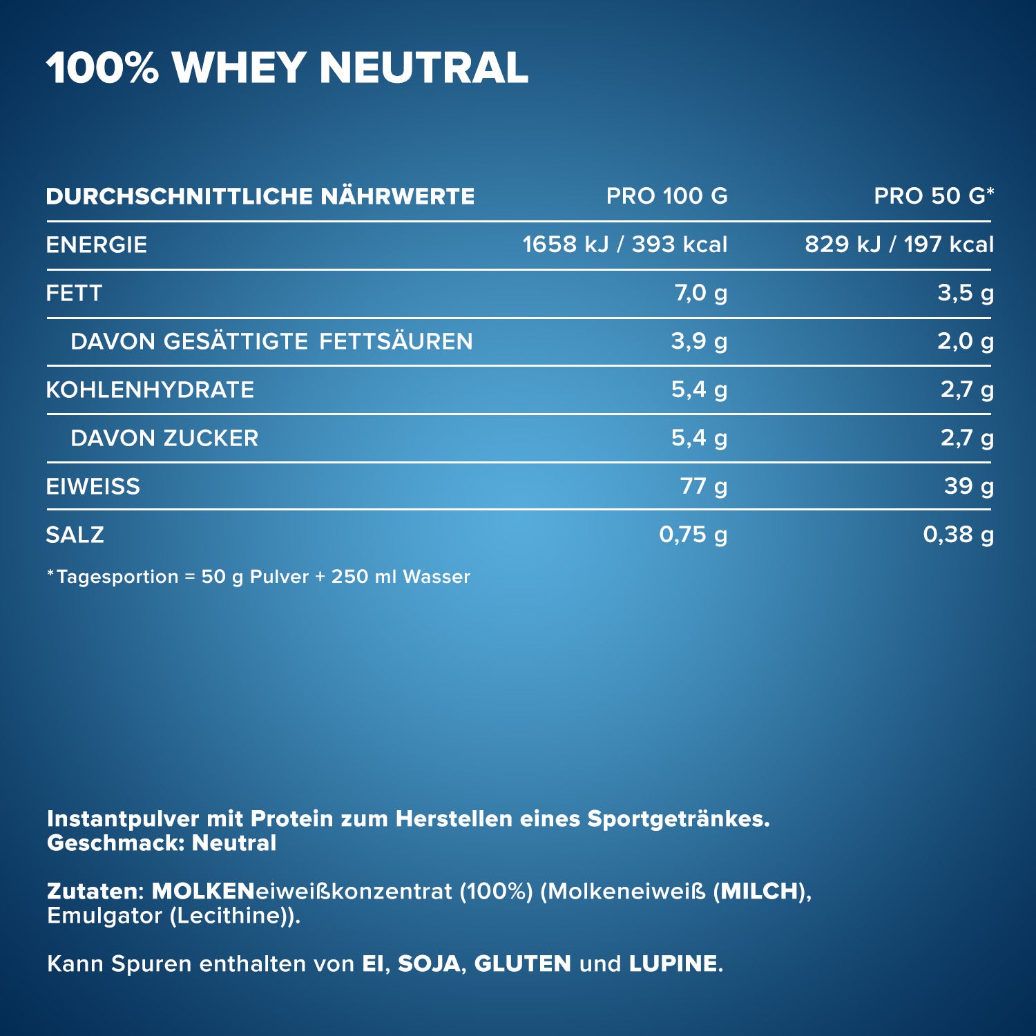 Thanks to its fast nutrient absorption, excellent solubility and sugar-free formula, this whey protein convinces across the board. Enjoy a wide variety of flavours – lump-free, creamy, easy to prepare – and experience premium quality for training, building muscle and conscious nutrition.