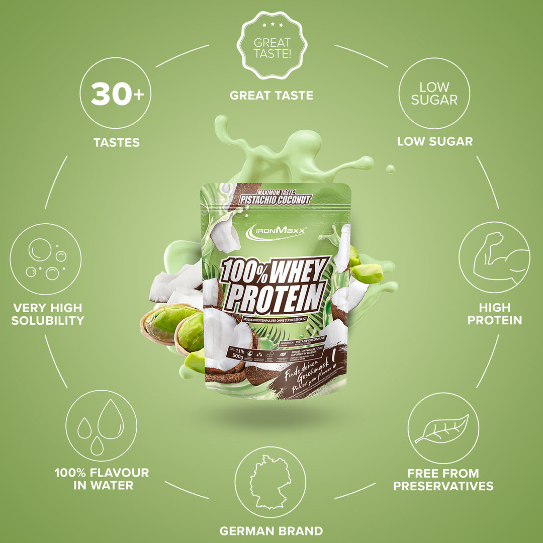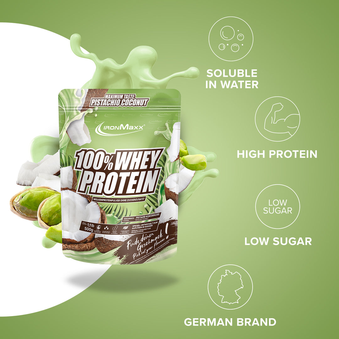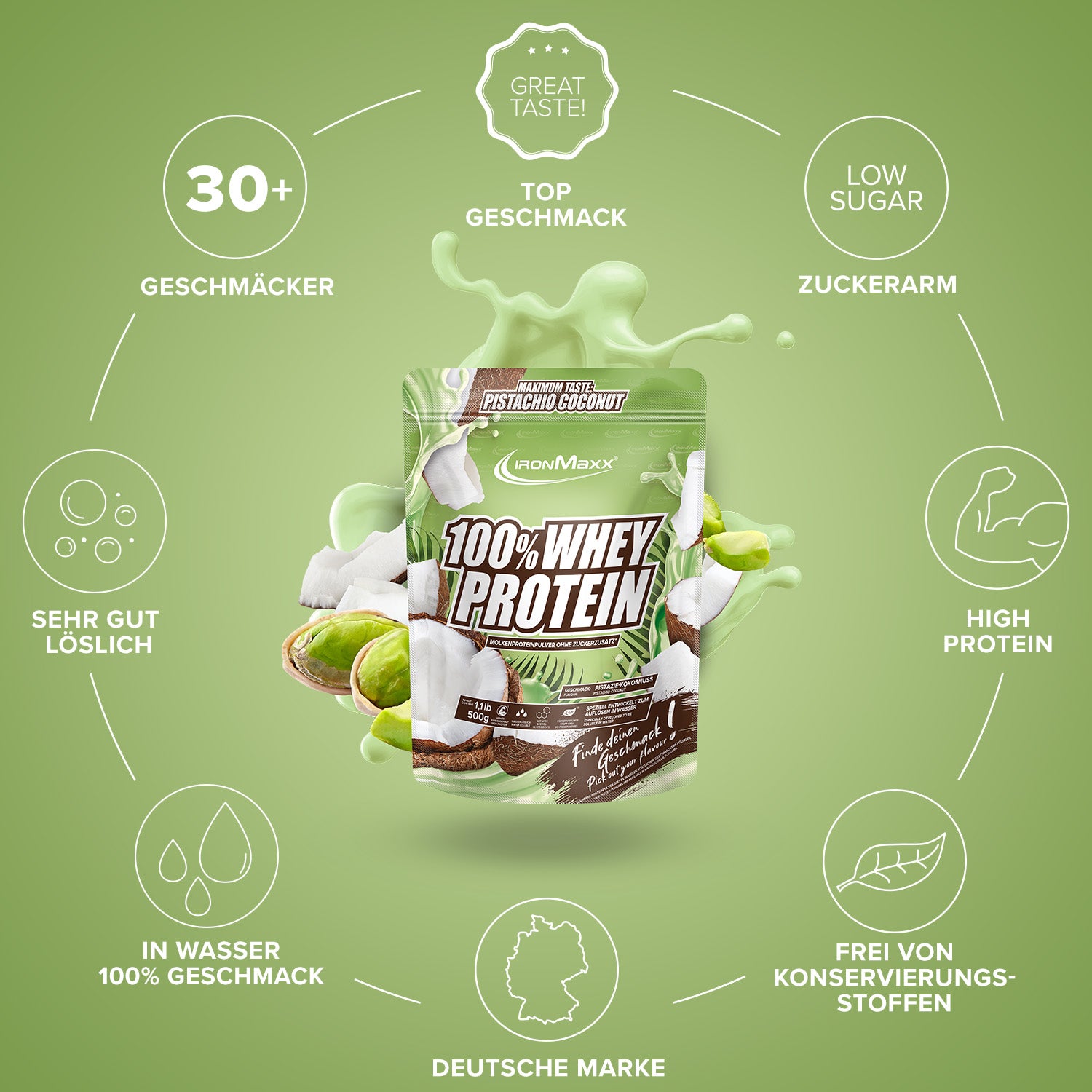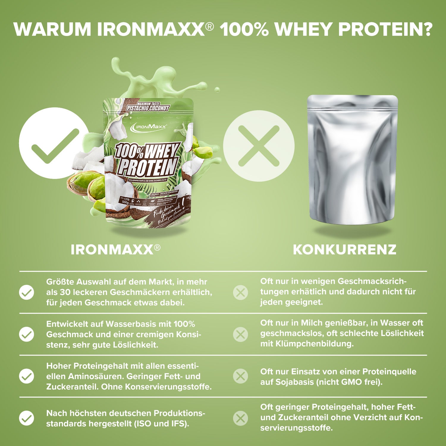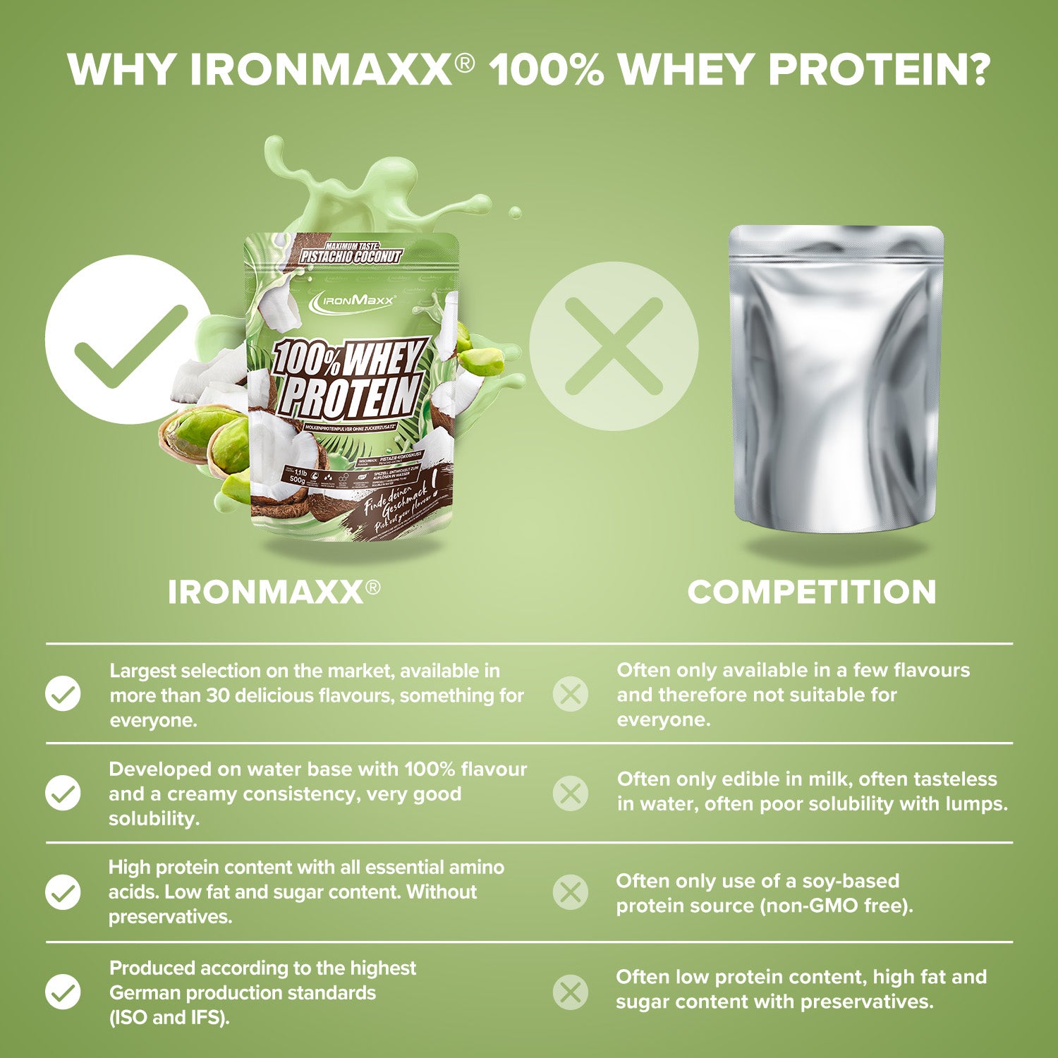IronMaxx® 100% Whey Protein is one of the most popular protein shakes for muscle growth, recovery and cutting phases. With up to 80% protein, a complete amino acid profile (including BCAAs and EAAs) and a creamy, delicious taste, it is the perfect companion for your fitness lifestyle.