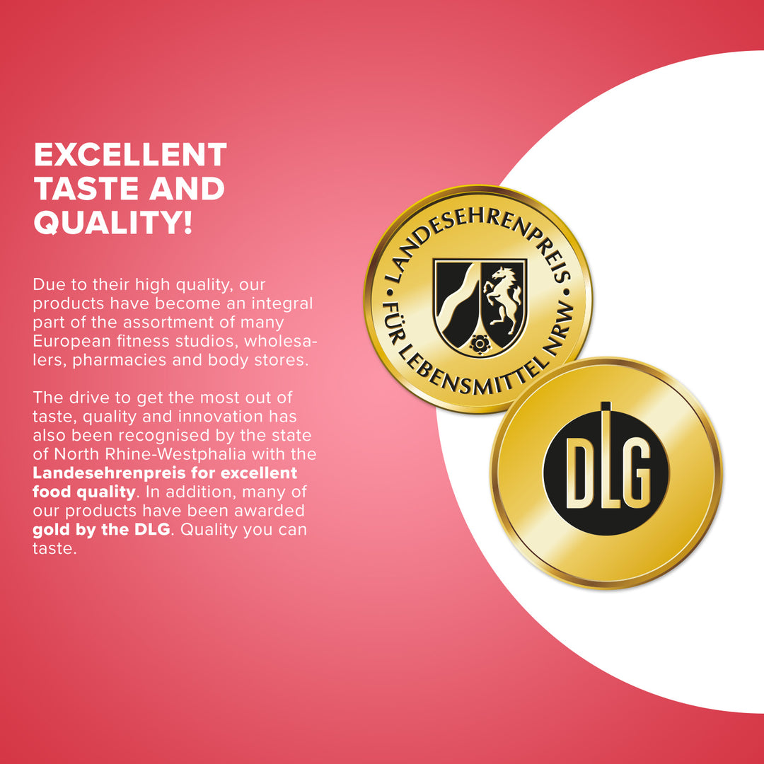 Thanks to its fast nutrient absorption, excellent solubility and sugar-free formula, this whey protein convinces across the board. Enjoy a wide variety of flavours – lump-free, creamy, easy to prepare – and experience premium quality for training, building muscle and conscious nutrition.