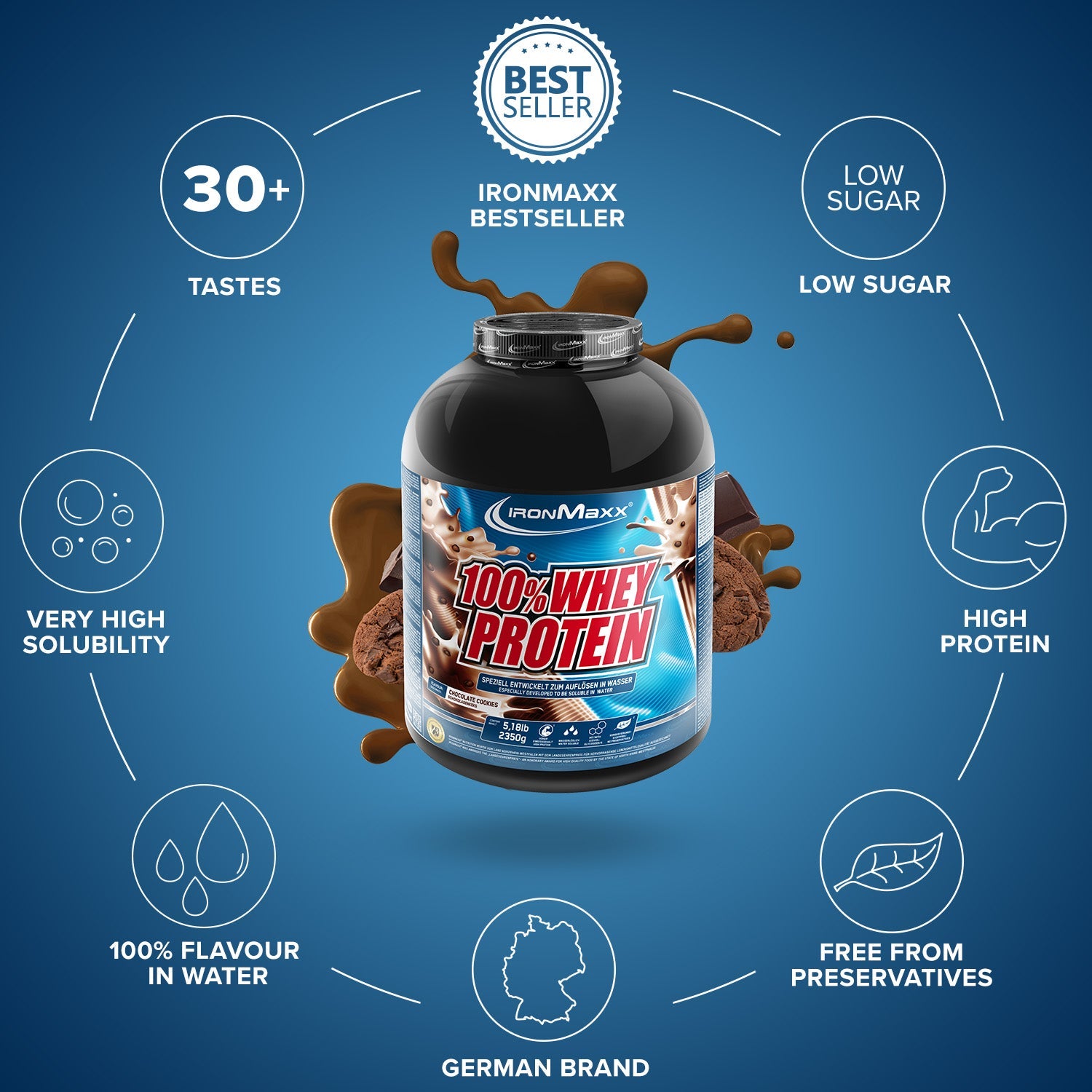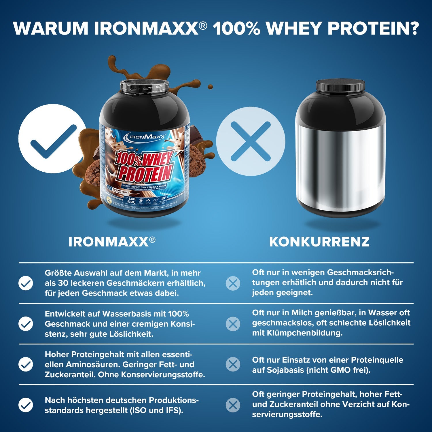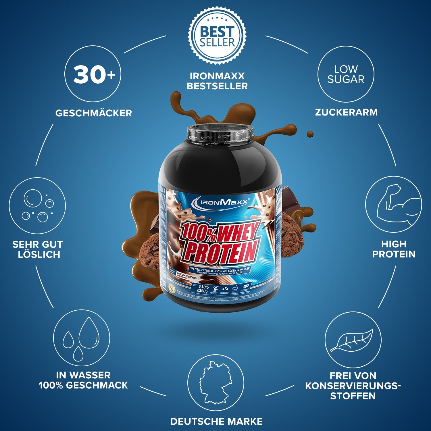 IronMaxx® 100% Whey Protein is one of the most popular protein shakes for muscle growth, recovery and cutting phases. With up to 80% protein, a complete amino acid profile (including BCAAs & EAAs) and a creamy, delicious taste, it is the perfect partner for your fitness routine.