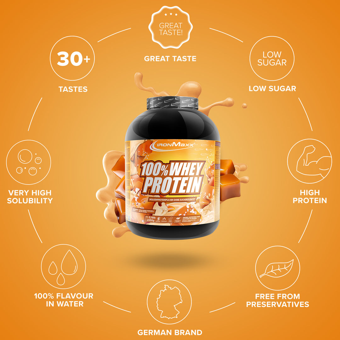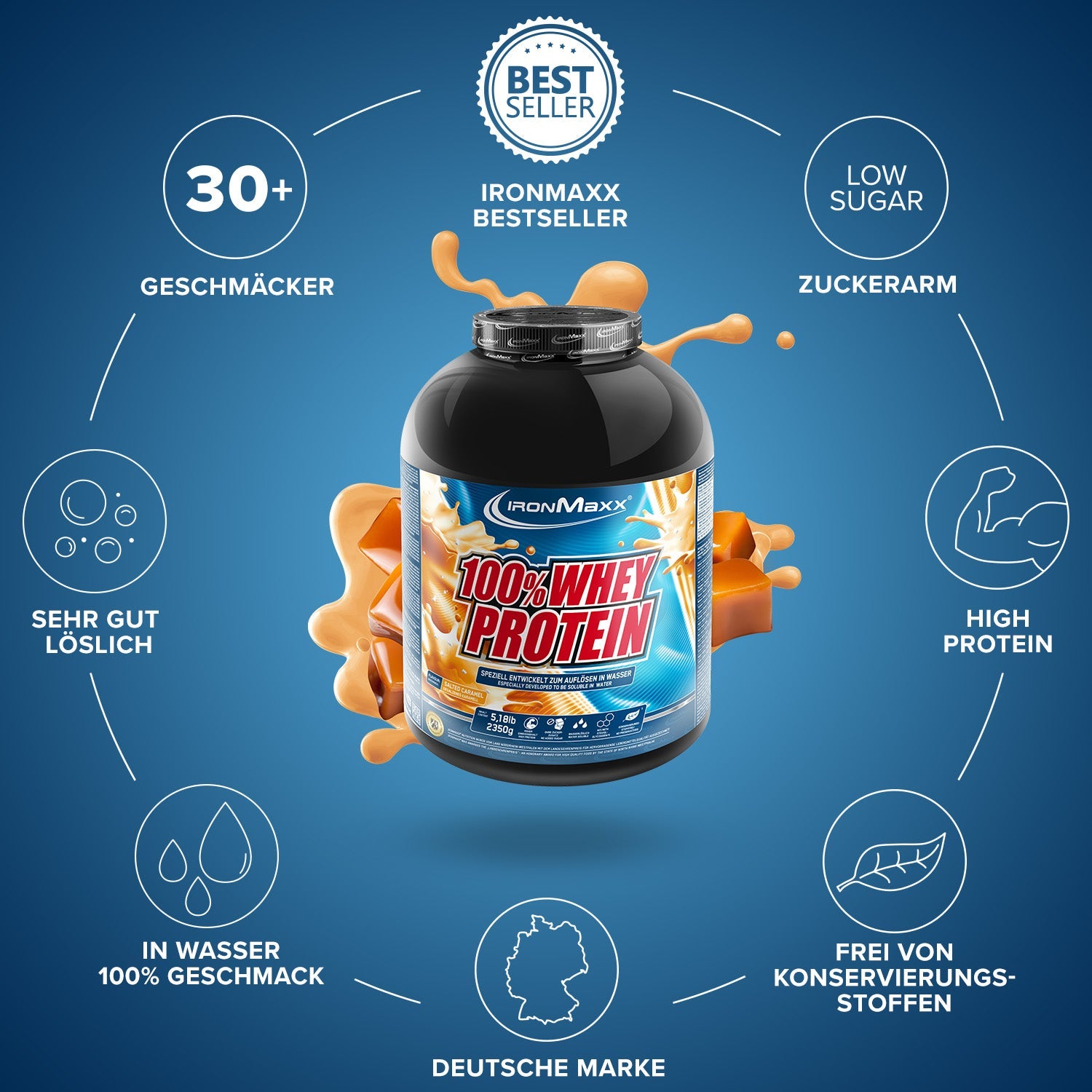 IronMaxx® 100% Whey Protein is one of the most popular protein shakes for muscle growth, recovery and cutting phases. With up to 80% protein, a complete amino acid profile (including BCAAs & EAAs) and a creamy, delicious taste, it is the perfect partner for your fitness routine.