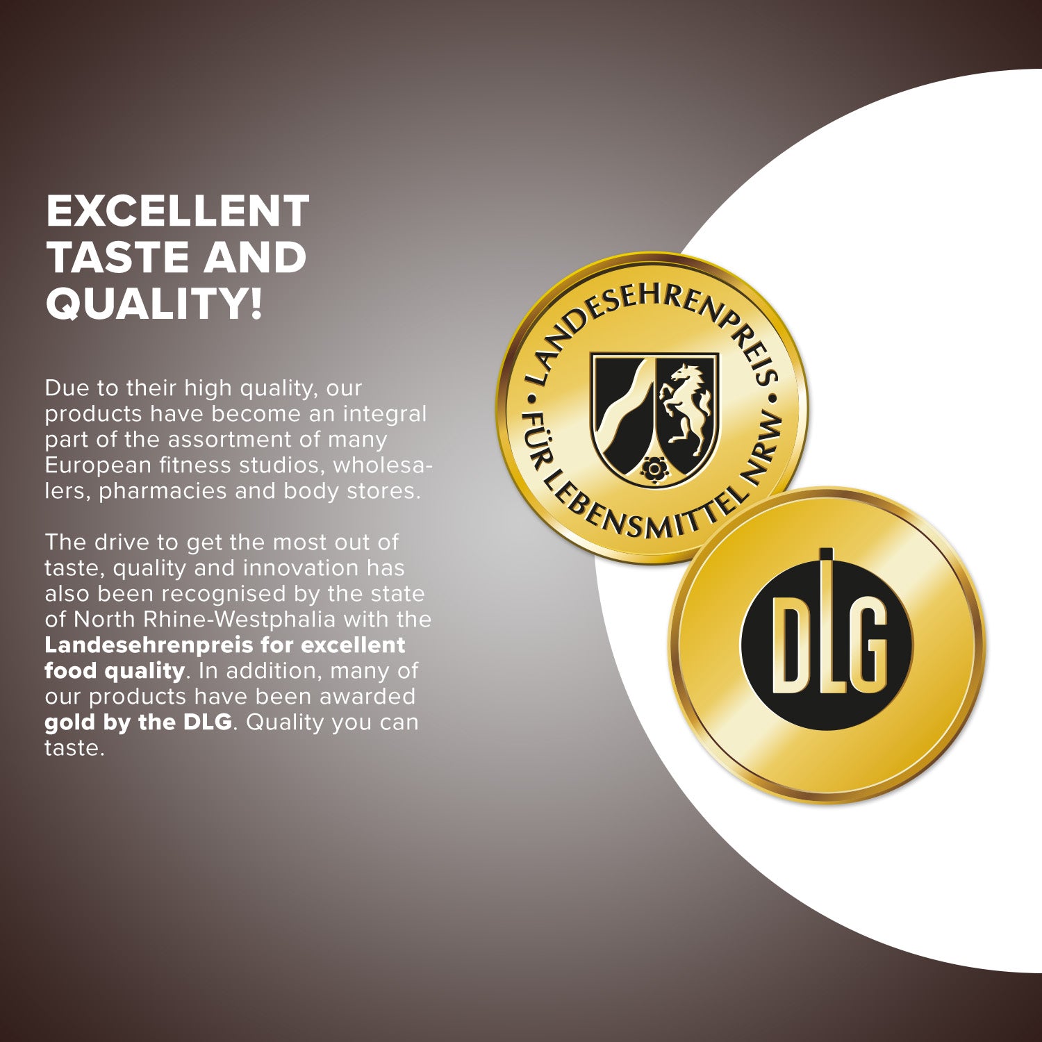 The recommended daily intake must not be exceeded! Keep out of reach of children! Store protected from heat, moisture, and sunlight. Proteins contribute to an increase in muscle mass. A balanced and varied diet and a healthy lifestyle are important. According to trade custom.