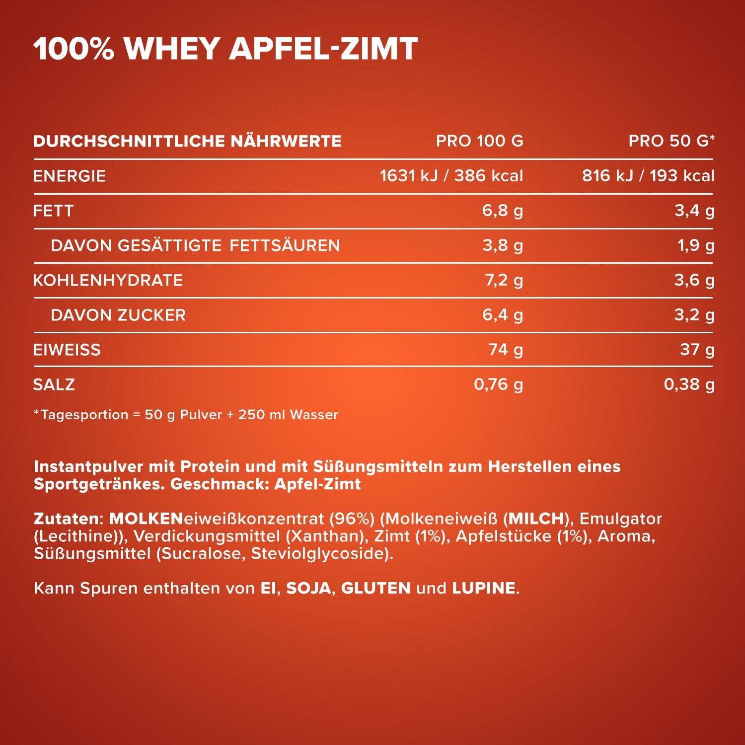 This whey protein powder delivers fast nutrient absorption, excellent solubility and a sugar-free formula. Available in a variety of tasty flavours – creamy, lump-free, easy to prepare – it’s your ideal protein shake for training, building muscle and conscious nutrition.