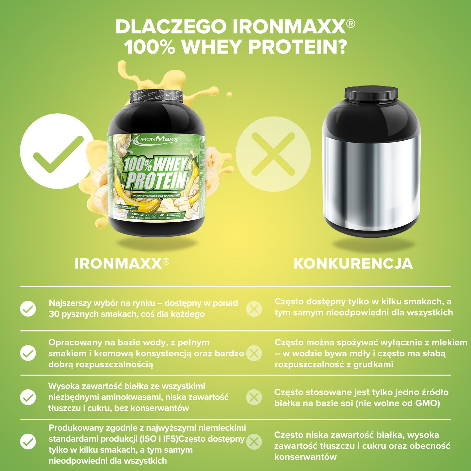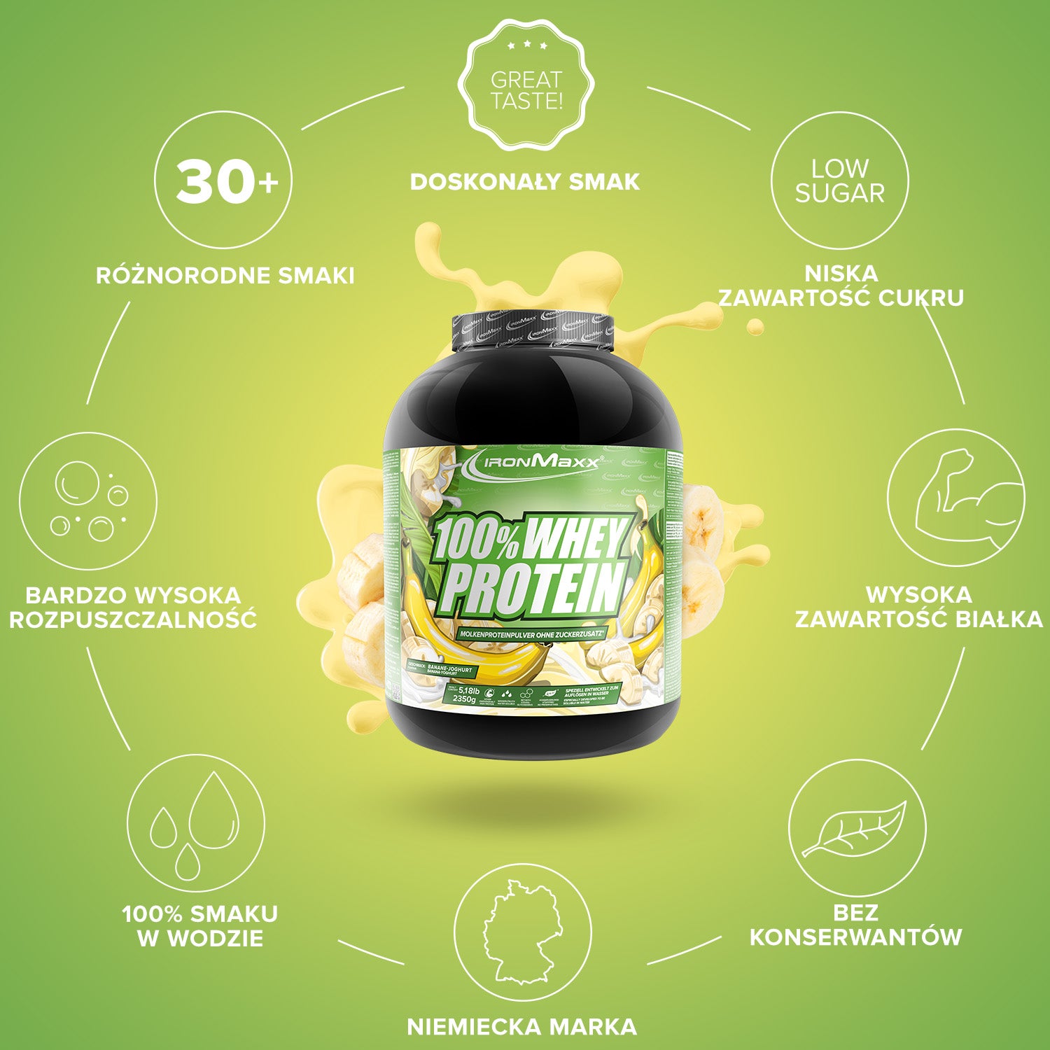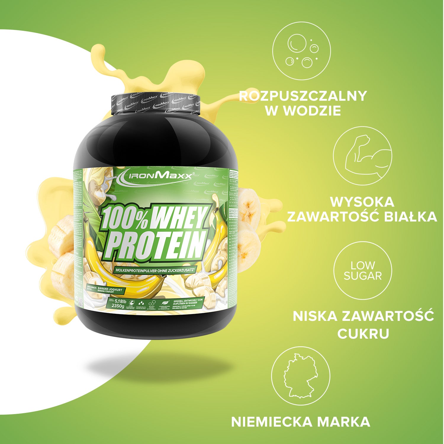 IronMaxx® 100% Whey Protein is one of the most popular protein shakes for muscle growth, recovery and cutting phases. With up to 80% protein, a complete amino acid profile (including BCAAs & EAAs) and a creamy, delicious taste, it is the perfect partner for your fitness routine.