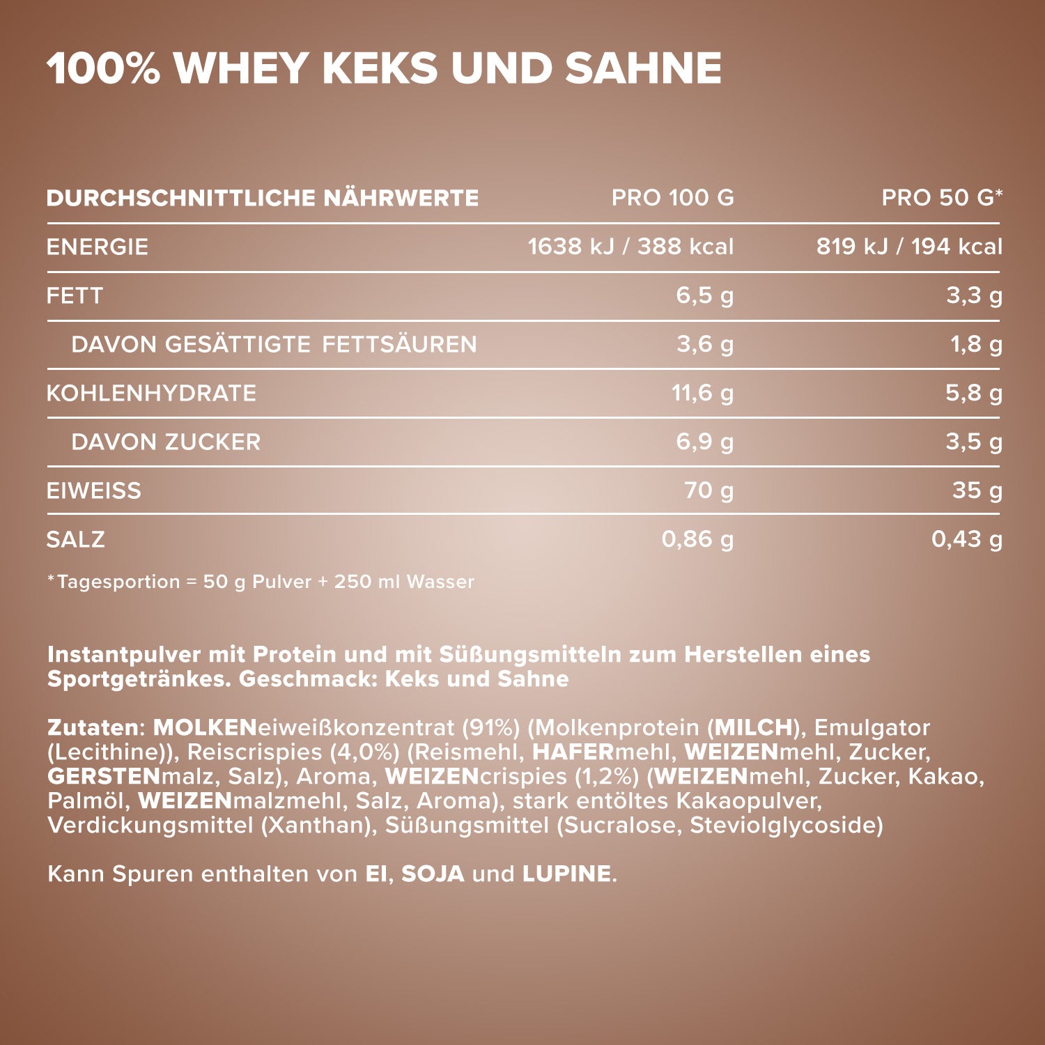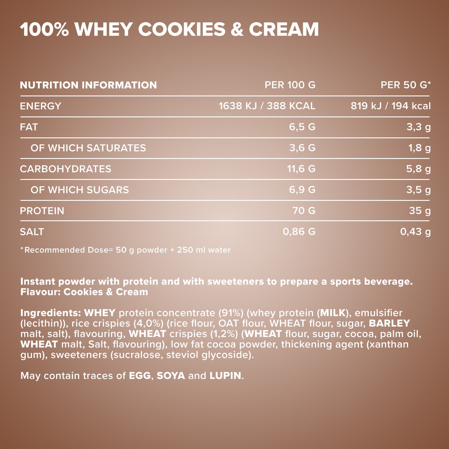 ²One serving contains 30 g of powder and 200 ml of water or milk.³In our Designer Whey, we do not use added sugar, but rely on safe
