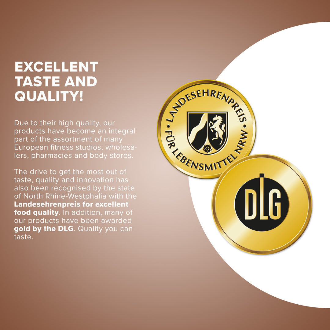The recommended daily intake must not be exceeded! Keep out of reach of children! Store protected from heat, moisture, and sunlight. Proteins contribute to an increase in muscle mass. A balanced and varied diet and a healthy lifestyle are important. According to trade custom.