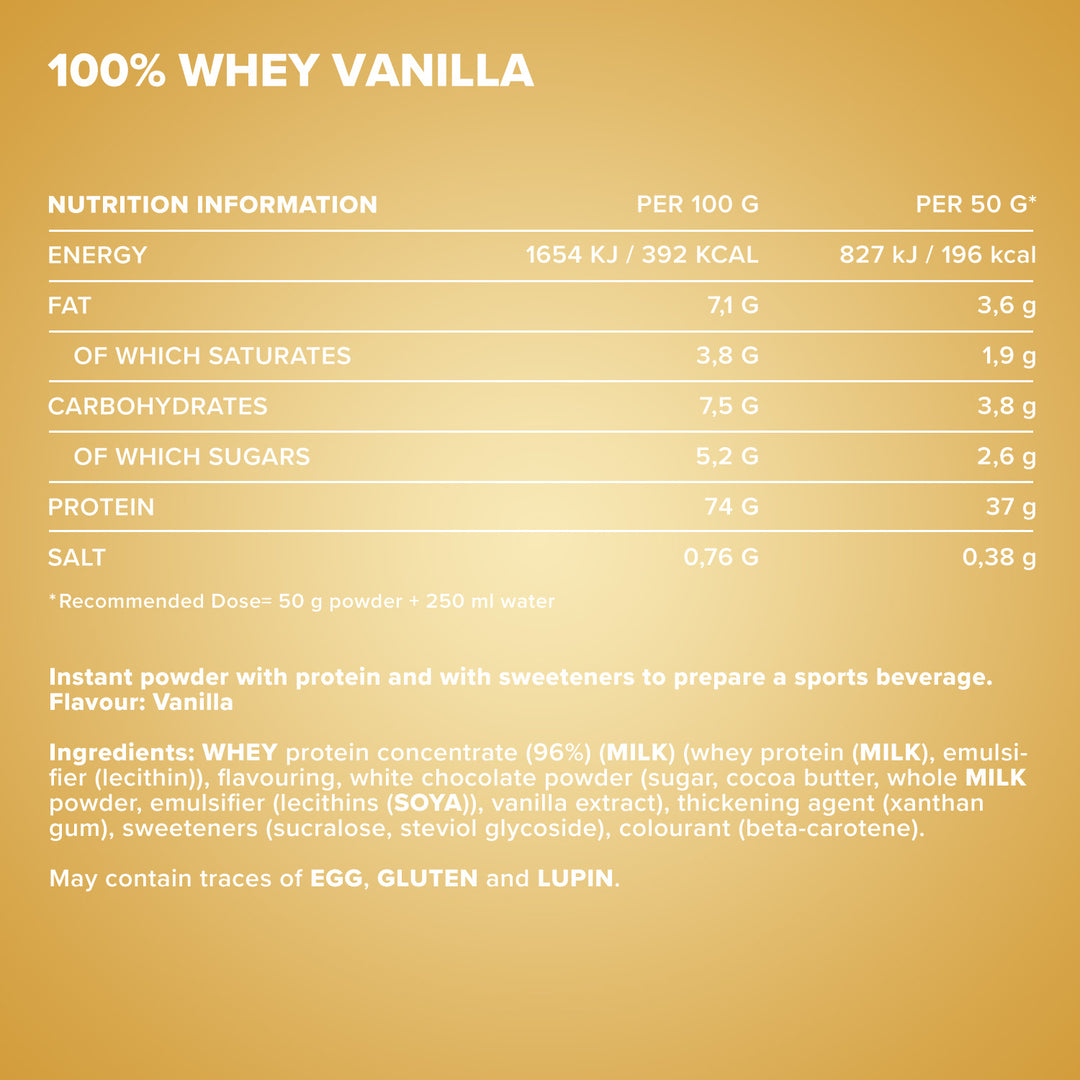 ²One serving contains 30 g of powder and 200 ml of water or milk.³In our Designer Whey, we do not use added sugar, but rely on safe