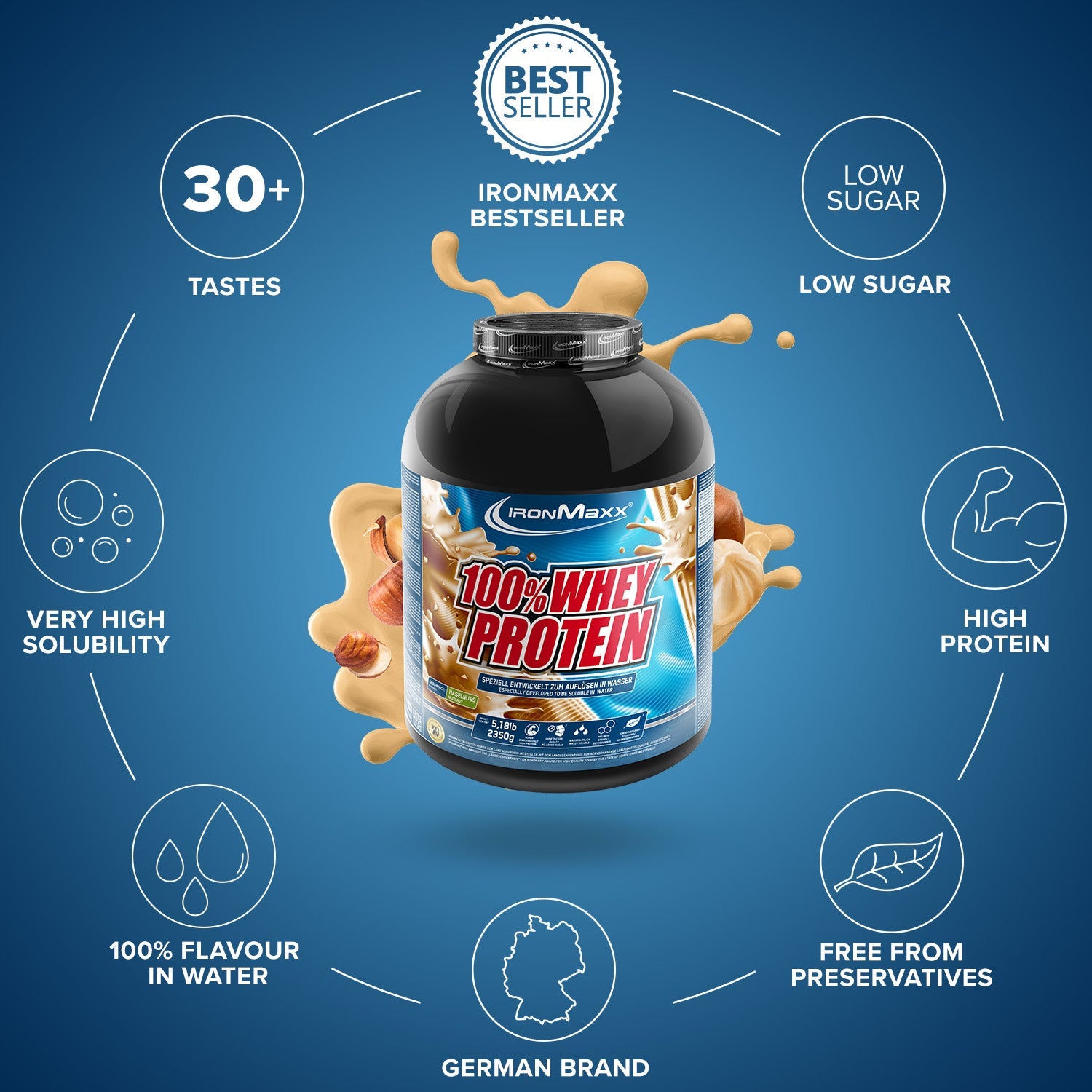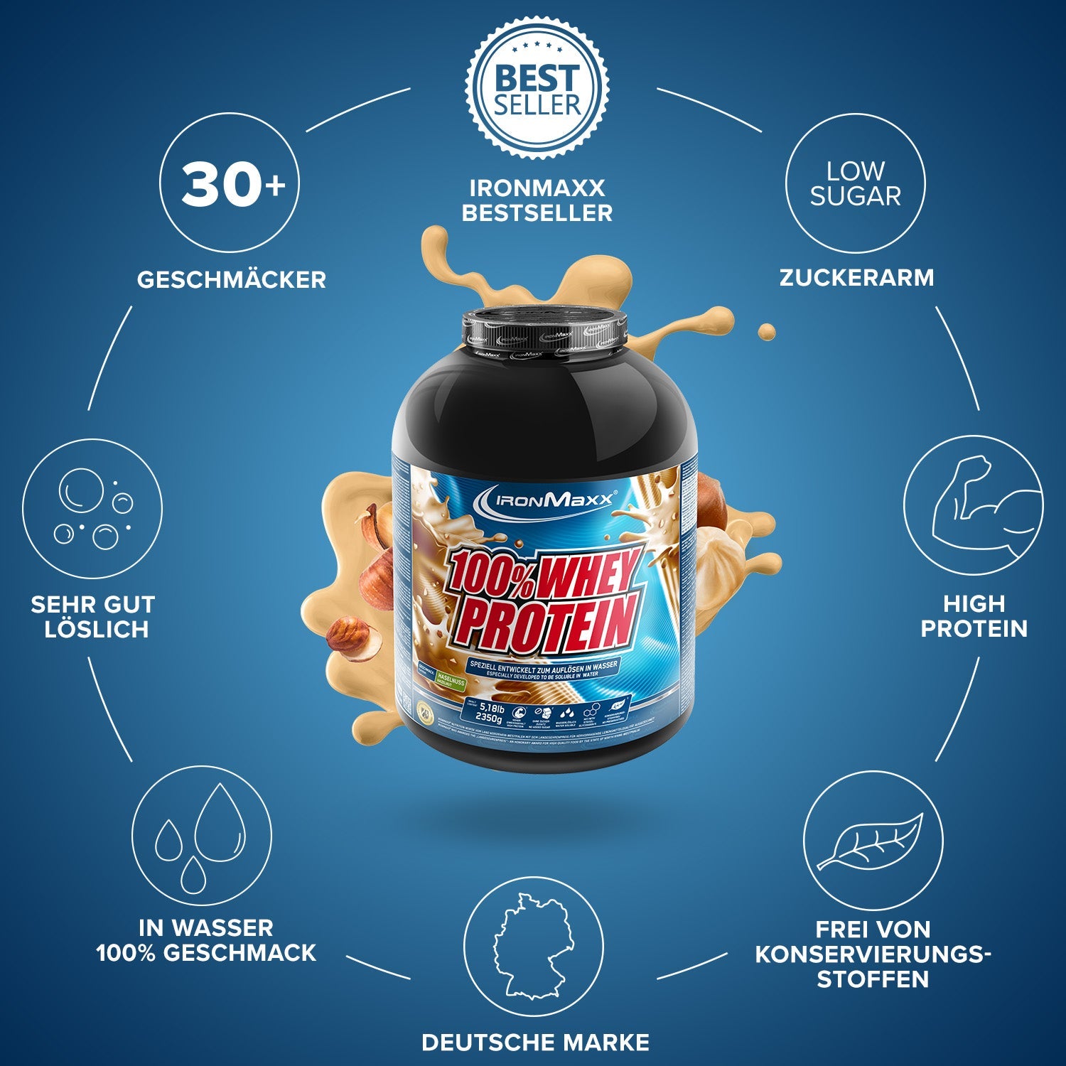 IronMaxx® 100% Whey Protein is one of the most popular protein shakes for muscle growth, recovery and cutting phases. With up to 80% protein, a complete amino acid profile (including BCAAs & EAAs) and a creamy, delicious taste, it is the perfect partner for your fitness routine.