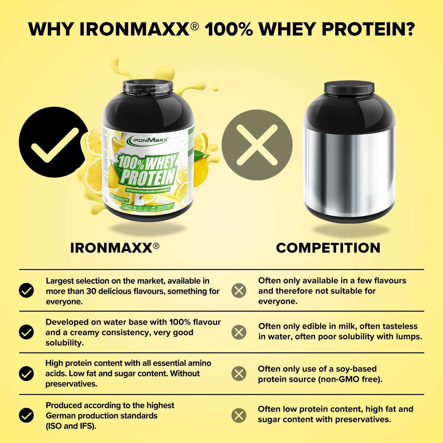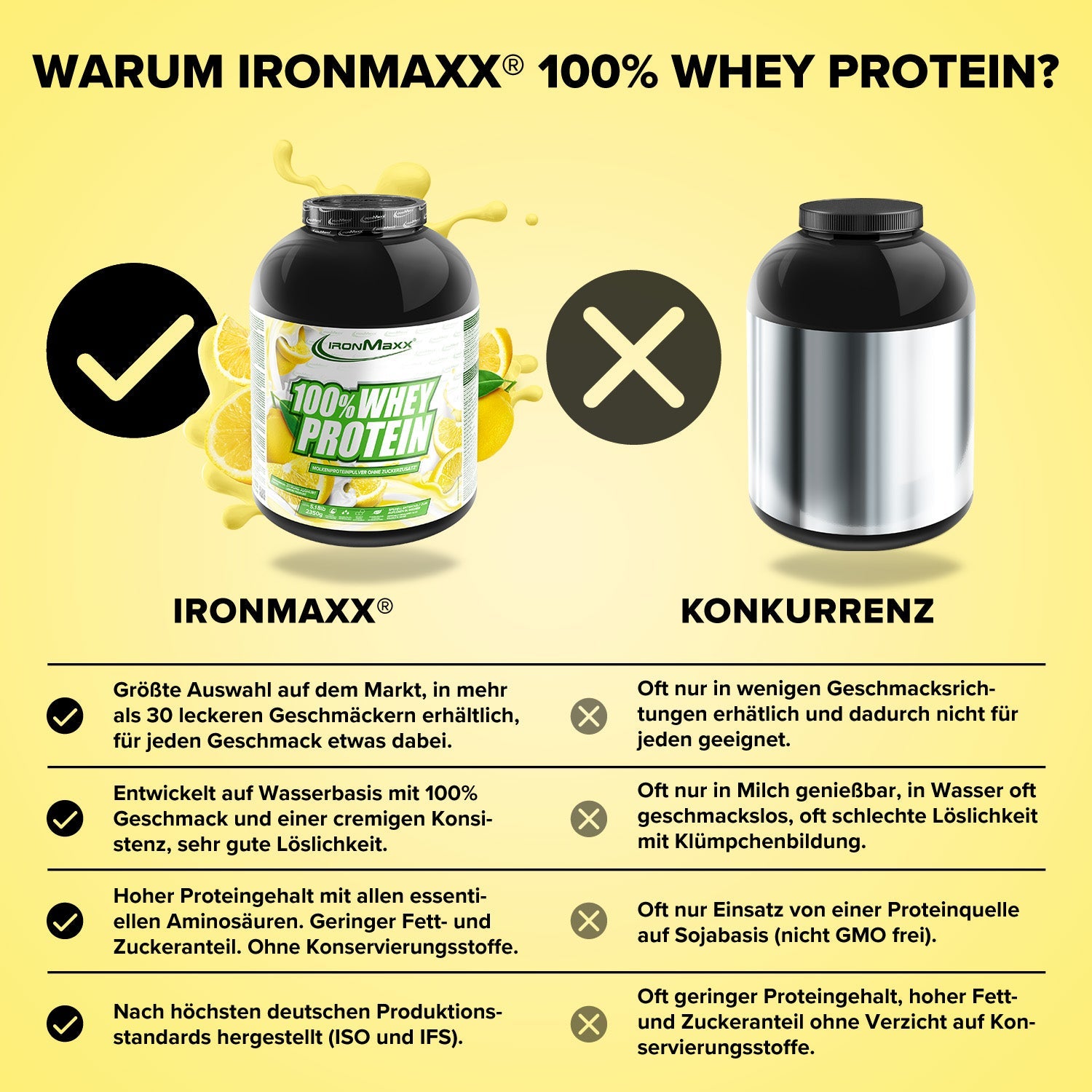 IronMaxx® 100% Whey Protein is one of the most popular protein shakes for muscle growth, recovery and cutting phases. With up to 80% protein, a complete amino acid profile (including BCAAs & EAAs) and a creamy, delicious taste, it is the perfect partner for your fitness routine.