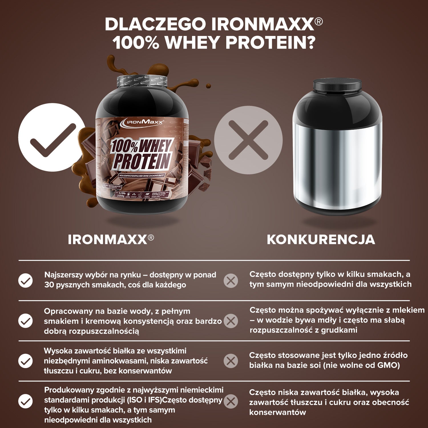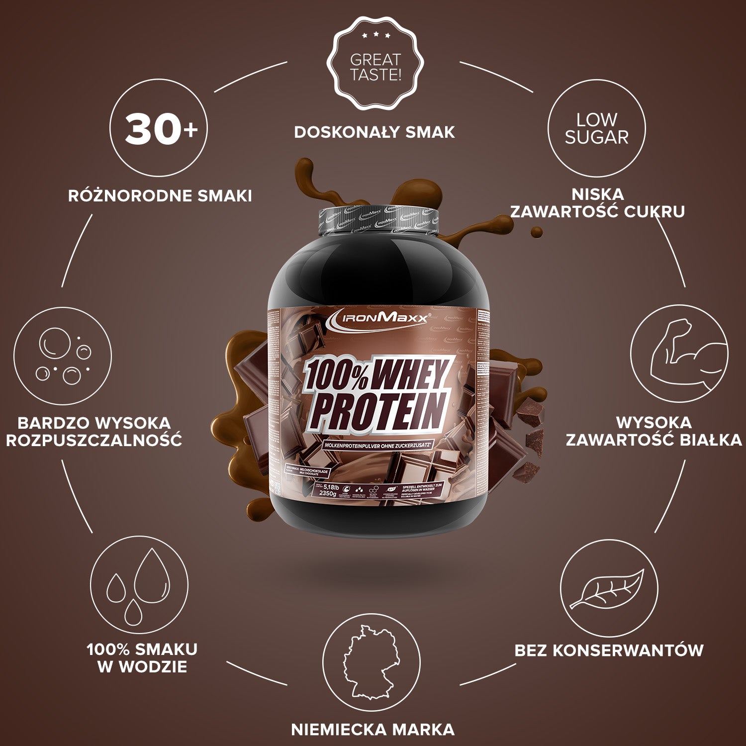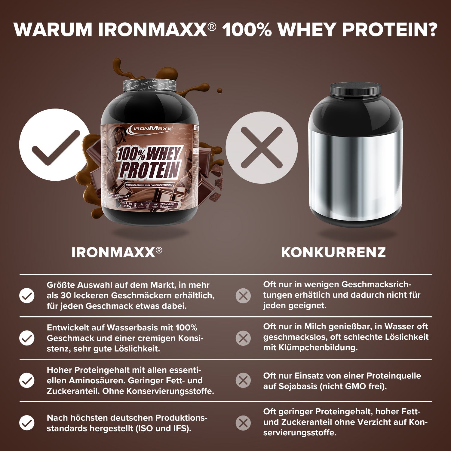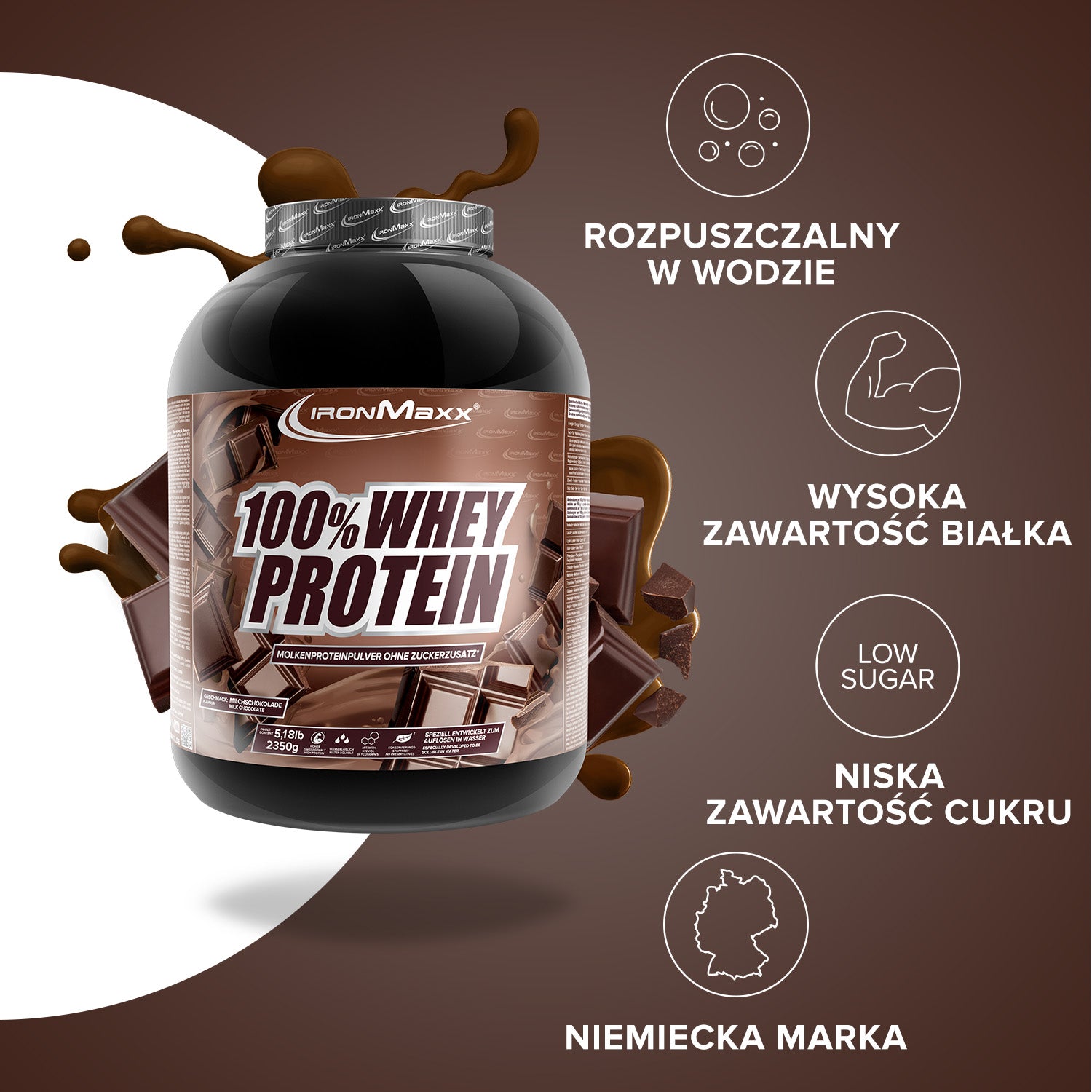 IronMaxx® 100% Whey Protein is one of the most popular protein shakes for muscle growth, recovery and cutting phases. With up to 80% protein, a complete amino acid profile (including BCAAs & EAAs) and a creamy, delicious taste, it is the perfect partner for your fitness routine.