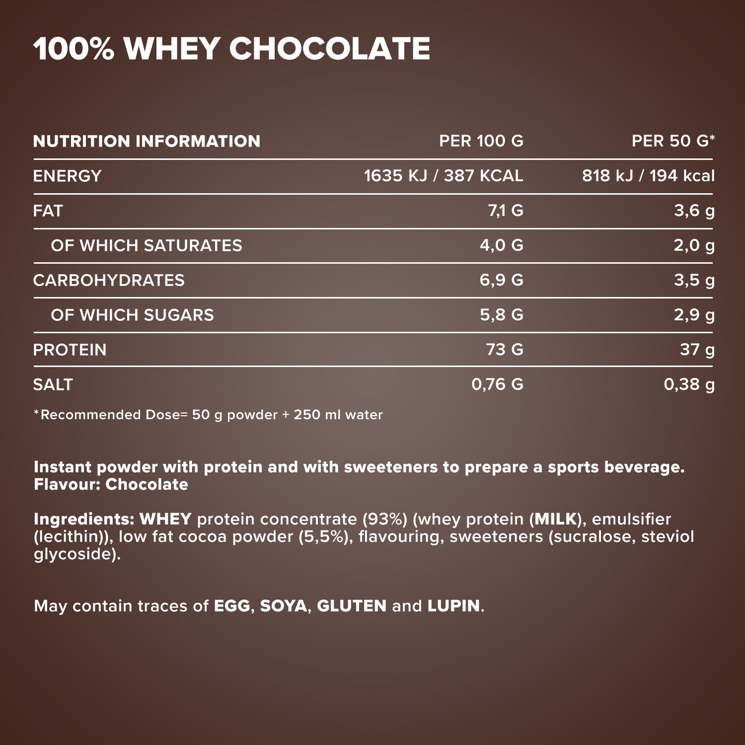 Store protected from heat, moisture, and sunlight. Proteins contribute to an increase in muscle mass. A balanced and varied diet and a healthy lifestyle are important. Naturally contains sugar.