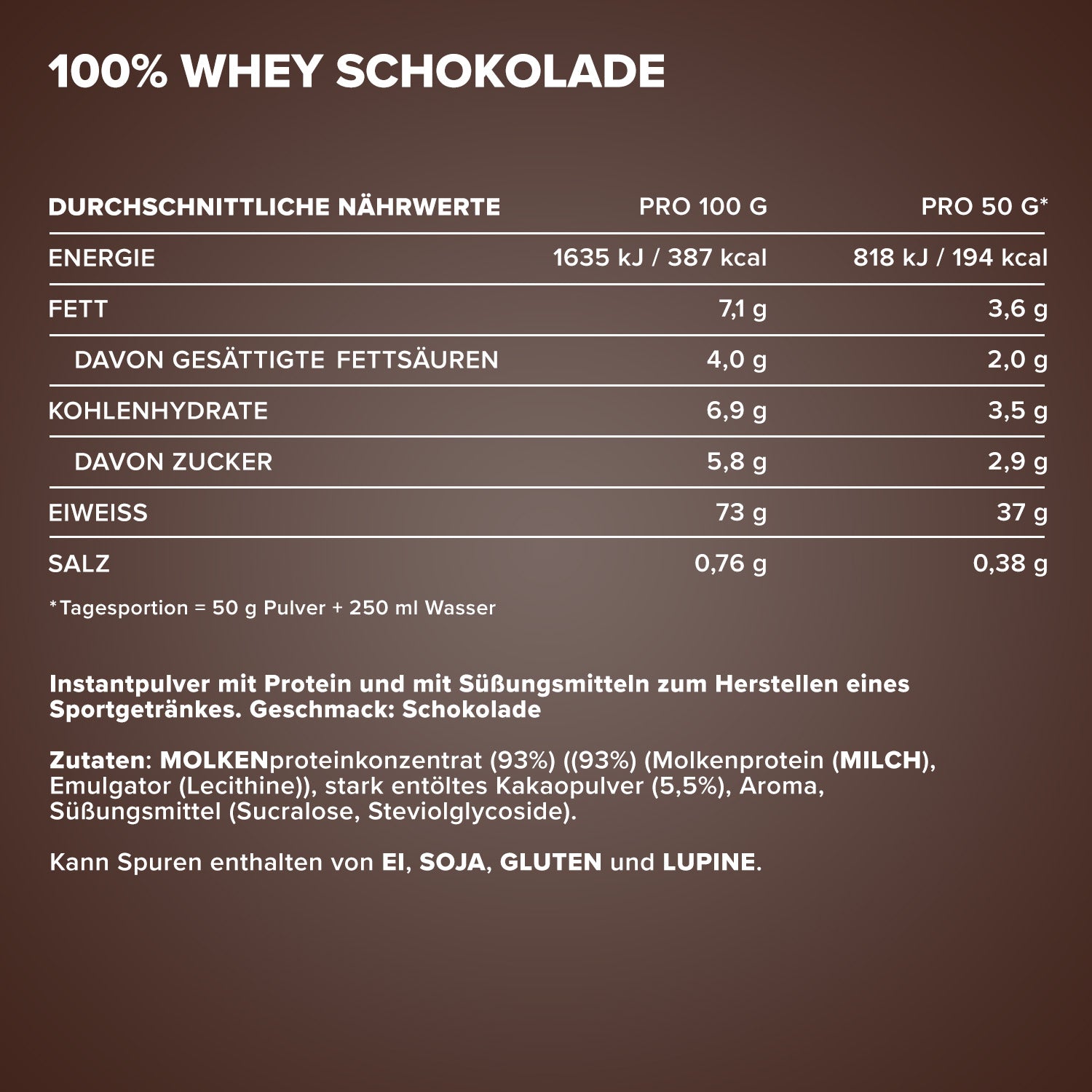 This whey protein powder delivers fast nutrient absorption, excellent solubility and a sugar-free formula. Available in a variety of tasty flavours – creamy, lump-free, easy to prepare – it’s your ideal protein shake for training, building muscle and conscious nutrition.
