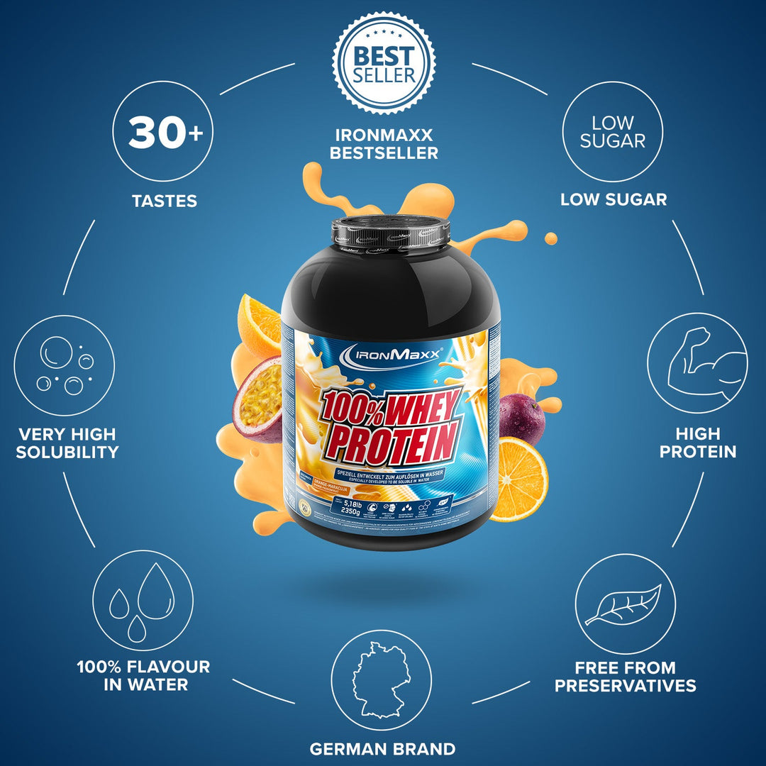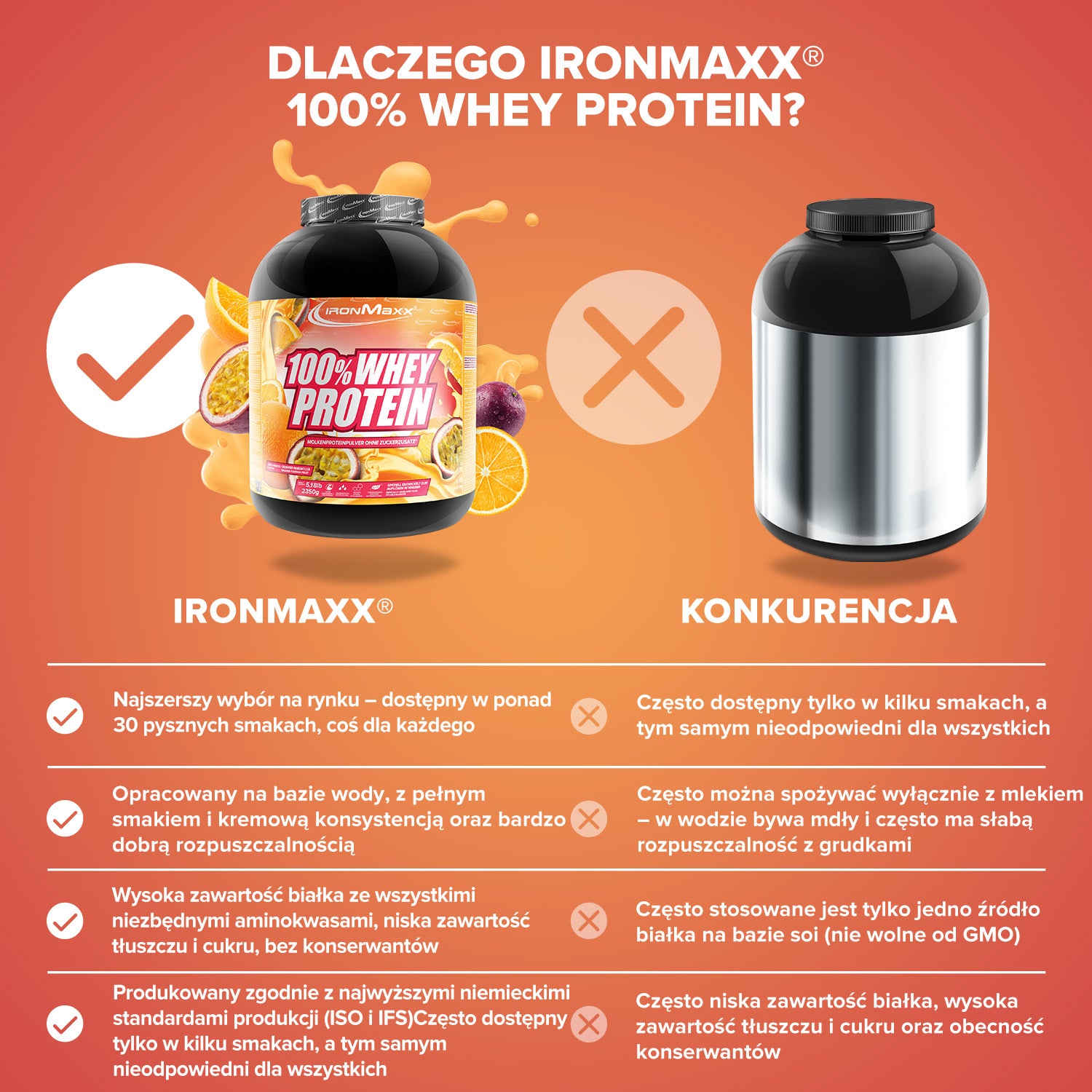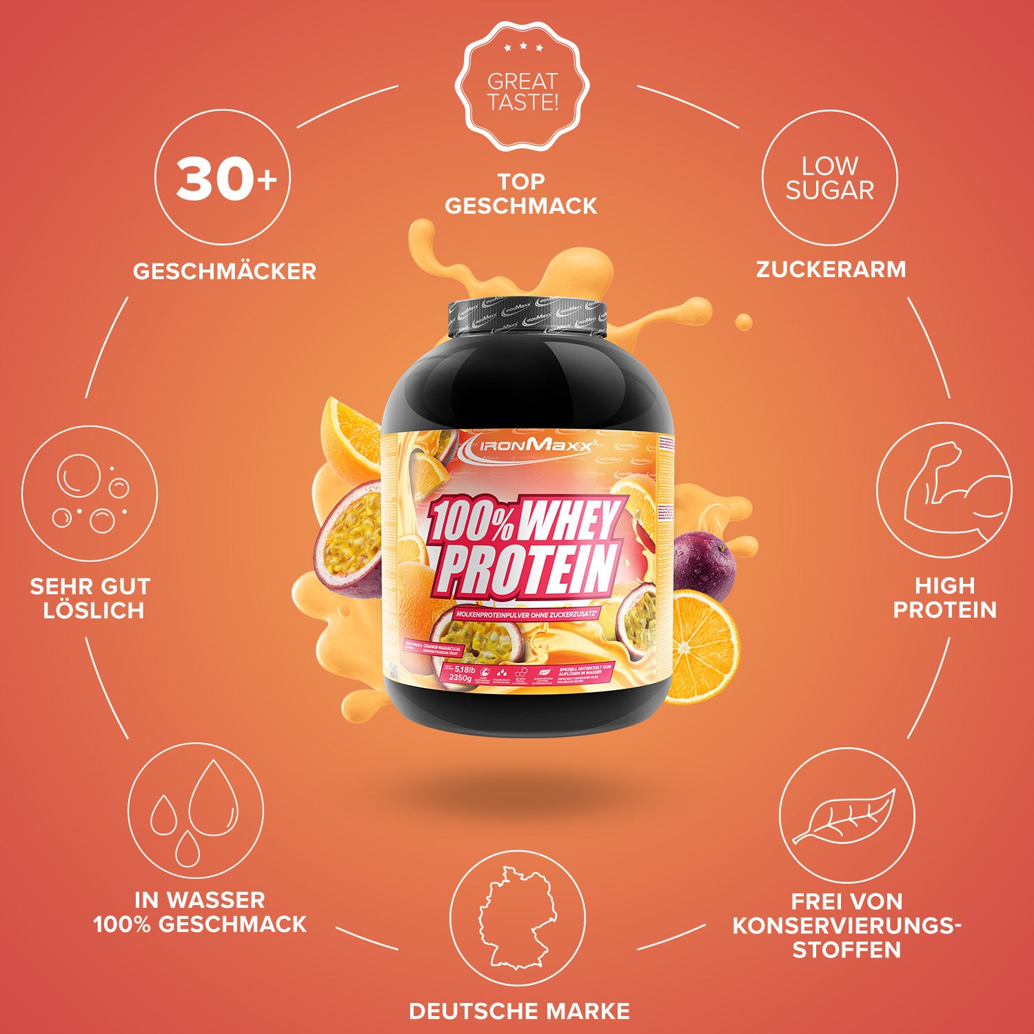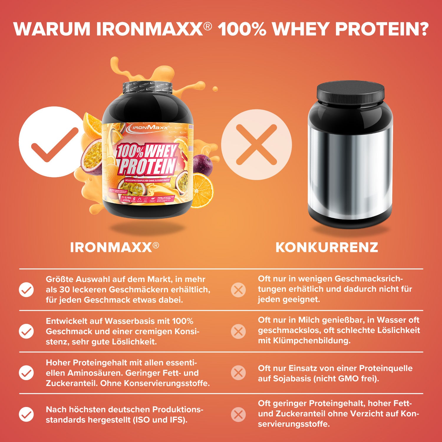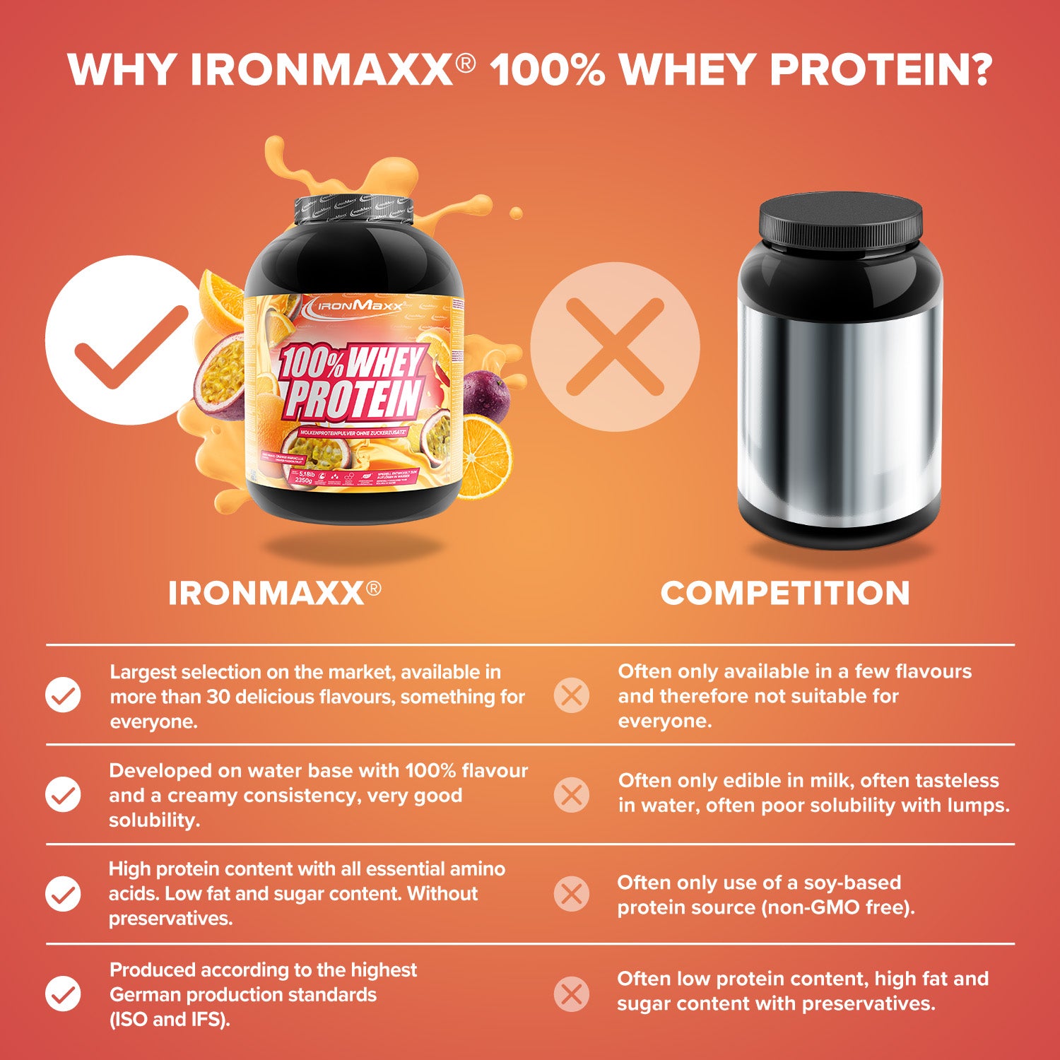 IronMaxx® 100% Whey Protein is one of the most popular protein shakes for muscle growth, recovery and cutting phases. With up to 80% protein, a complete amino acid profile (including BCAAs & EAAs) and a creamy, delicious taste, it is the perfect partner for your fitness routine.
