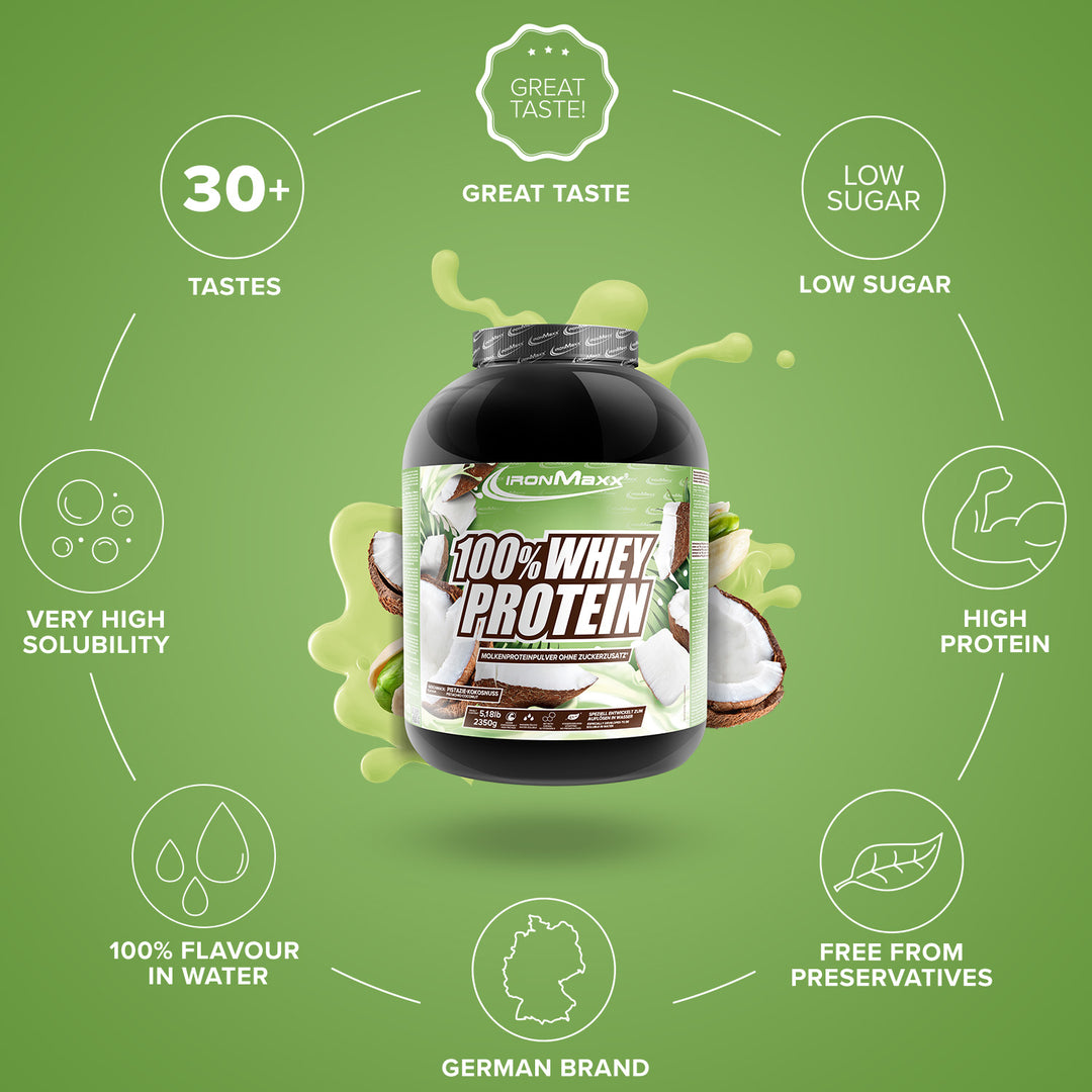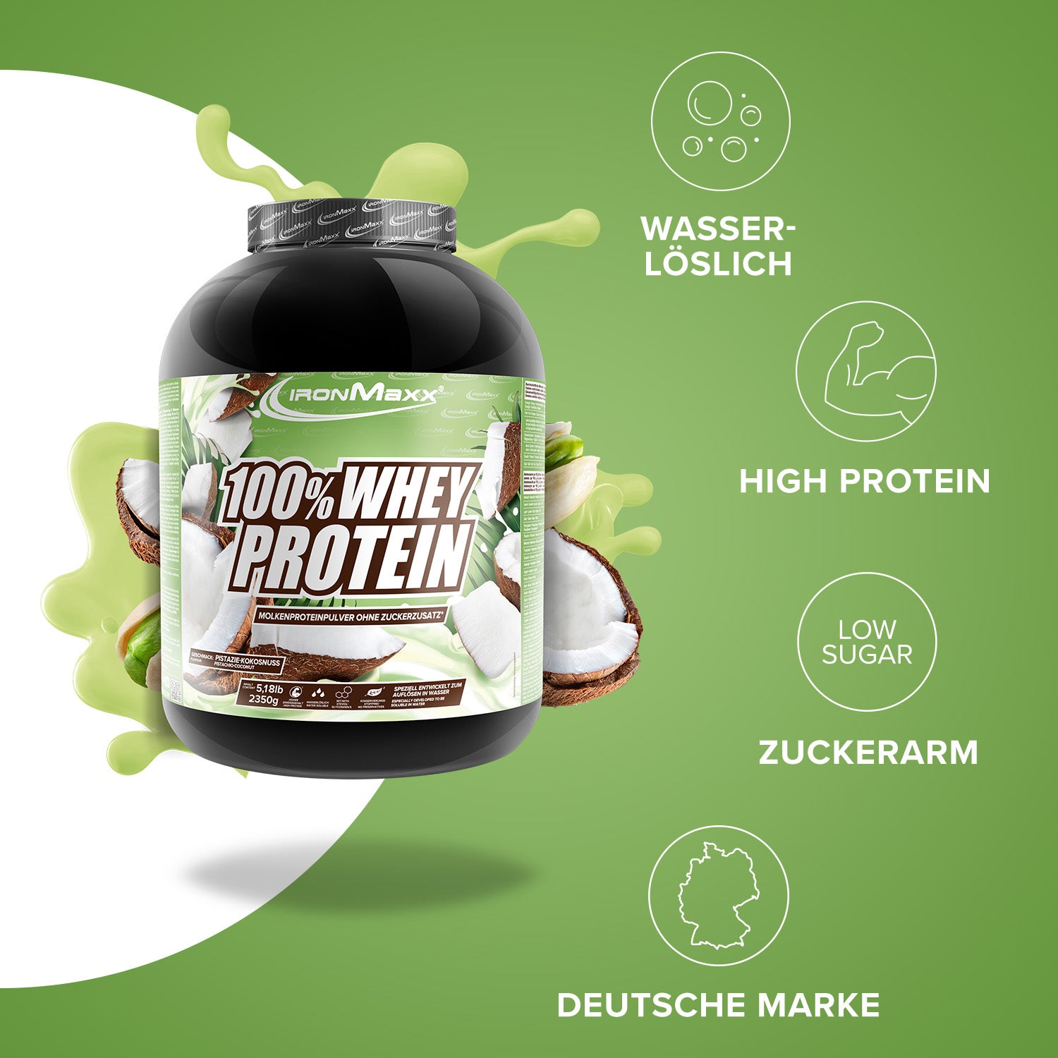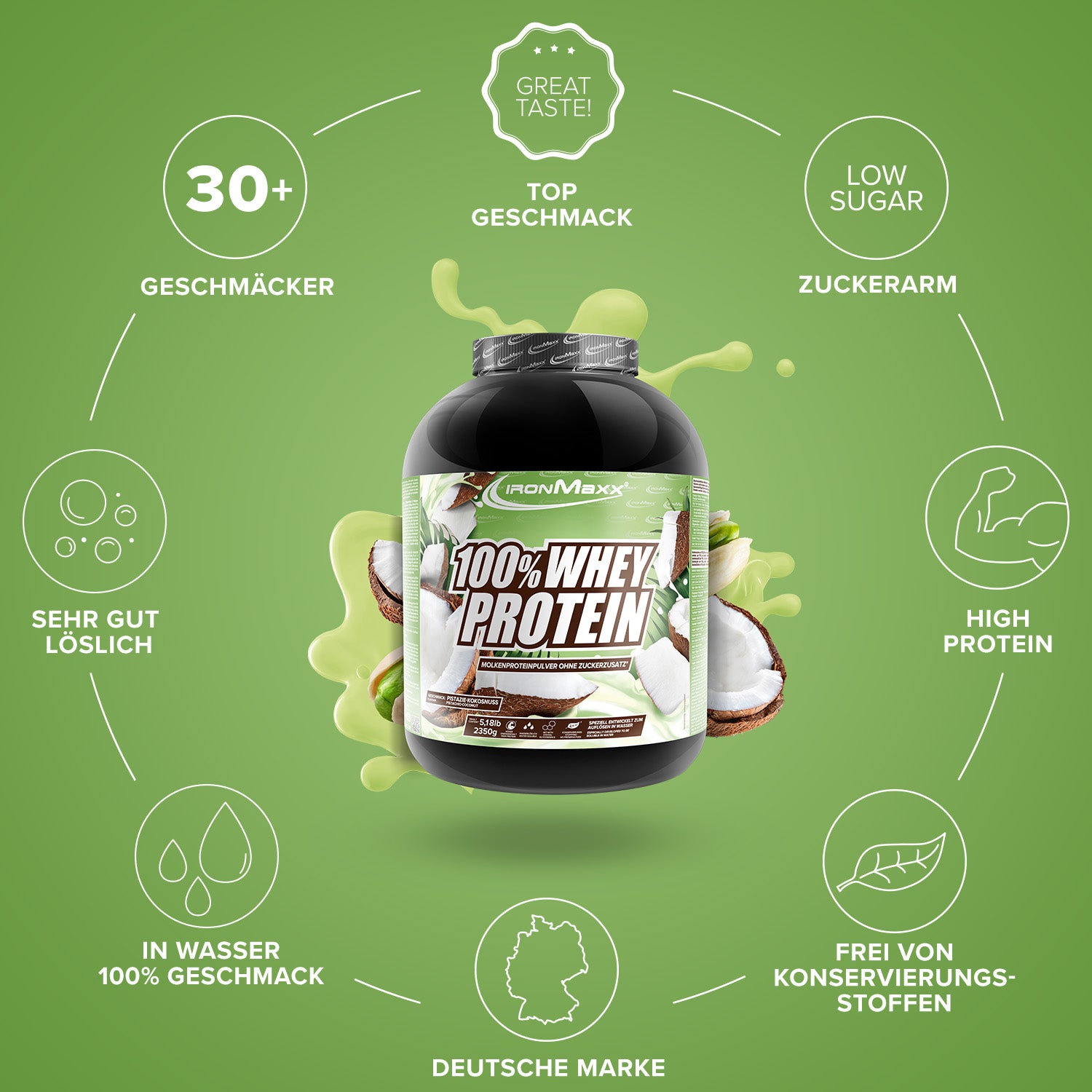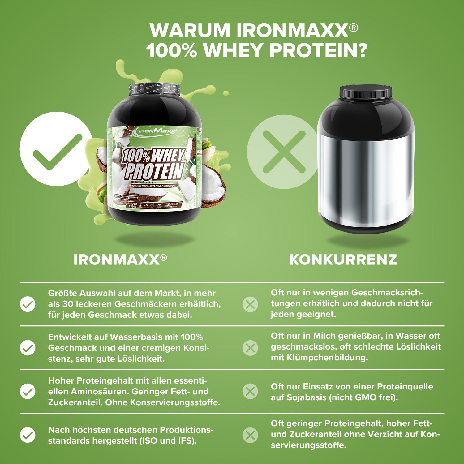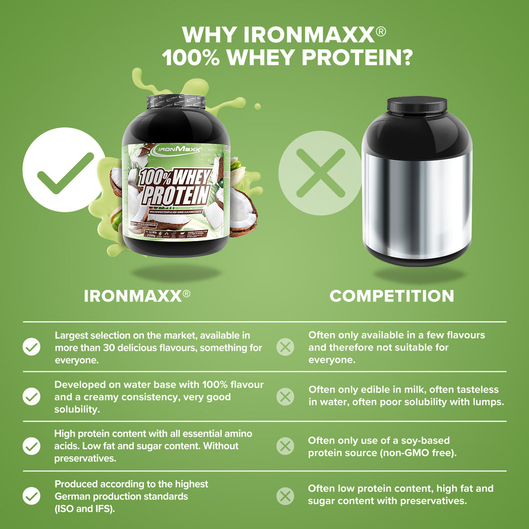 IronMaxx® 100% Whey Protein is one of the most popular protein shakes for muscle growth, recovery and cutting phases. With up to 80% protein, a complete amino acid profile (including BCAAs & EAAs) and a creamy, delicious taste, it is the perfect partner for your fitness routine.