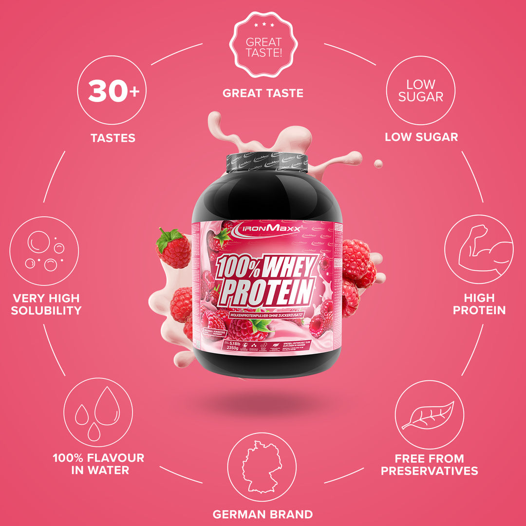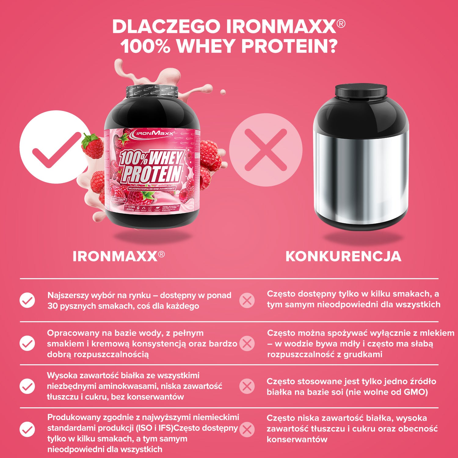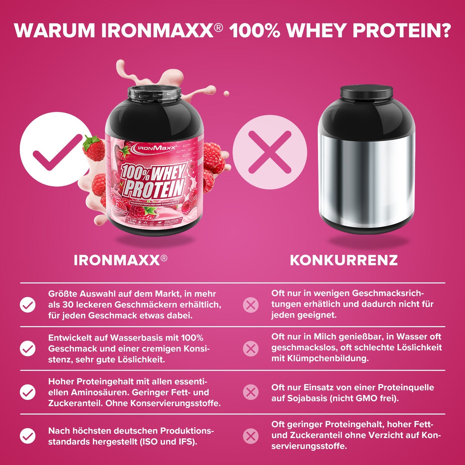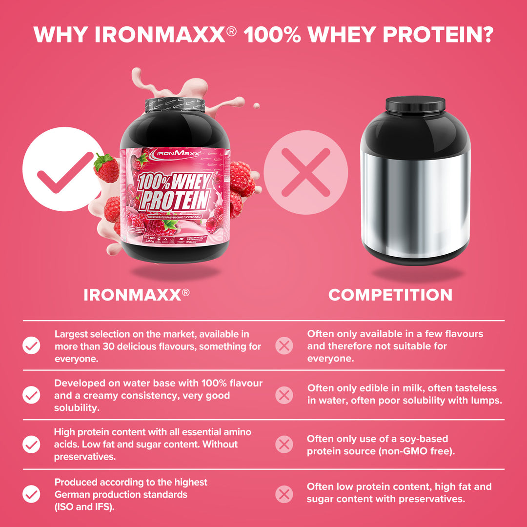 IronMaxx® 100% Whey Protein is one of the most popular protein shakes for muscle growth, recovery and cutting phases. With up to 80% protein, a complete amino acid profile (including BCAAs & EAAs) and a creamy, delicious taste, it is the perfect partner for your fitness routine.