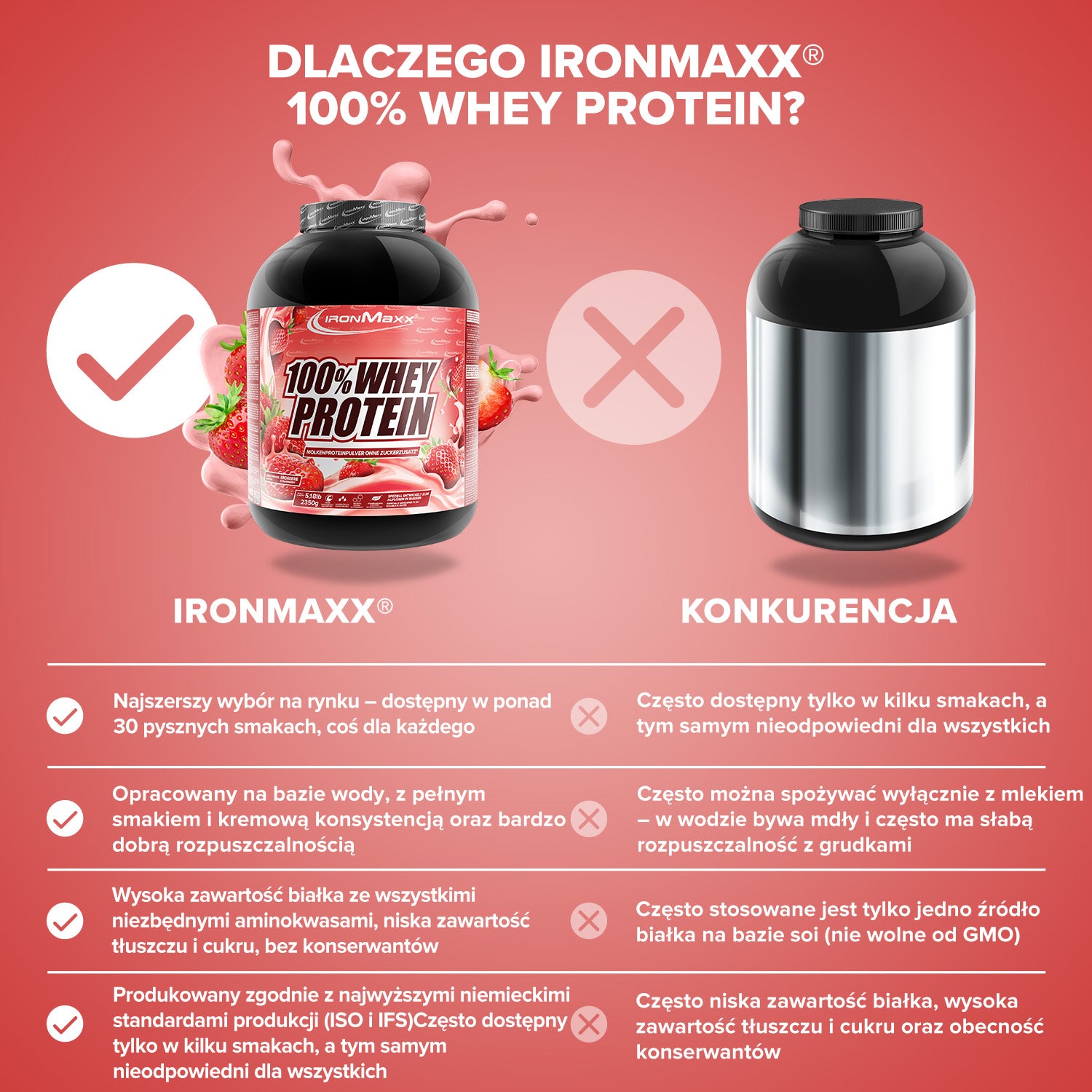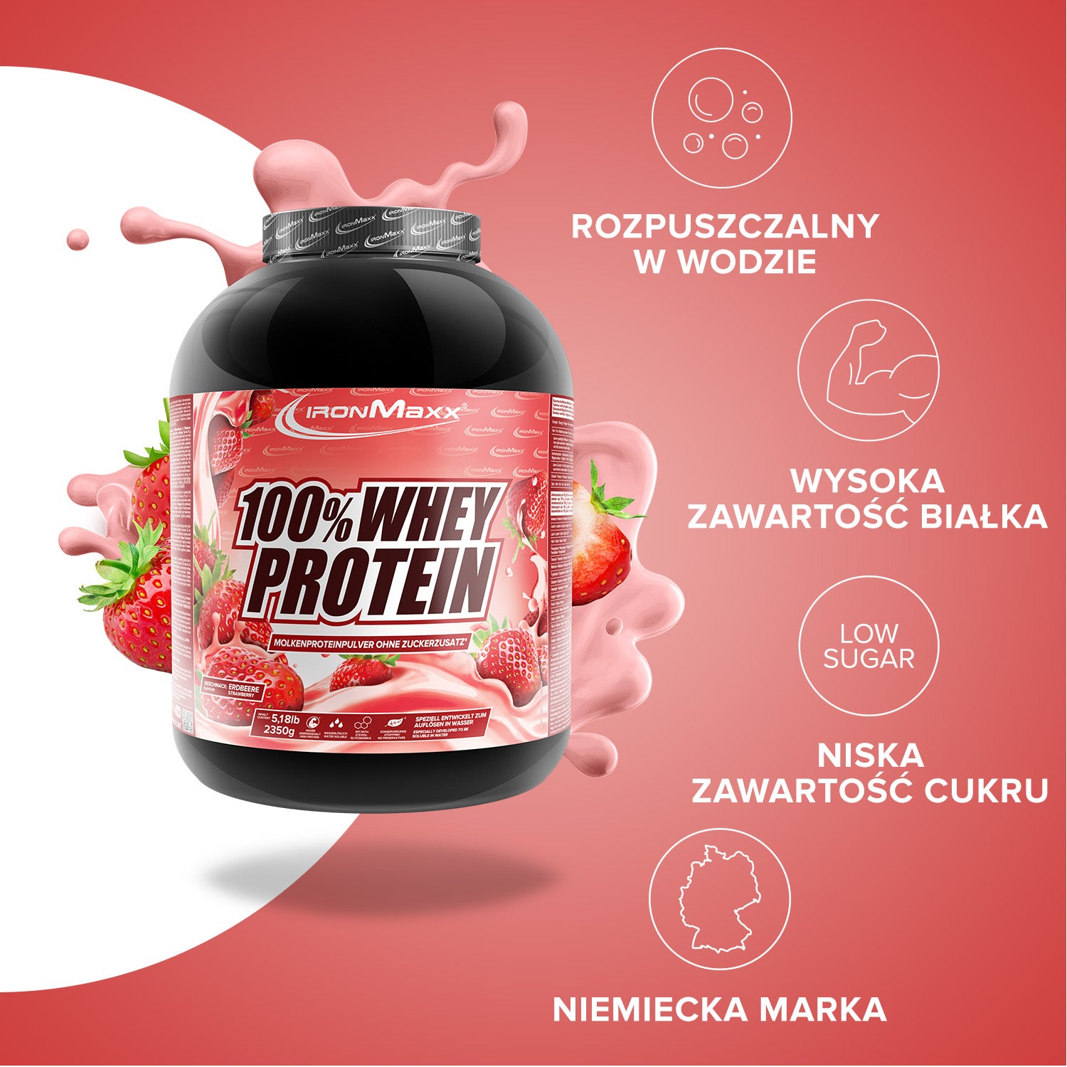 IronMaxx® 100% Whey Protein is one of the most popular protein shakes for muscle growth, recovery and cutting phases. With up to 80% protein, a complete amino acid profile (including BCAAs & EAAs) and a creamy, delicious taste, it is the perfect partner for your fitness routine.