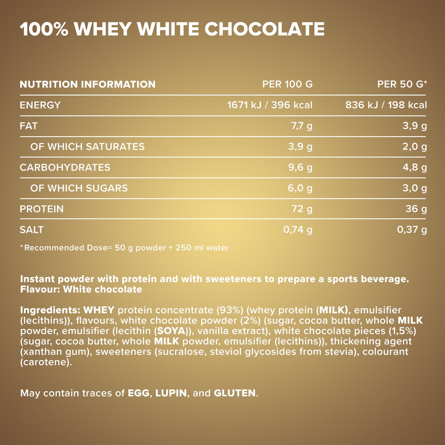 May contain traces of LUPINE, GLUTEN and EGG.