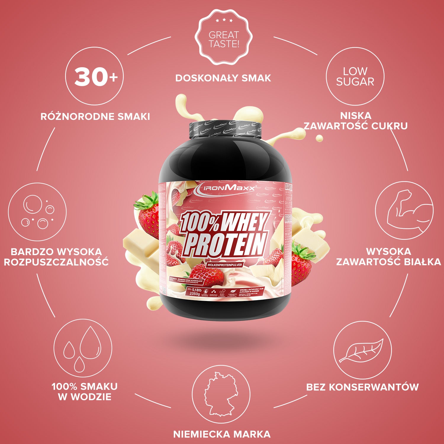 IronMaxx® 100% Whey Protein is one of the most popular protein shakes for muscle growth, recovery and cutting phases. With up to 80% protein, a complete amino acid profile (including BCAAs & EAAs) and a creamy, delicious taste, it is the perfect partner for your fitness routine.