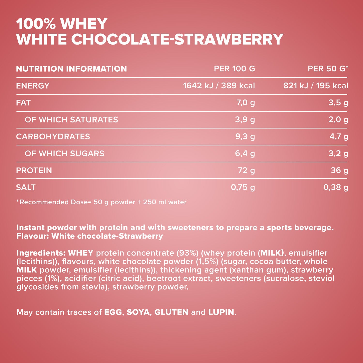 ²One serving contains 30 g of powder and 200 ml of water or milk.³In our Designer Whey, we do not use added sugar, but rely on safe