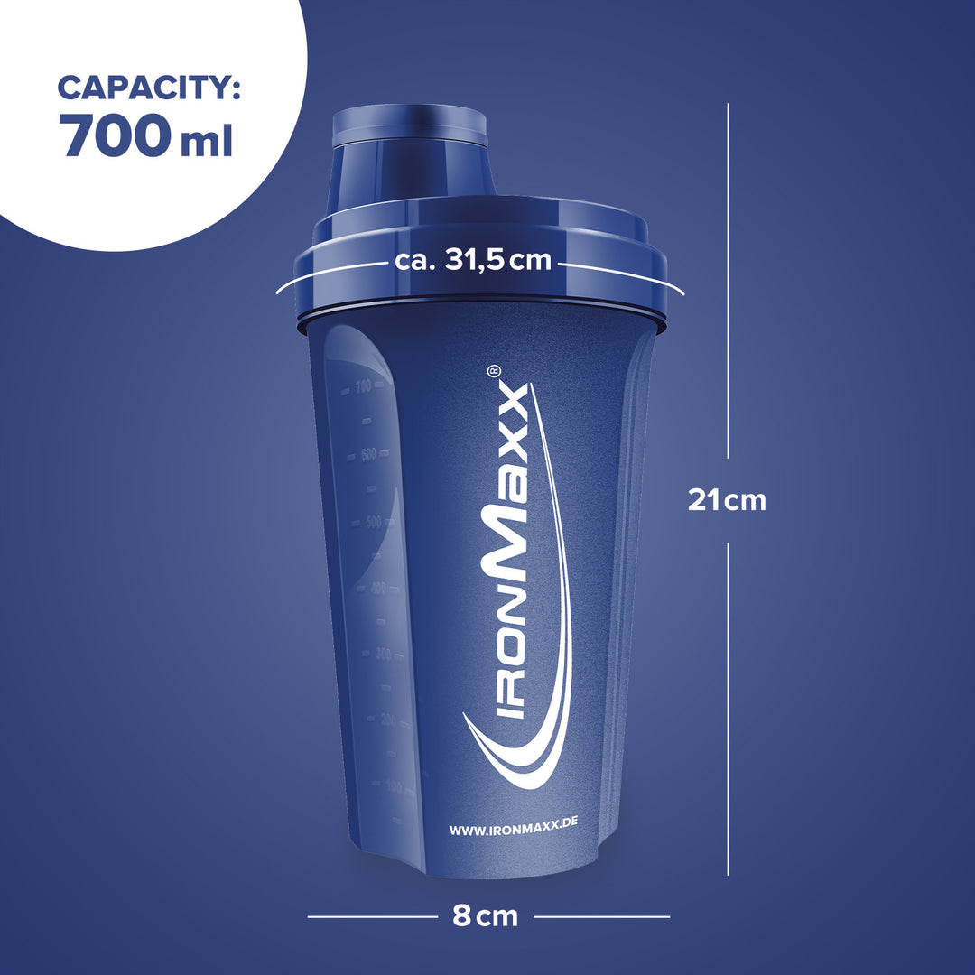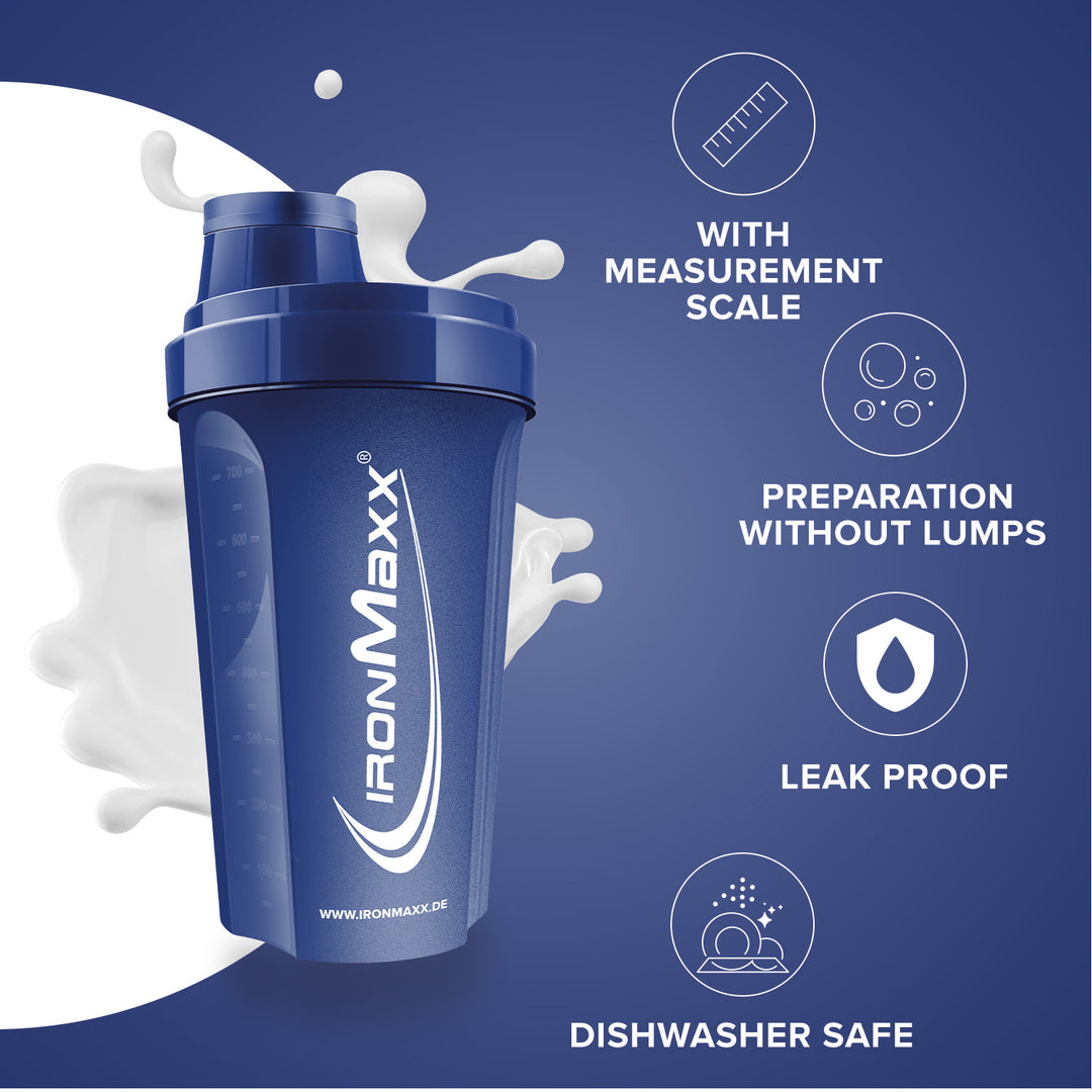 The classic IronMaxx® protein shaker is your reliable companion for creamy, lump-free shakes – anytime and anywhere. With a capacity of 700 ml, integrated sieve and precise measuring scale, every mixing ratio is perfectly achieved.