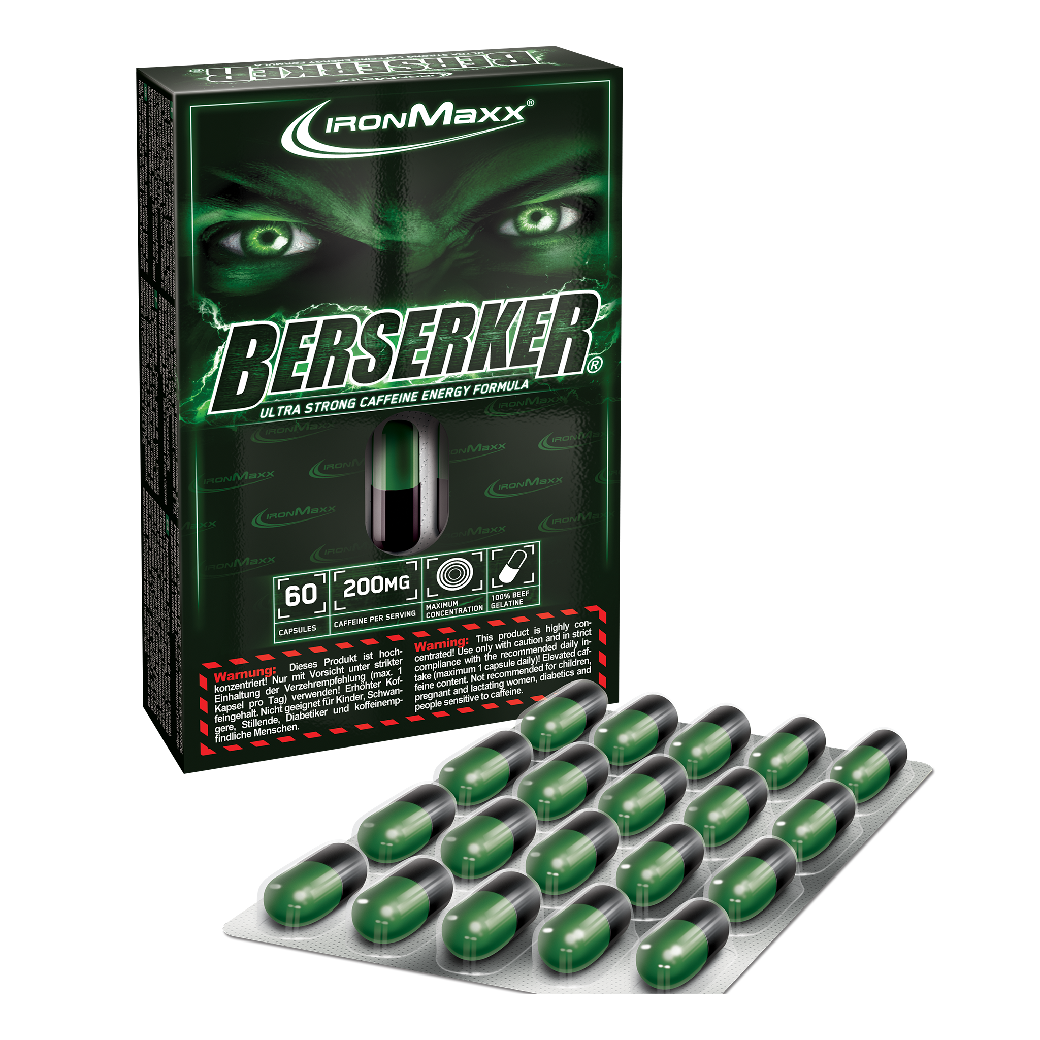 - Berserker® capsules from IronMaxx® with a special formula including caffeine, guarana extract, ginseng extract, and L-tyrosine