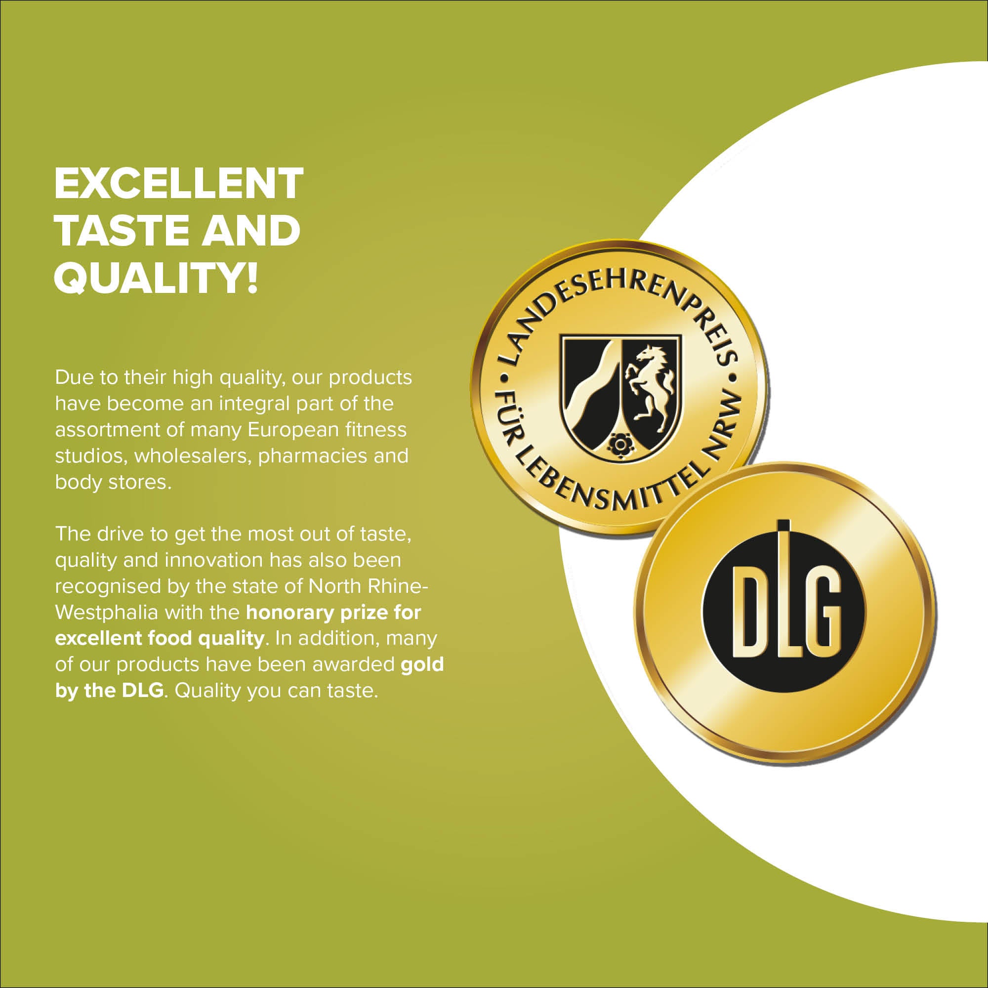 Note: The recommended daily intake should not be exceeded! Store out of reach of small children! Proteins contribute to an increase in muscle mass. A balanced and varied diet and a healthy lifestyle are important.