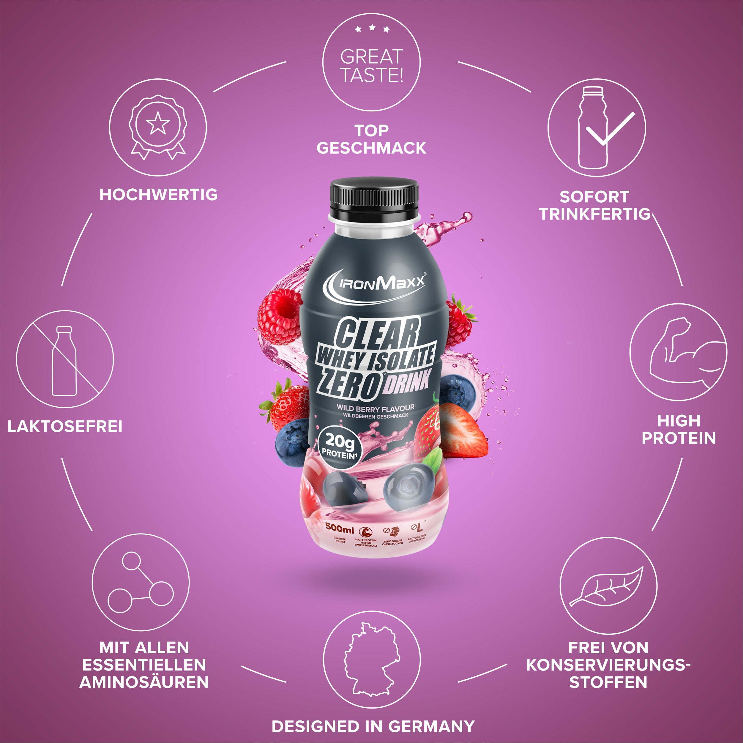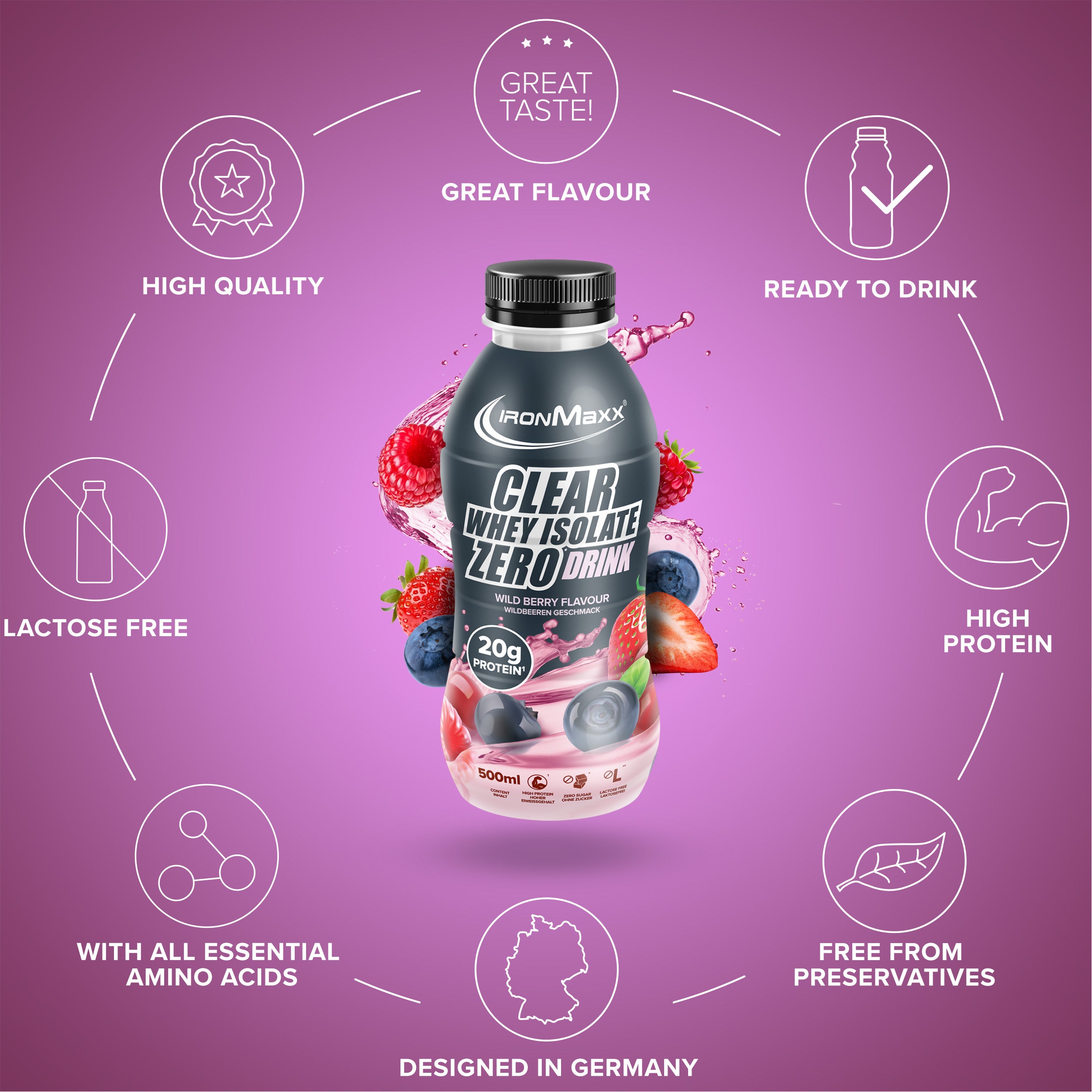 Traffic designation: Beverage based on water with whey protein. With sweeteners. Ultra-high temperature treated. Flavor: Wild berries.