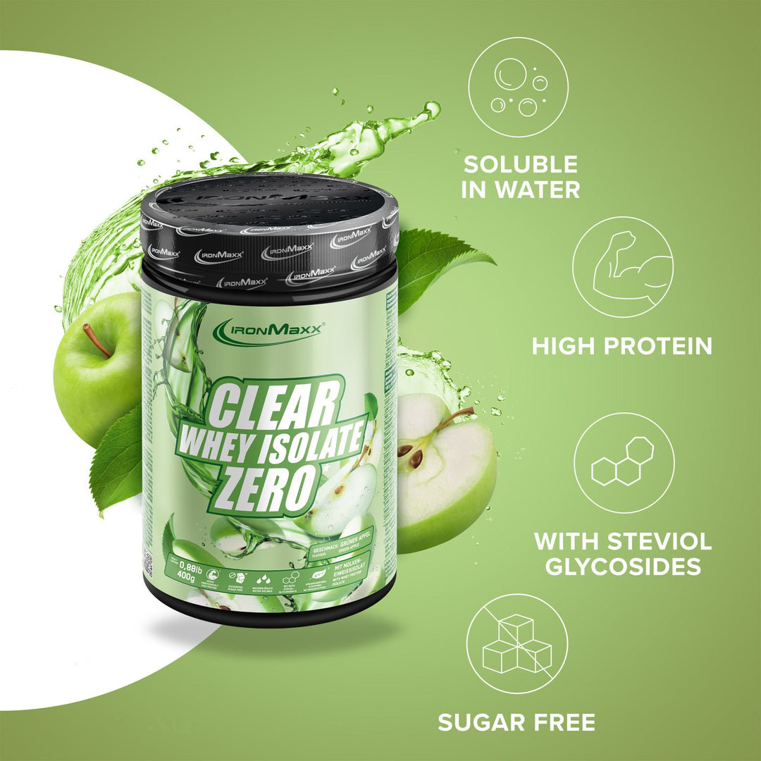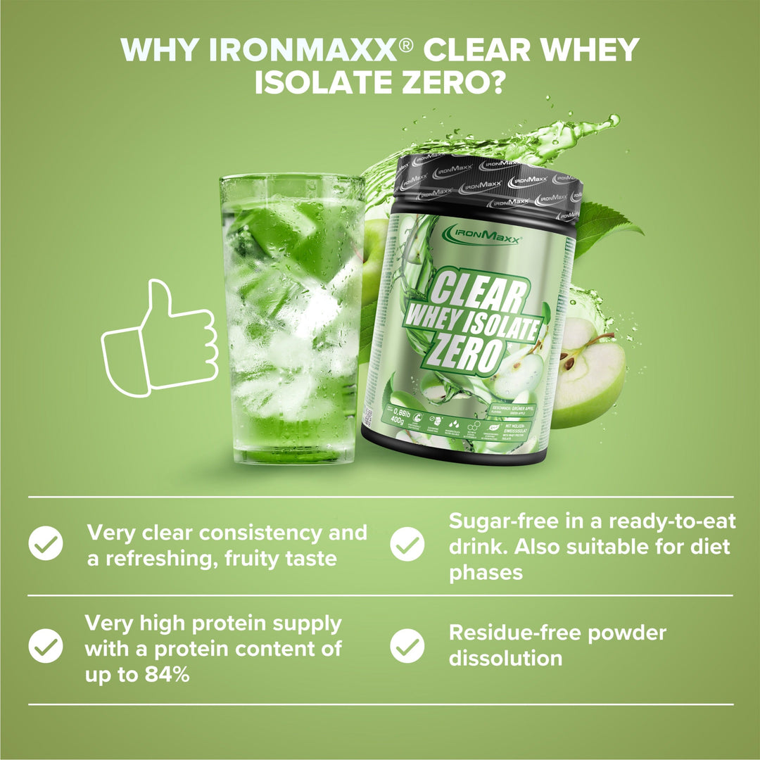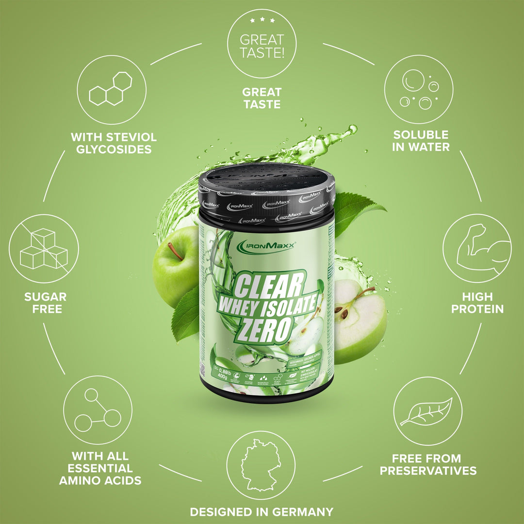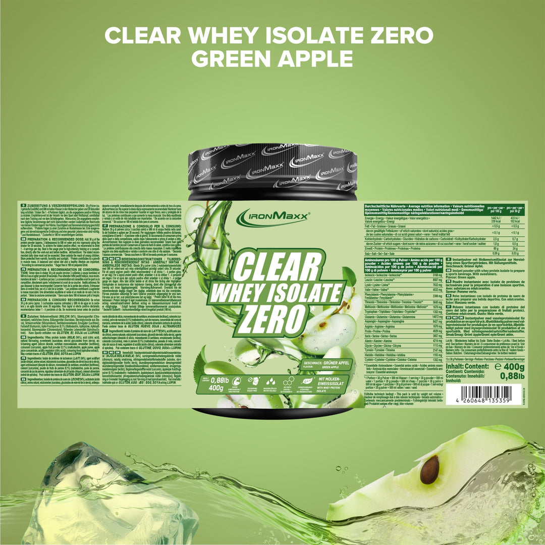 Designation: Instant powder with whey protein isolate for the preparation of a sports drink. With sweeteners. Flavor: Green Apple.