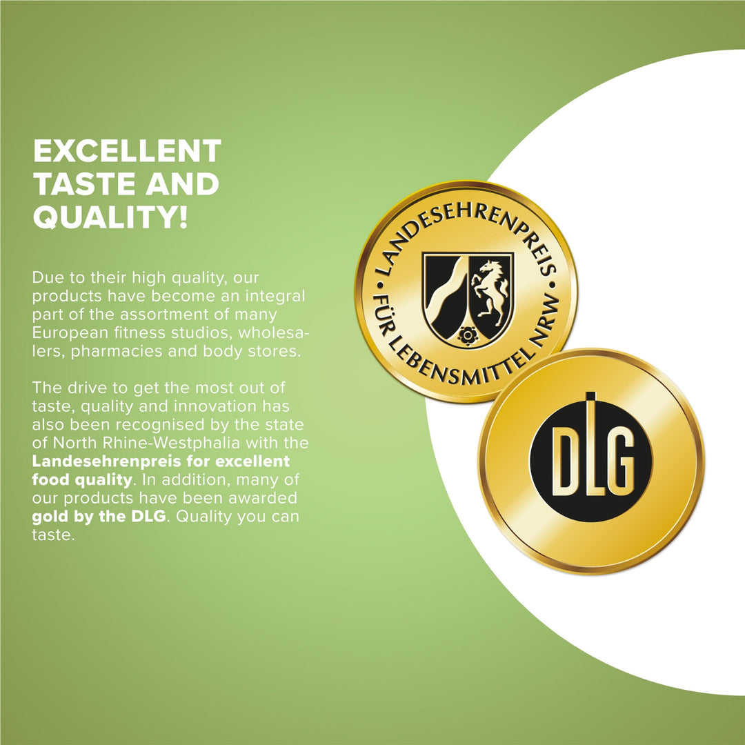 Available in many flavours – vegan, lactose-free & gluten-free. Perfect for dieting, fitness and a low calorie lifestyle. Simply mix 3 g of powder into quark, yoghurt or your favourite meal – and enjoy your guilt-free dessert moment.